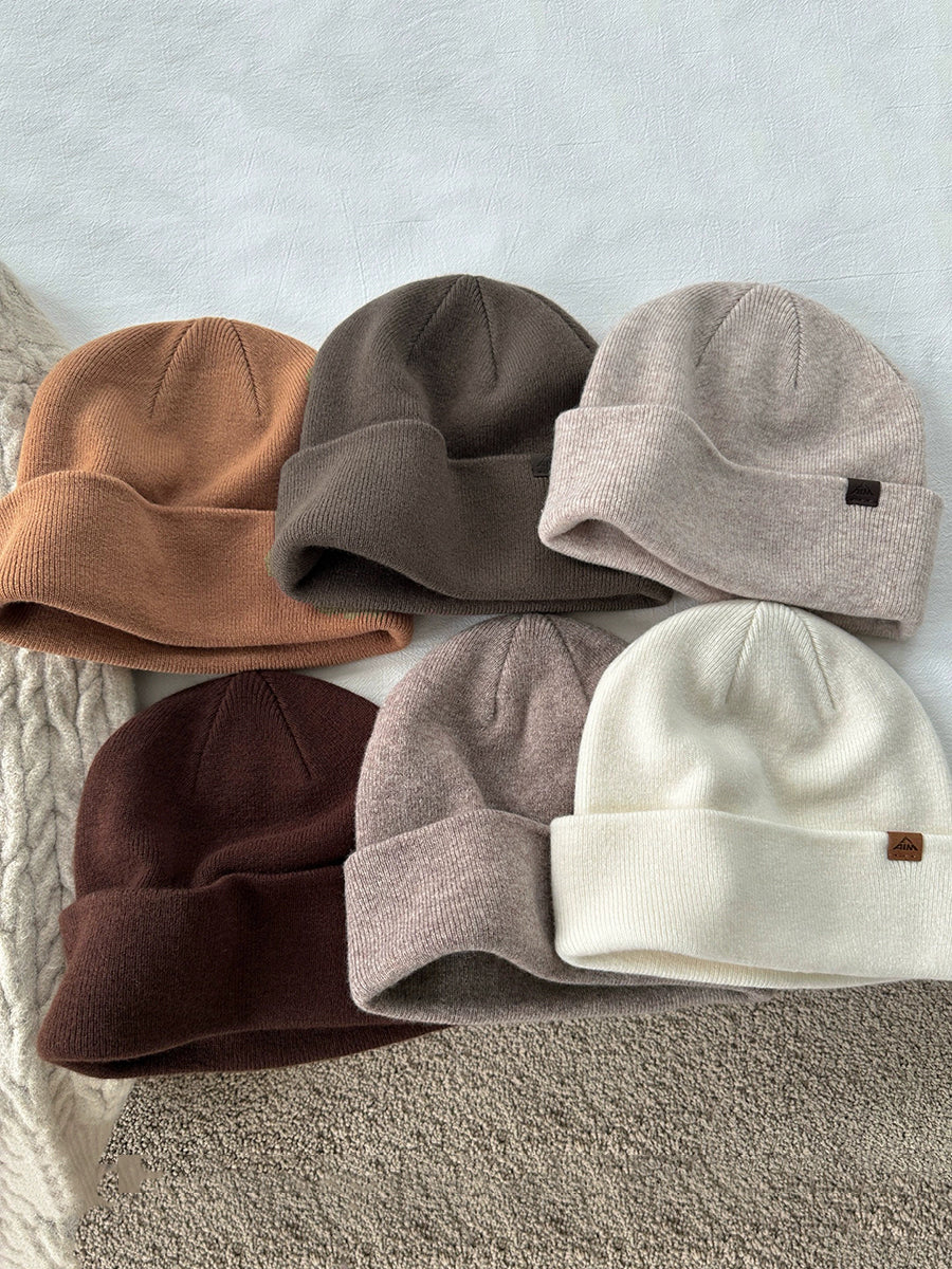 Gorro de punto de lana suave de color puro de invierno para mujer