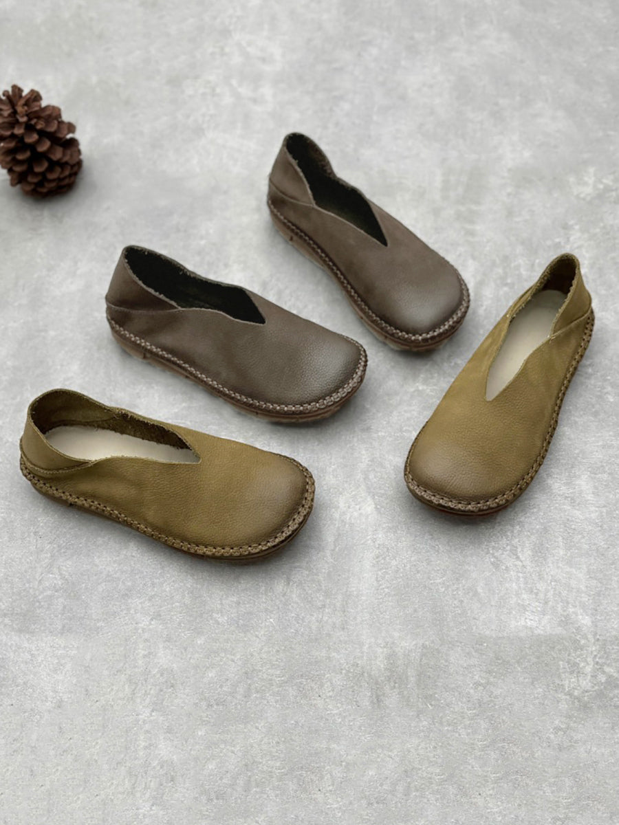 Zapatos planos suaves de cuero sólido vintage de verano para mujer