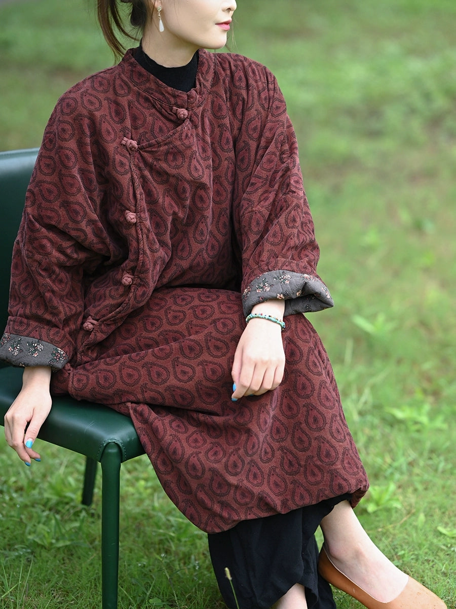 Vestido de otoño con cuello alto y estampado étnico para mujer
