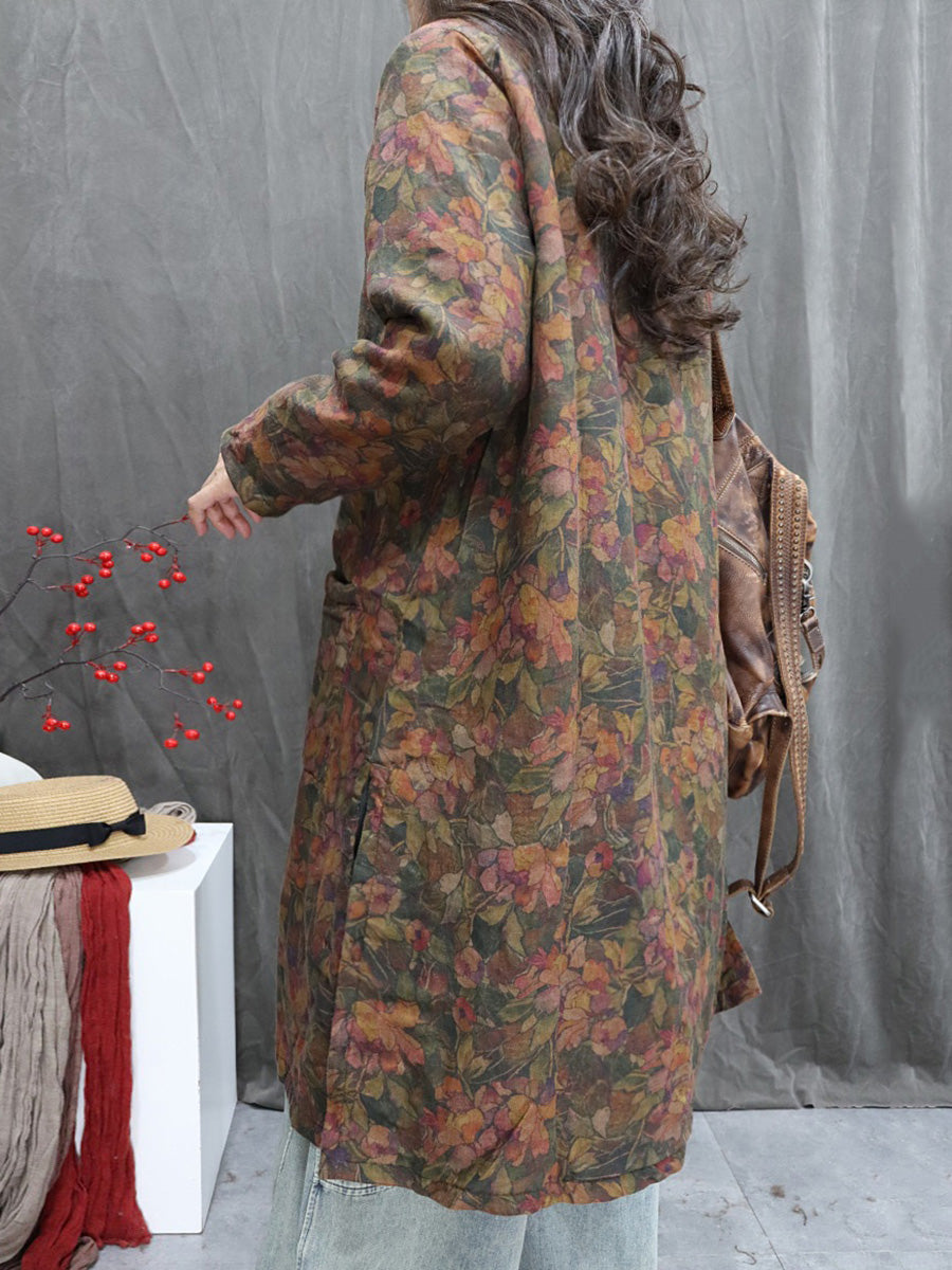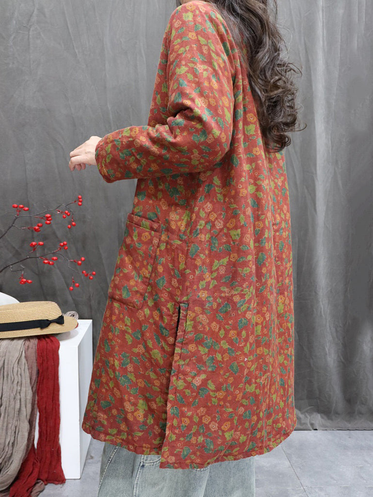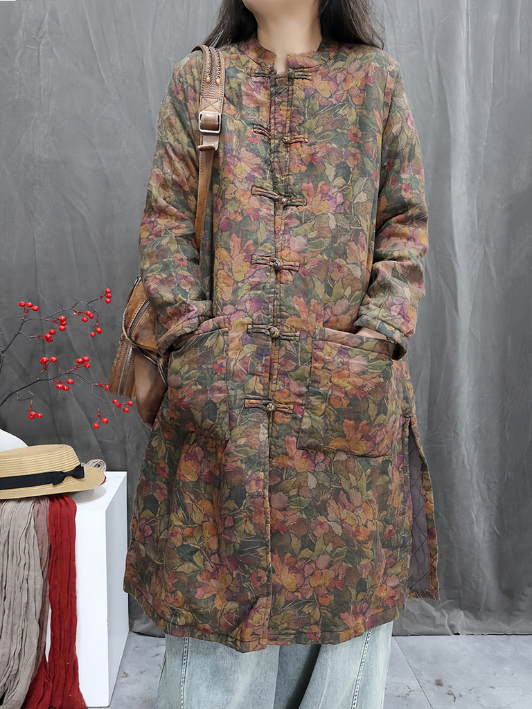 Chaqueta acolchada de algodón con cuello alto y flores de otoño para mujer