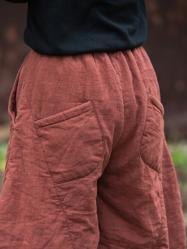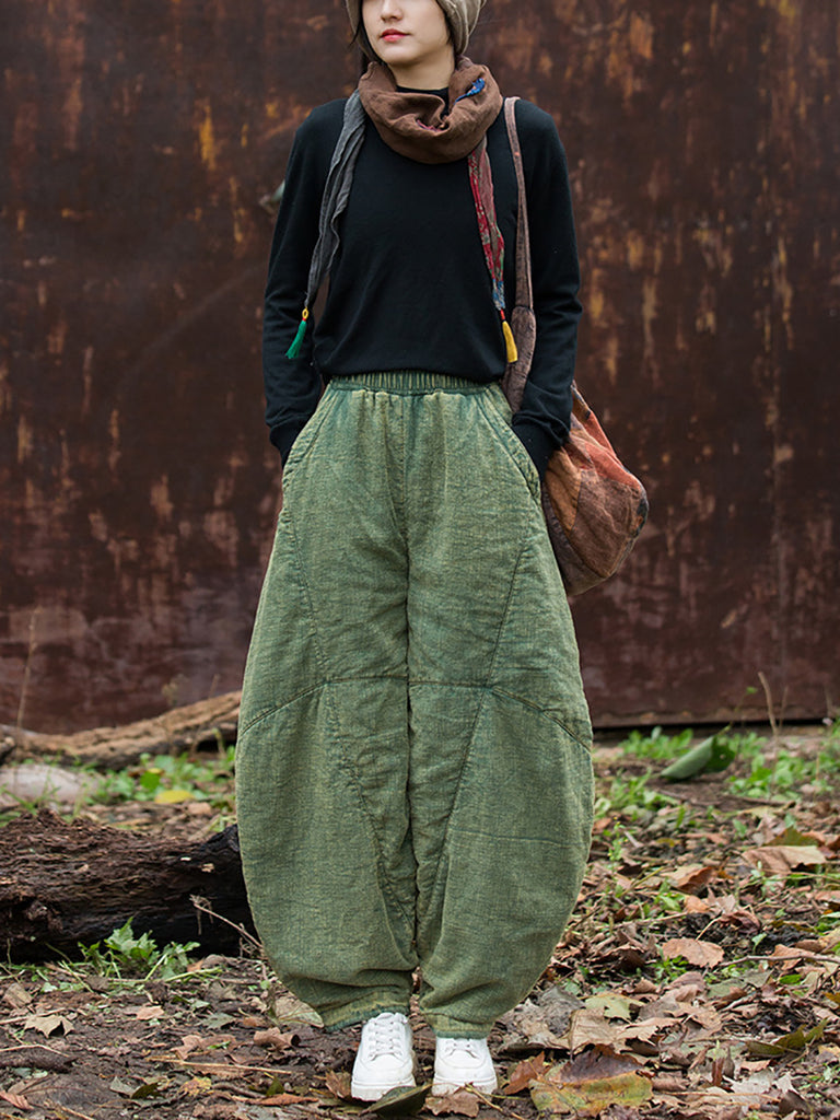 Pantalones holgados de ramio con puños de color liso estilo vintage de otoño para mujer