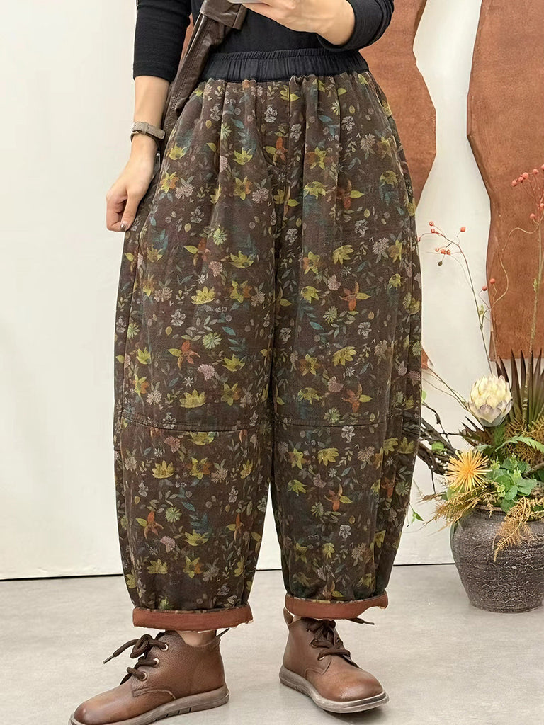 Pantalones harén acolchados con flores étnicas de otoño para mujer