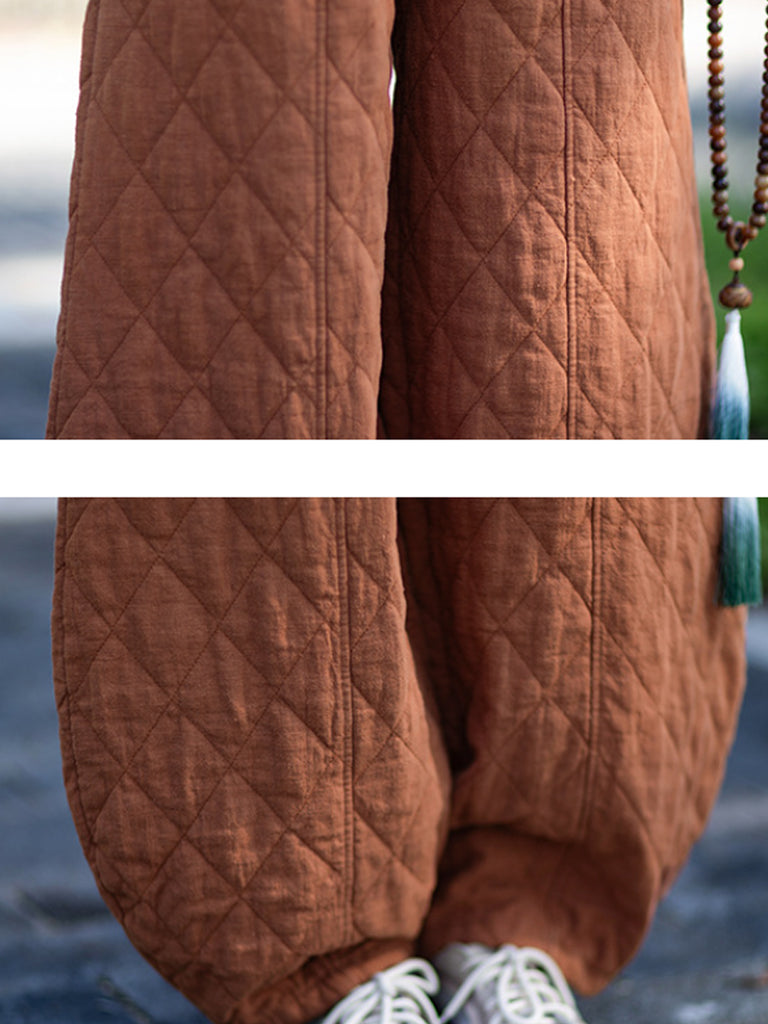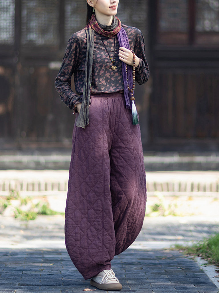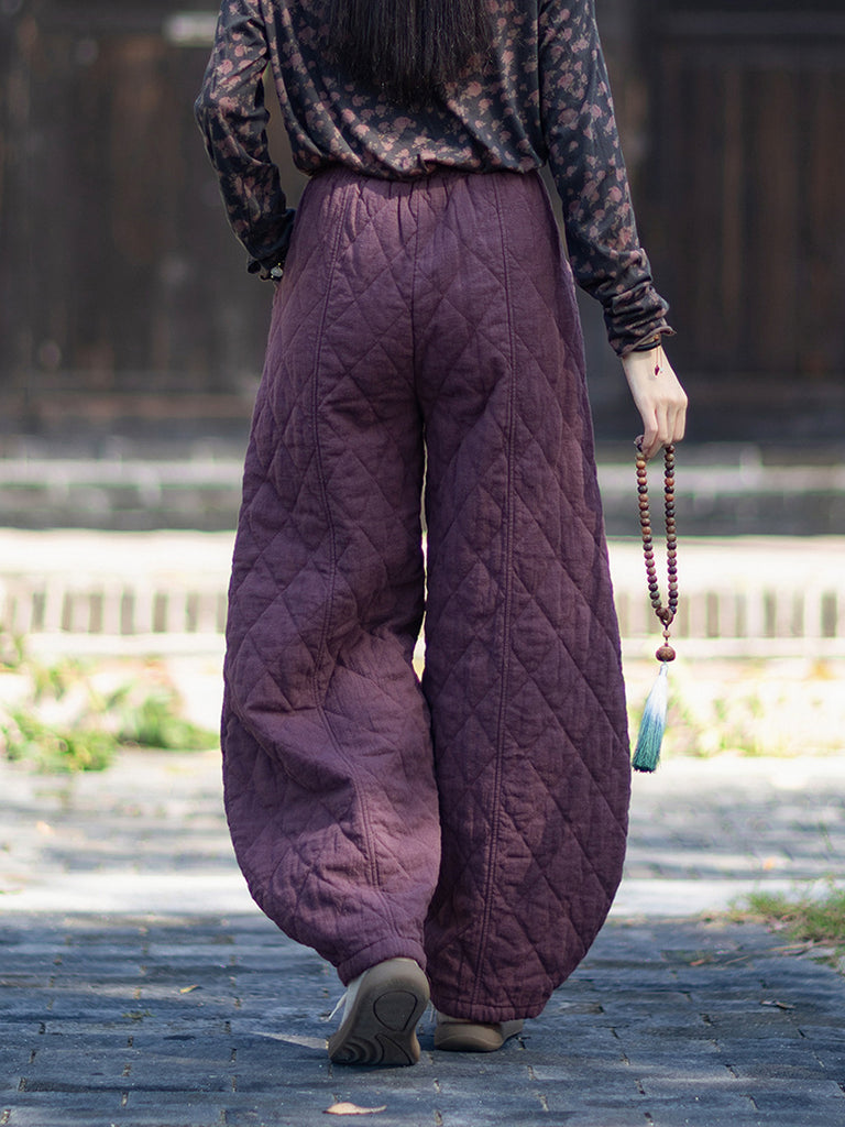 Pantalones bombachos acolchados de color puro informales de invierno para mujer