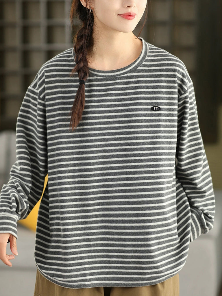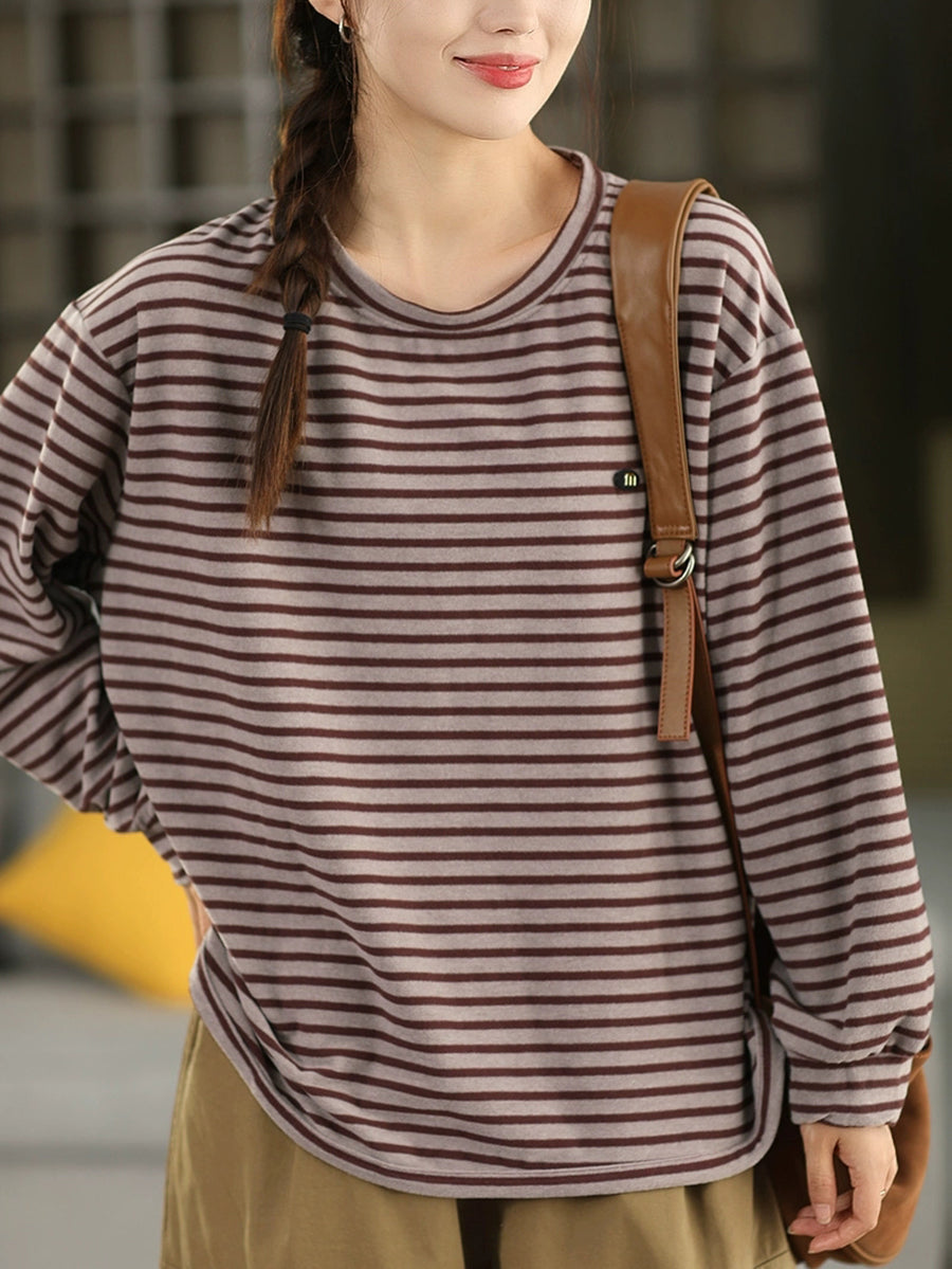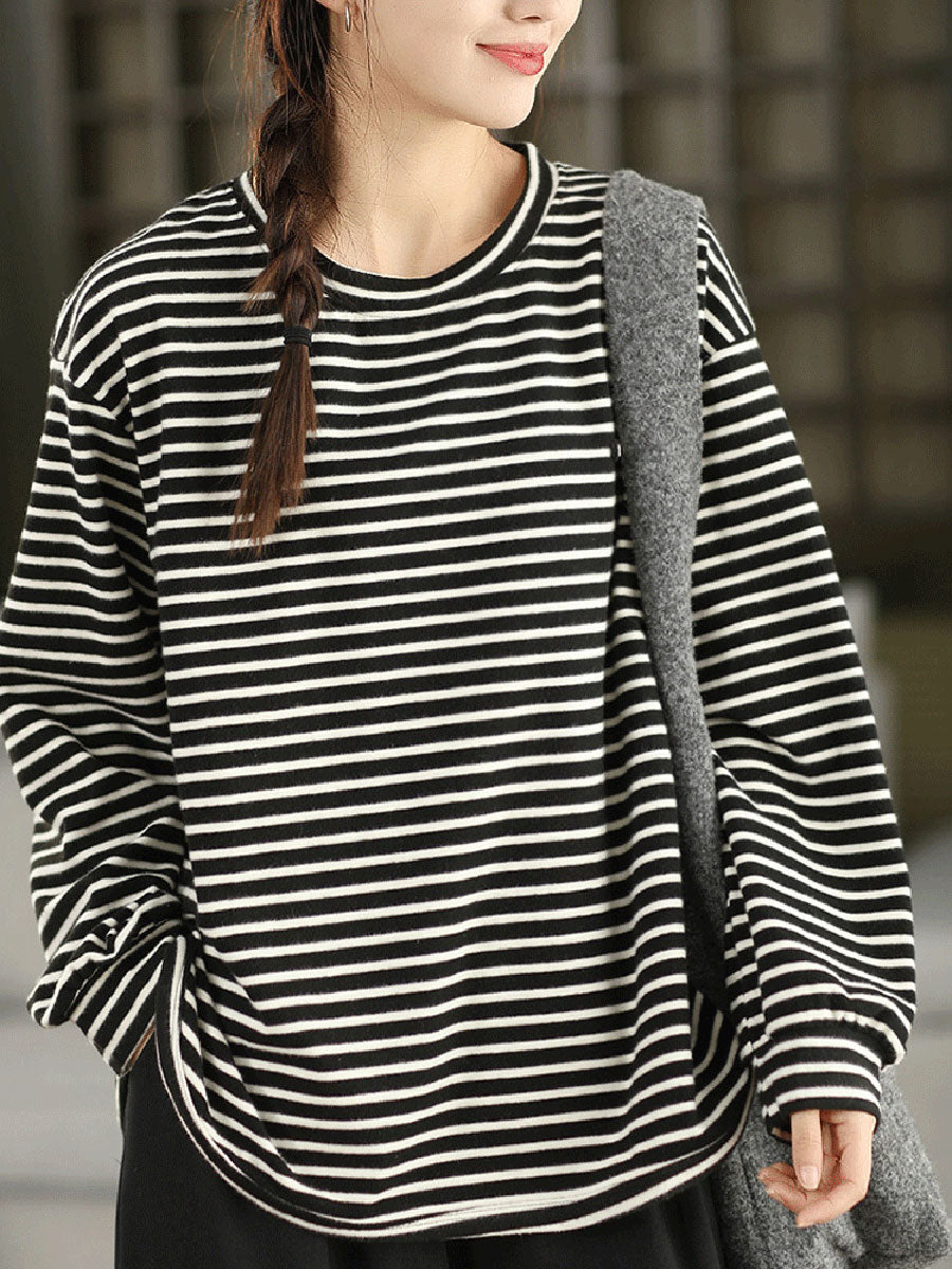 Blusa informal de otoño con rayas y cuello redondo para mujer