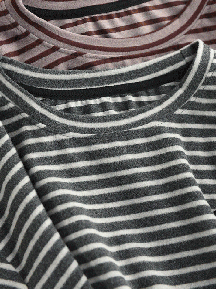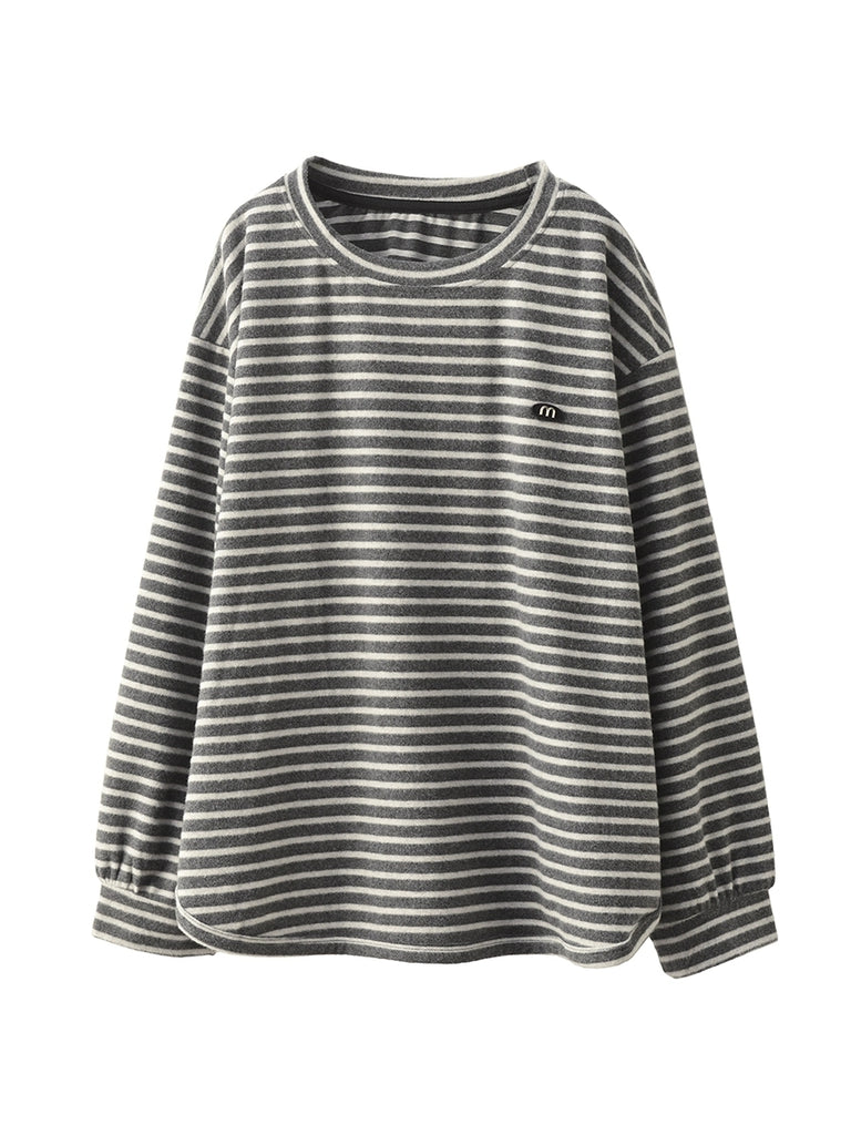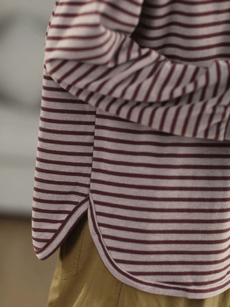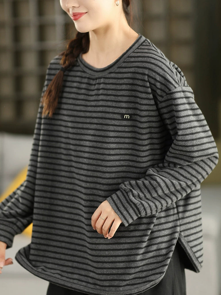 Blusa informal de otoño con rayas y cuello redondo para mujer