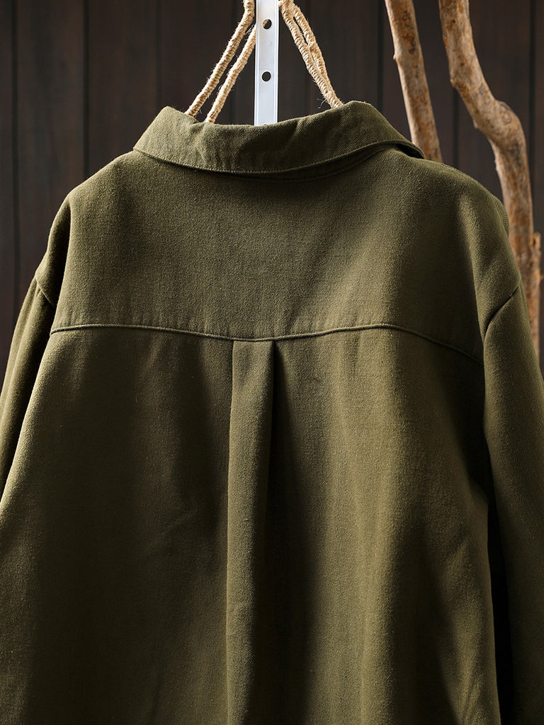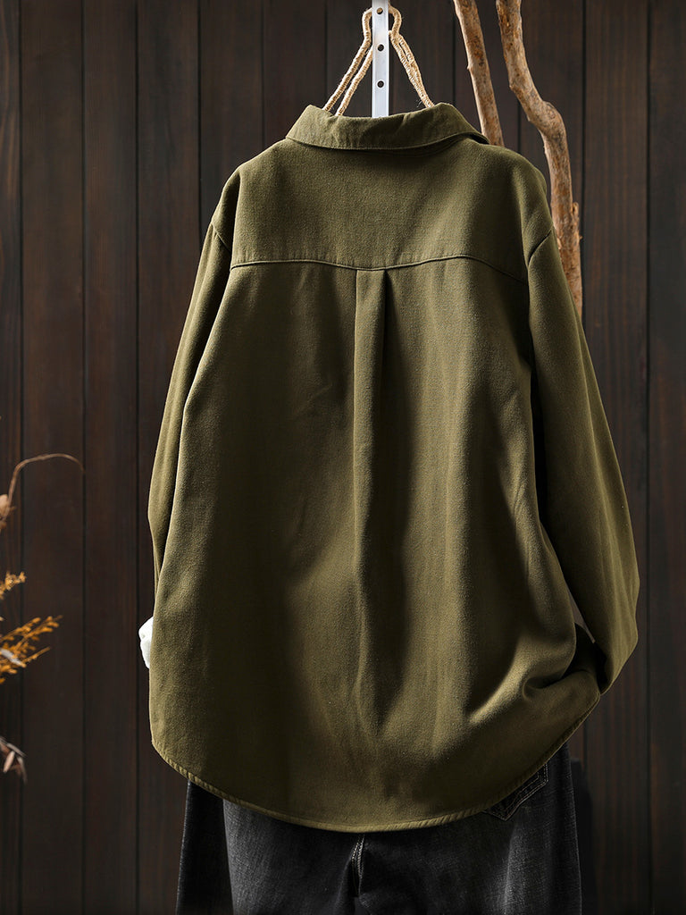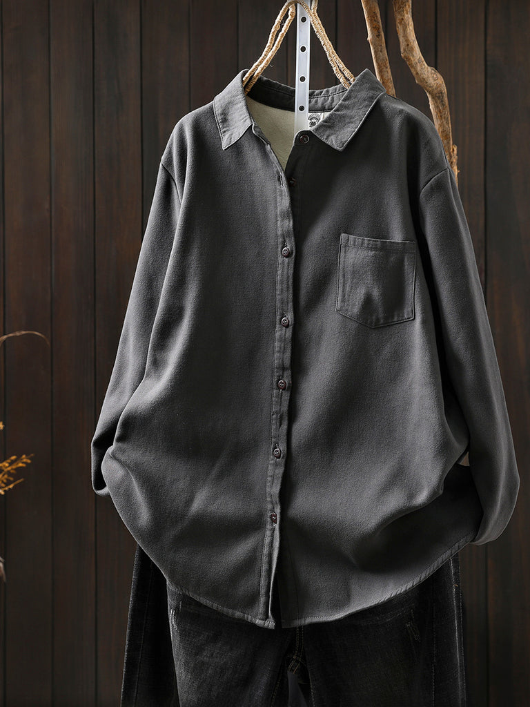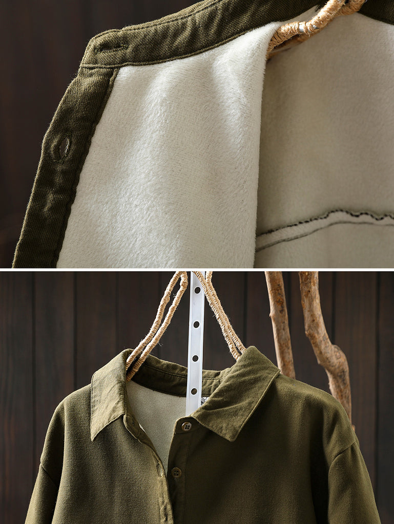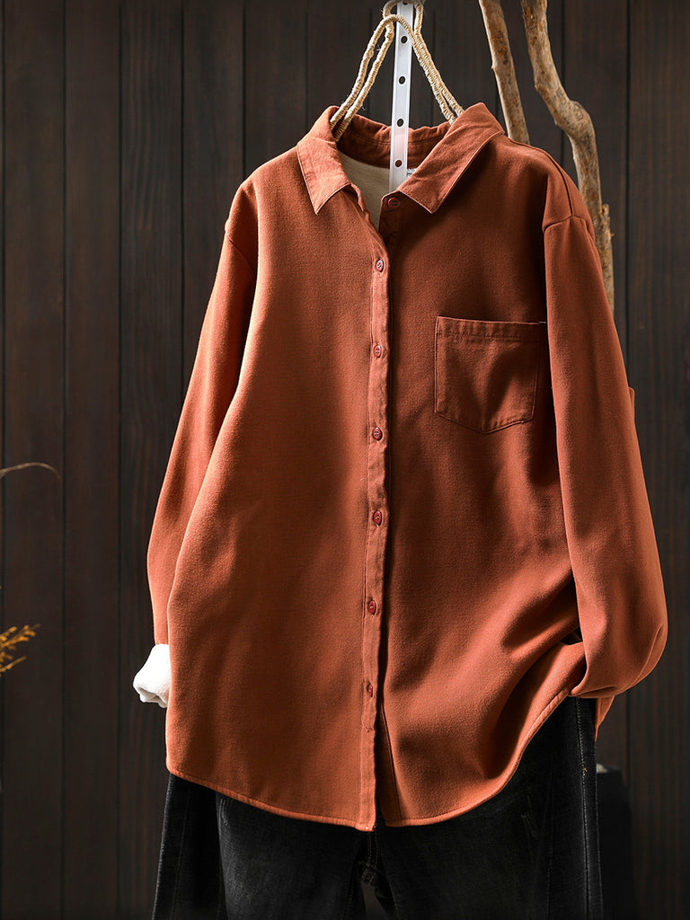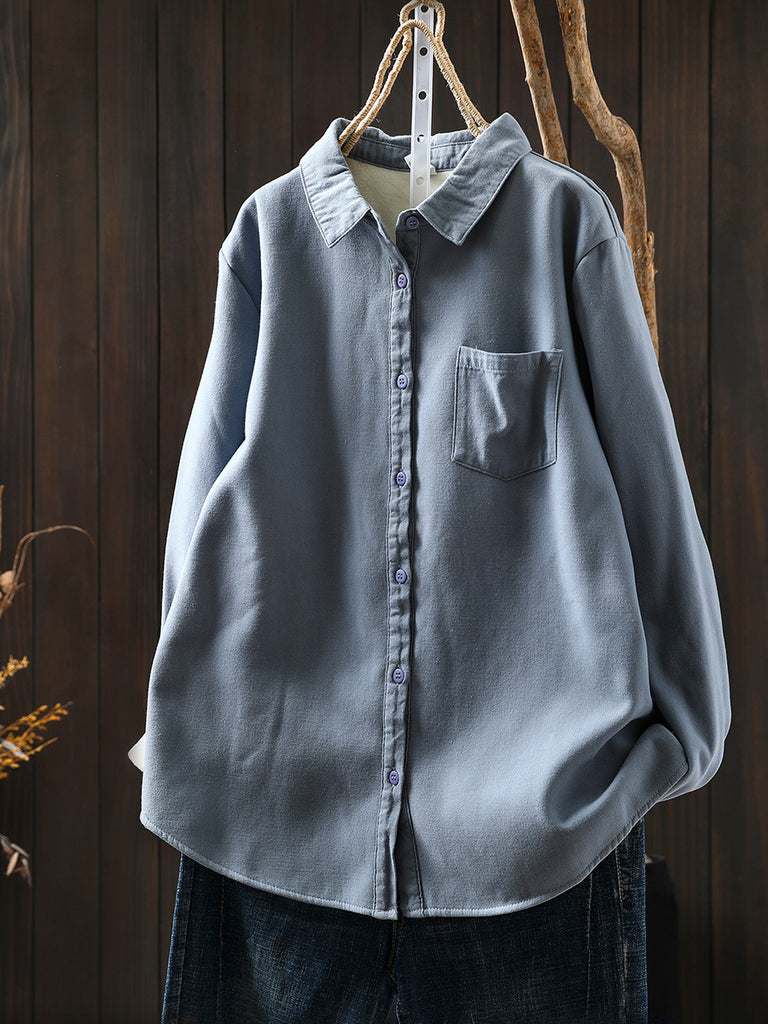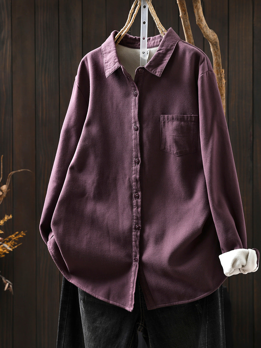 Camisa informal de otoño para mujer, color puro, con forro polar