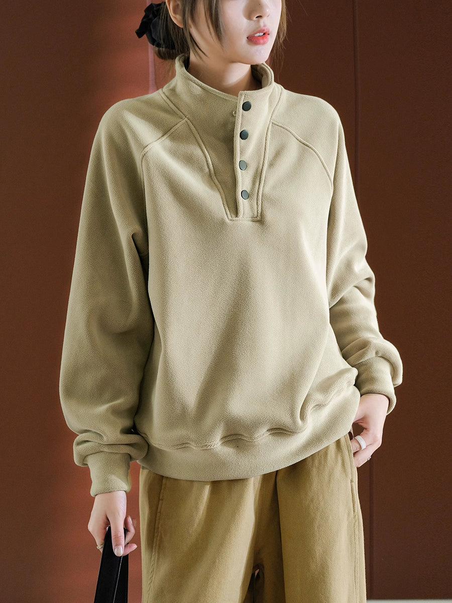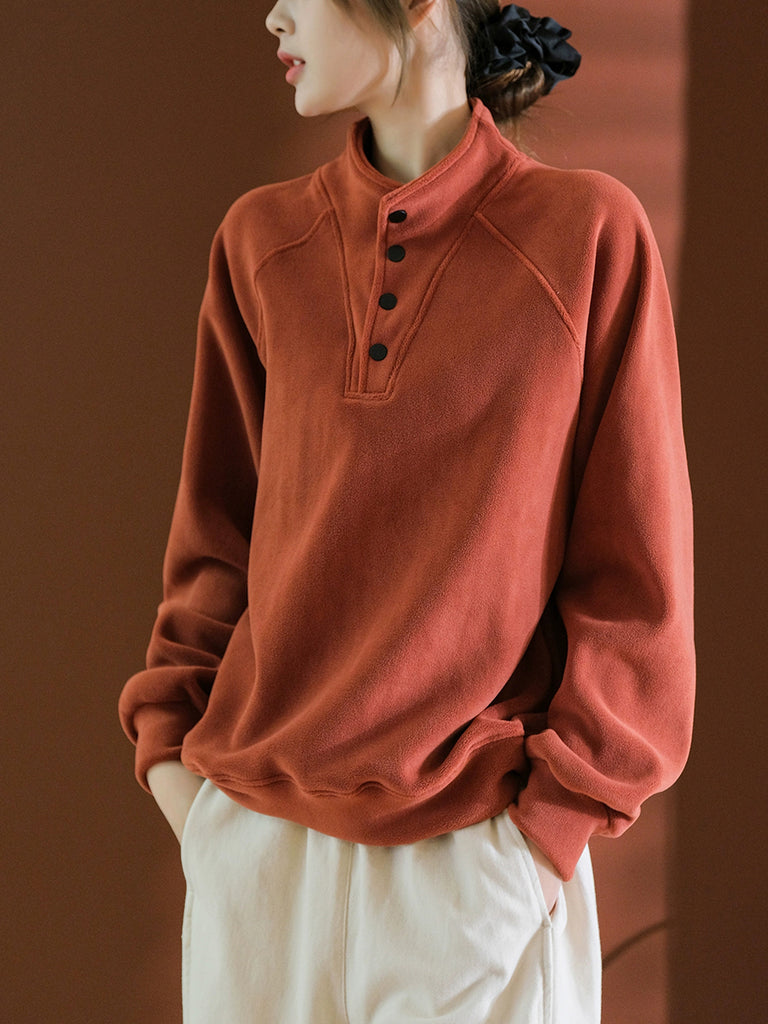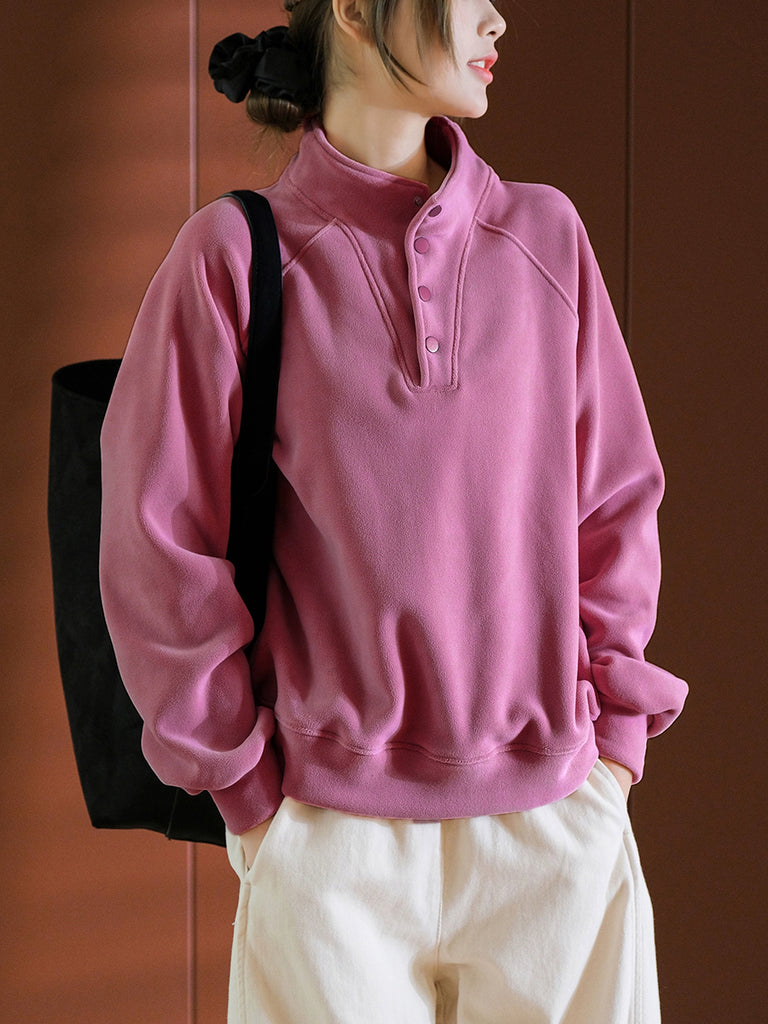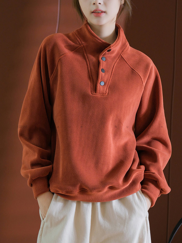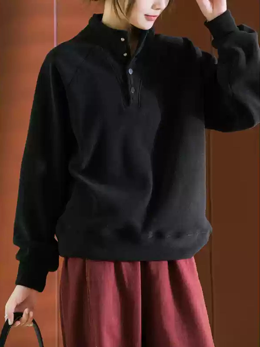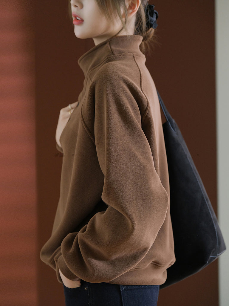 Blusa informal de otoño con cuello alto y color puro para mujer