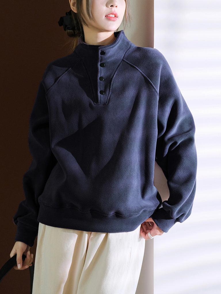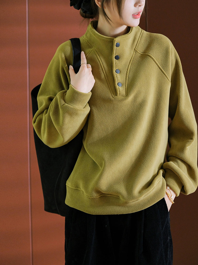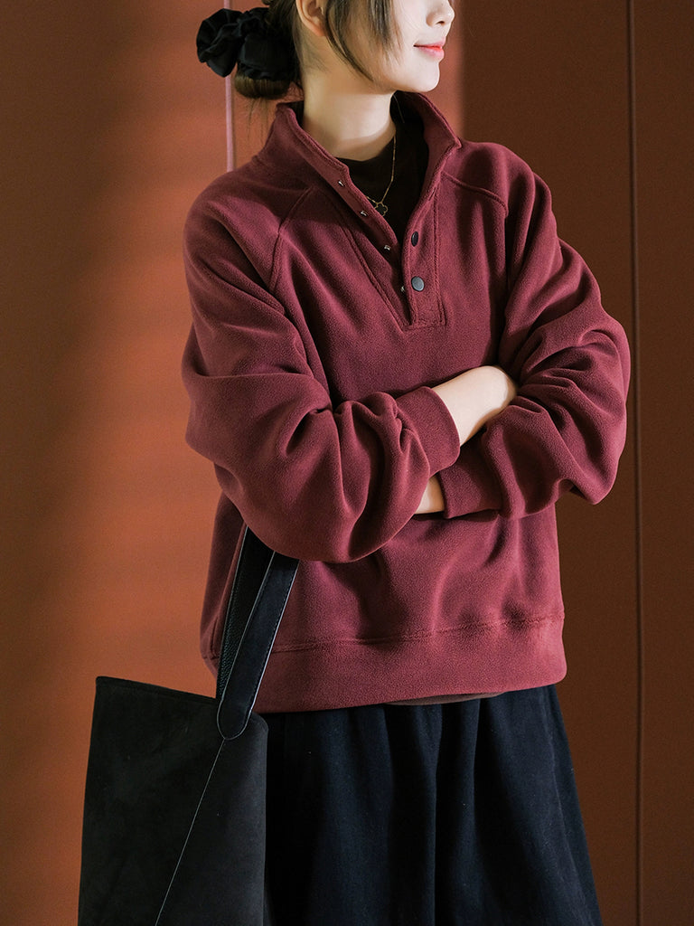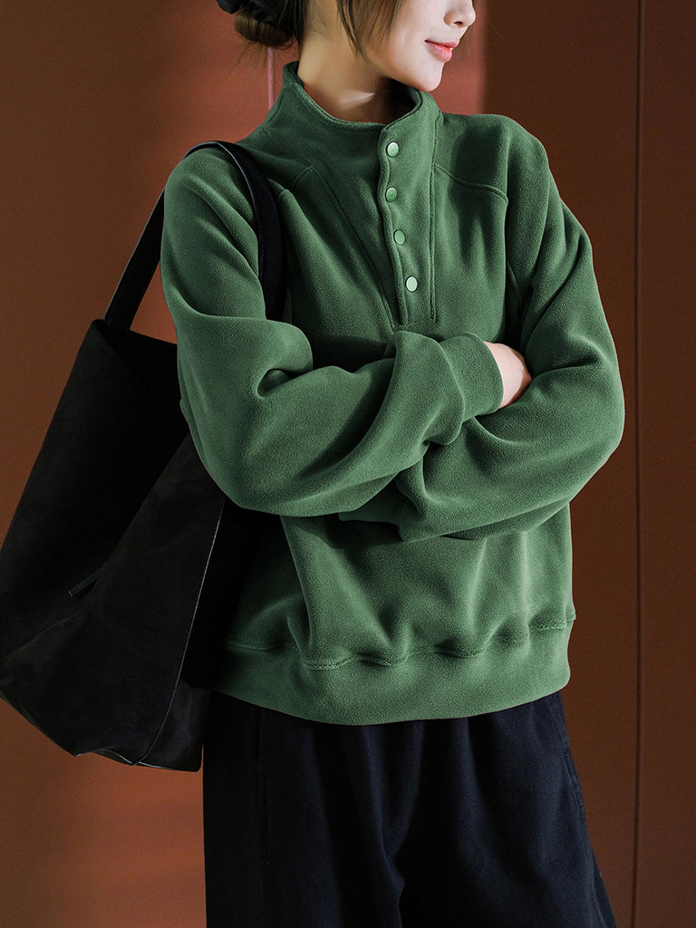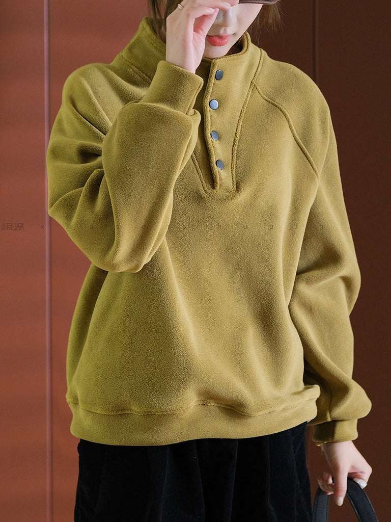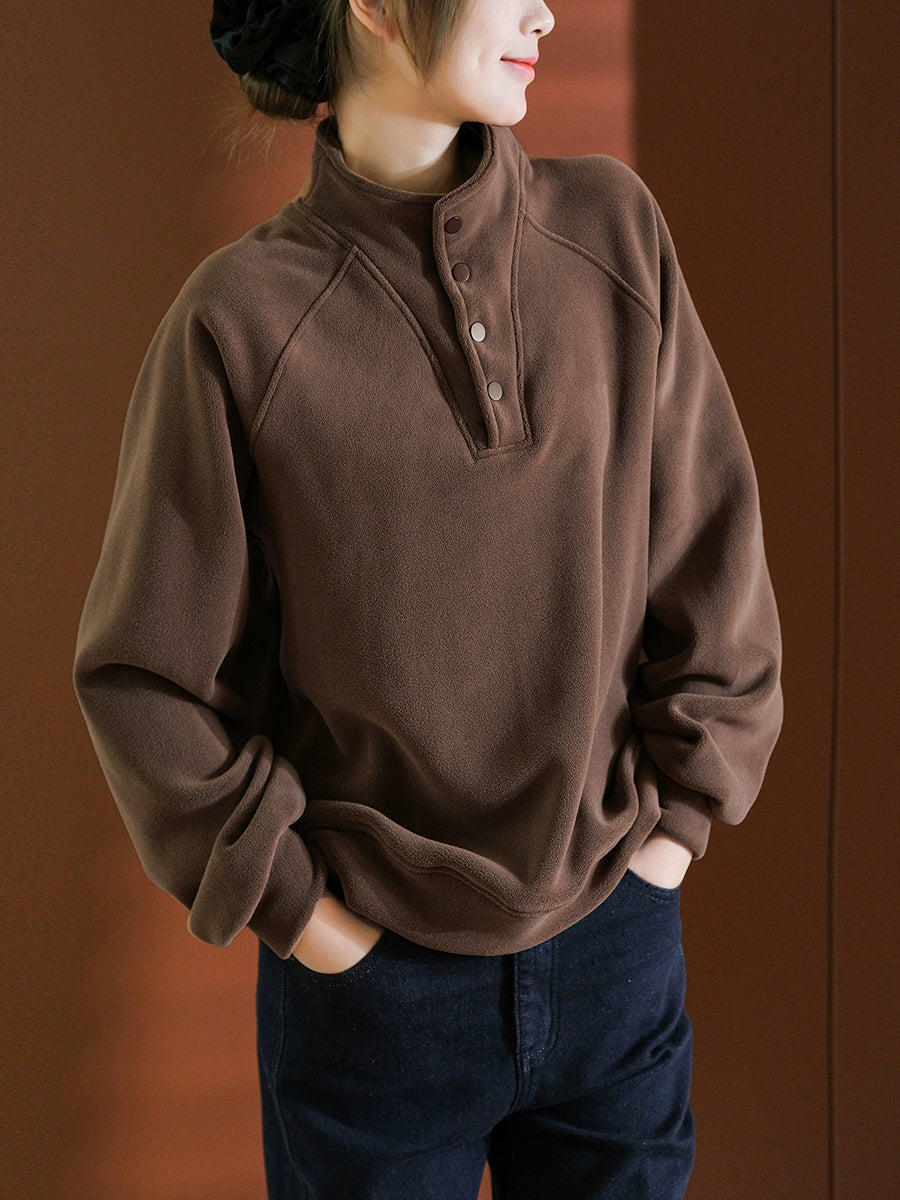 Blusa informal de otoño con cuello alto y color puro para mujer