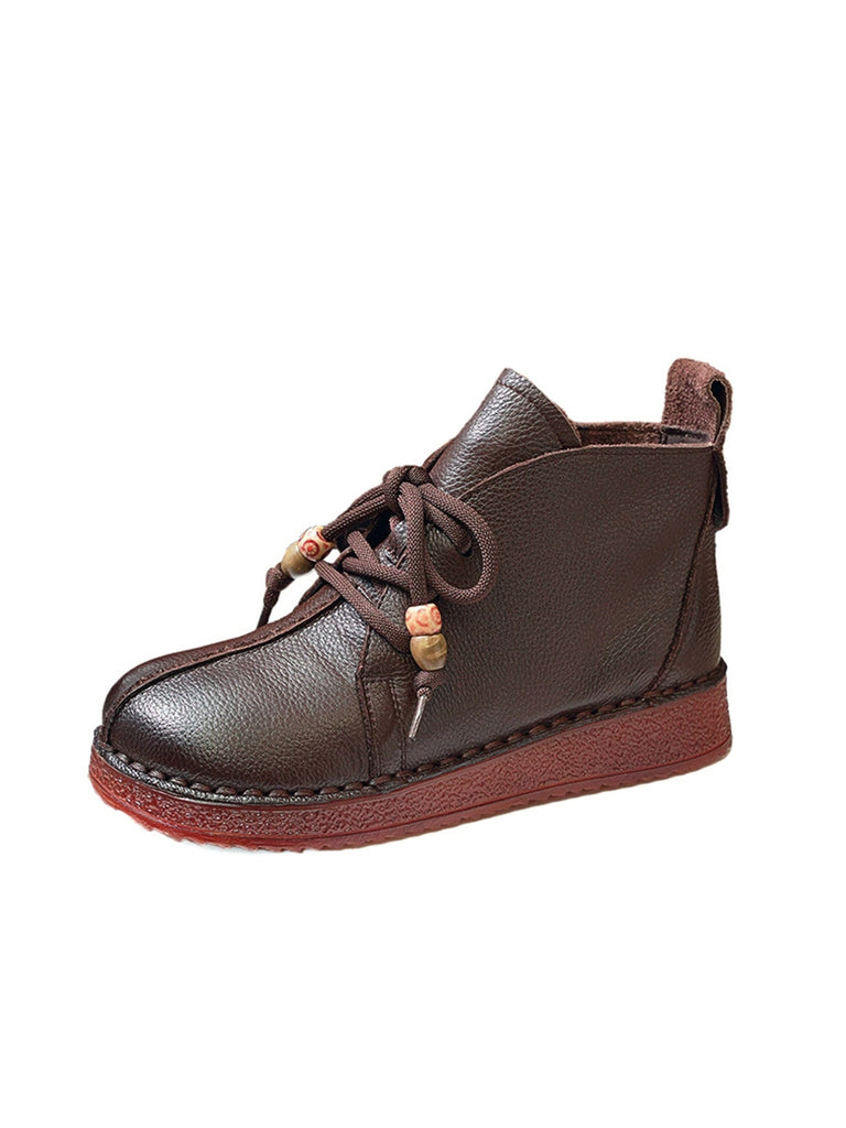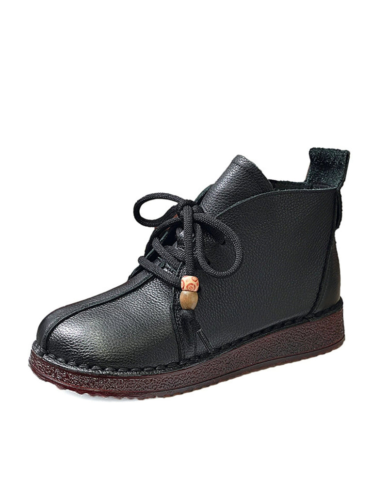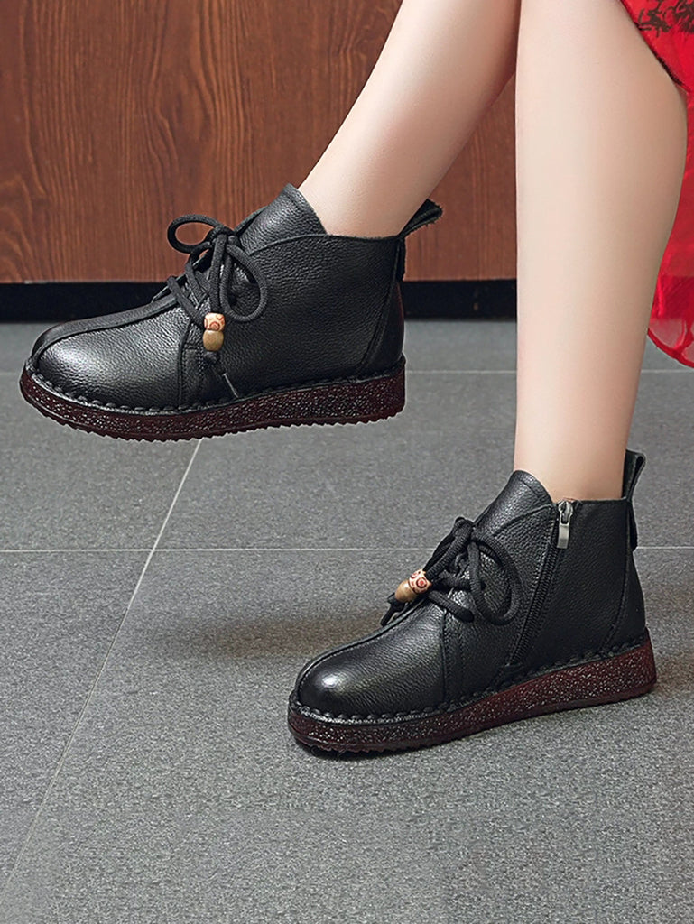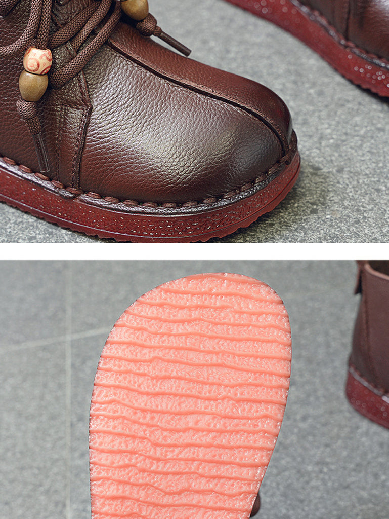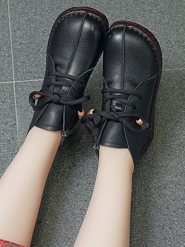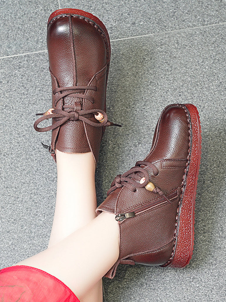Botas vintage de piel auténtica con tacón bajo y empalme para mujer