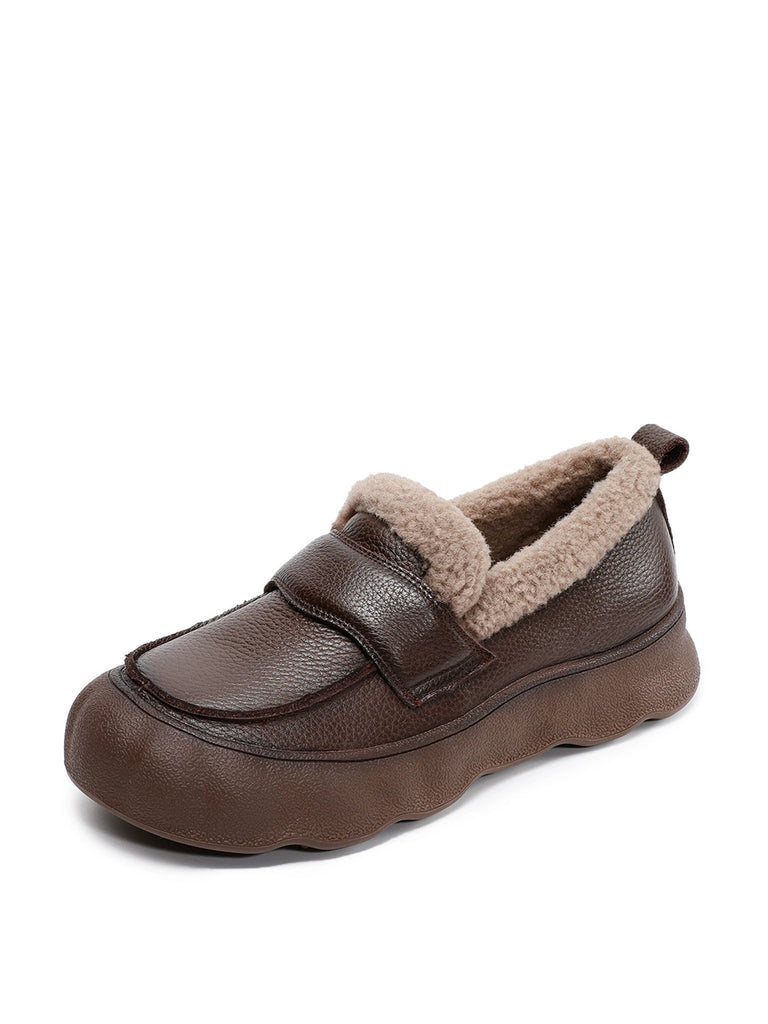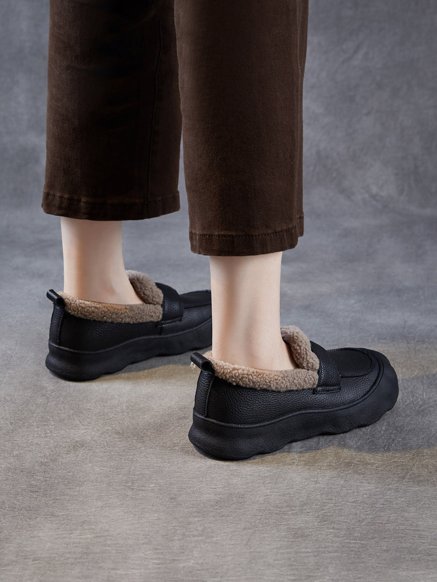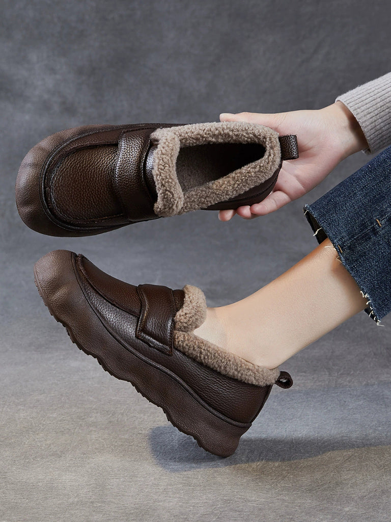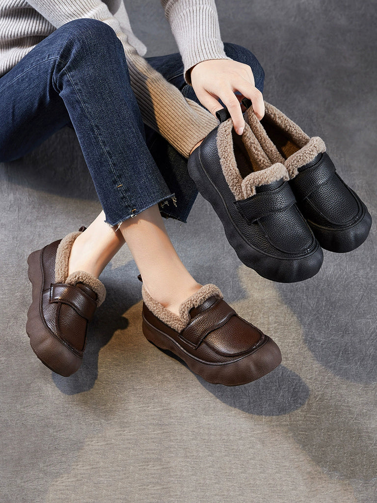 Zapatos de invierno para mujer de piel auténtica con forro polar