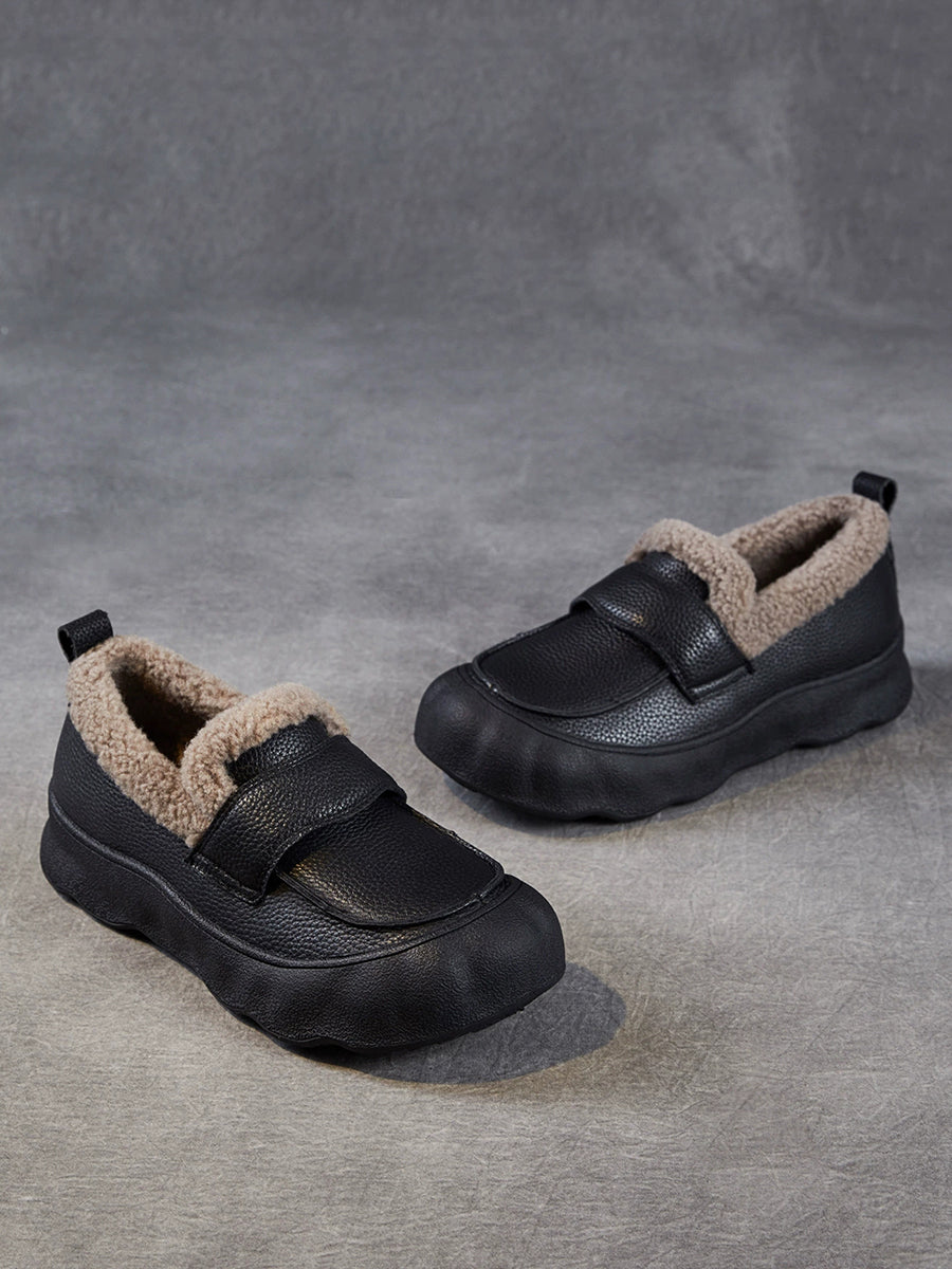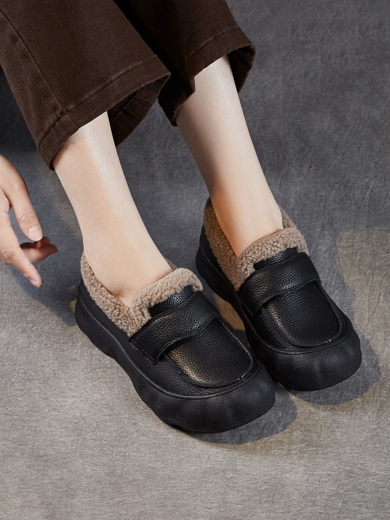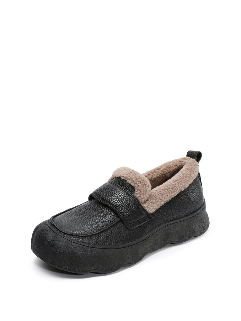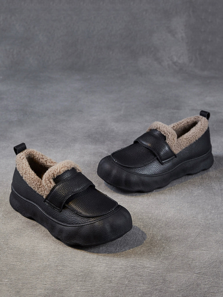 Zapatos de invierno para mujer de piel auténtica con forro polar