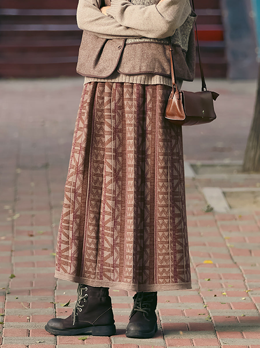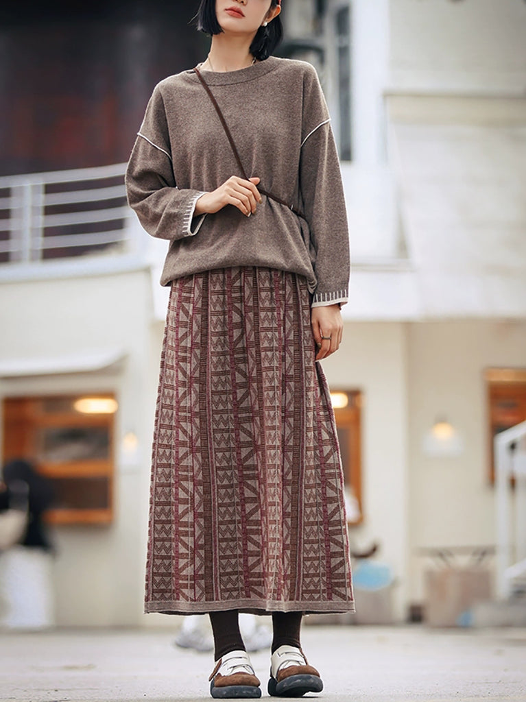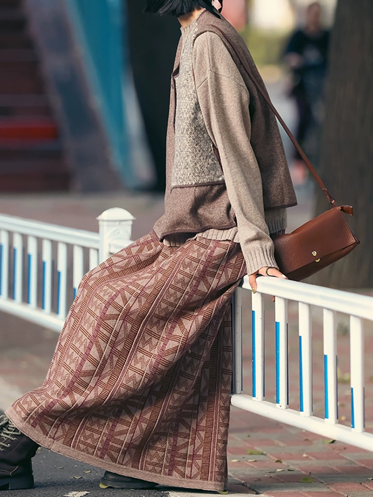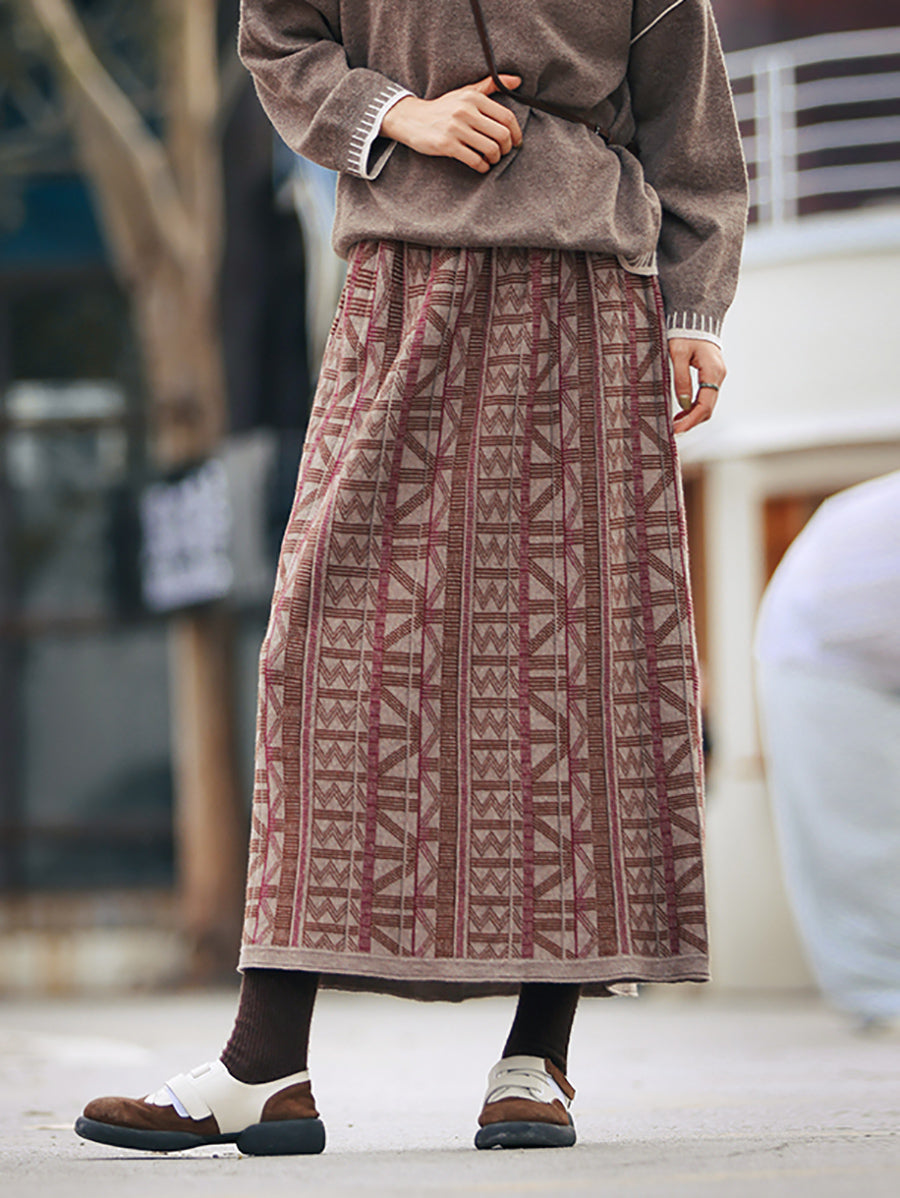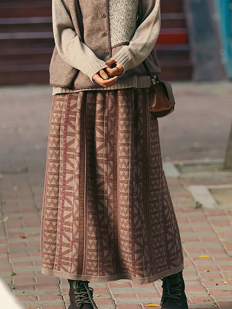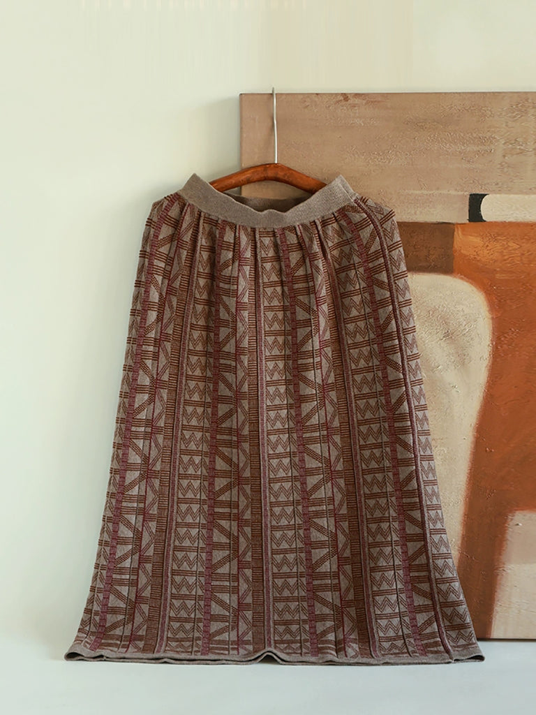 Falda de algodón jacquard retro de otoño para mujer, corte en A