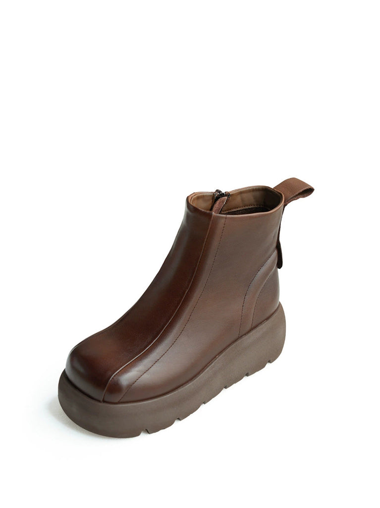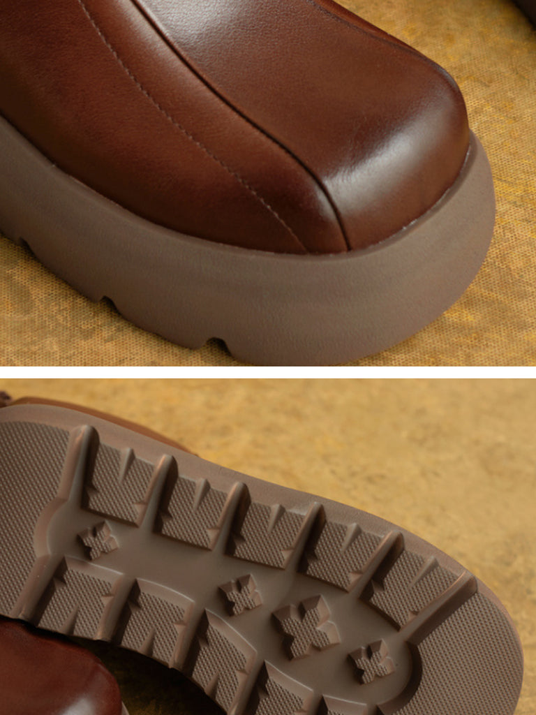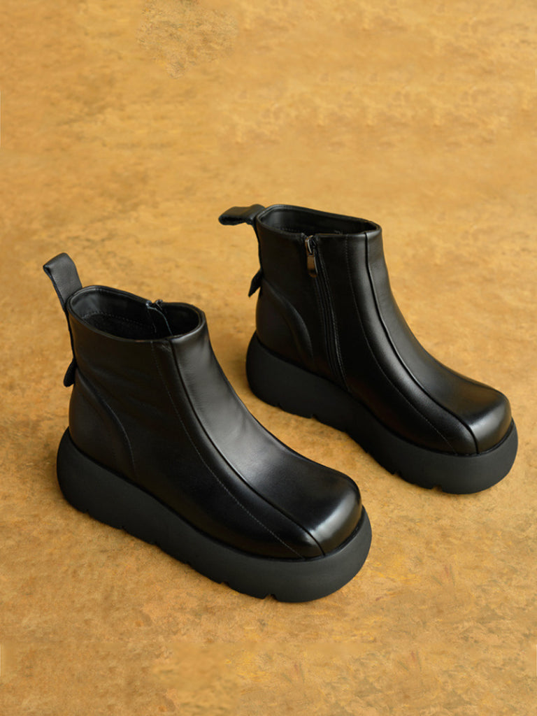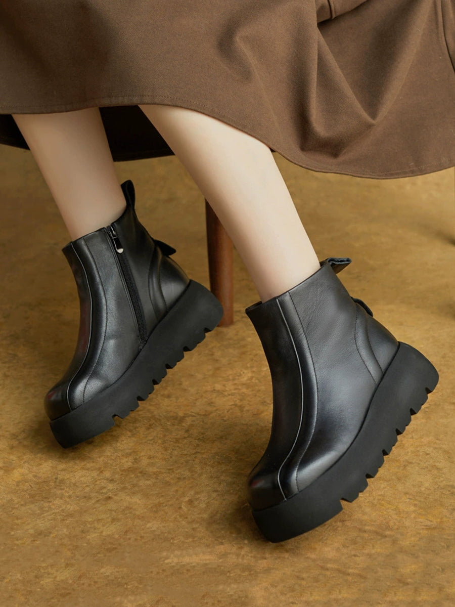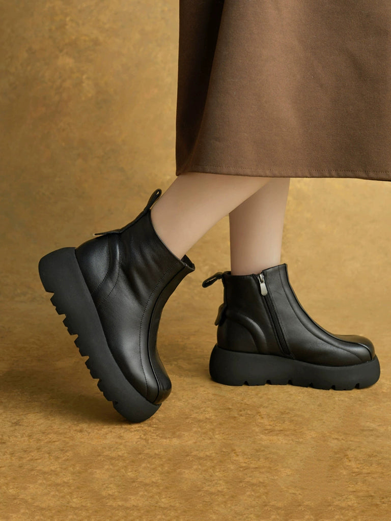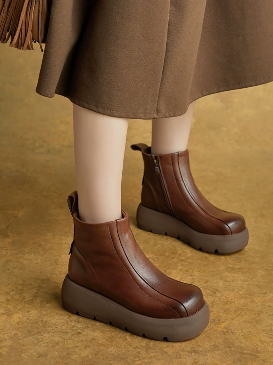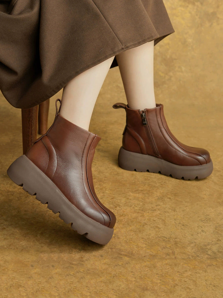 Botas de plataforma con cremallera y piel auténtica para mujer, ideales para el invierno.