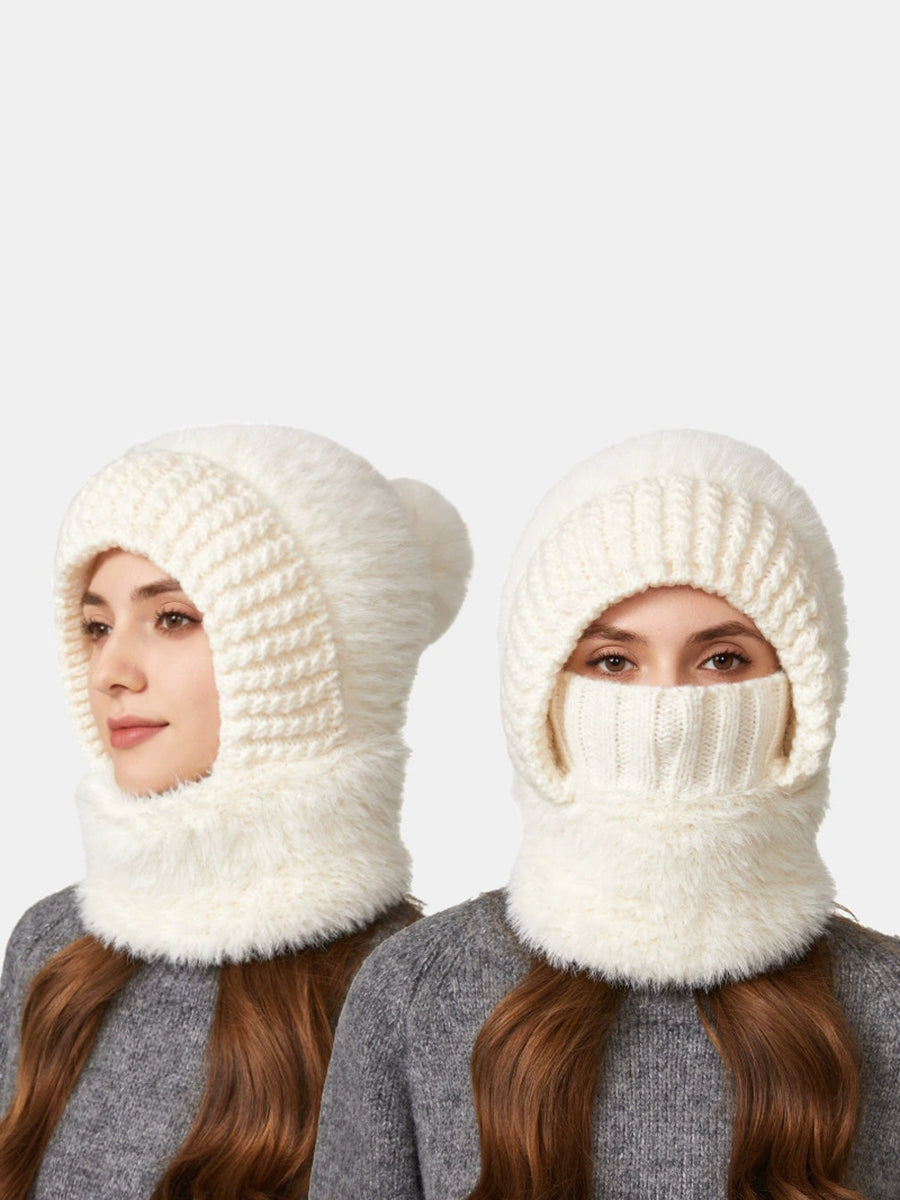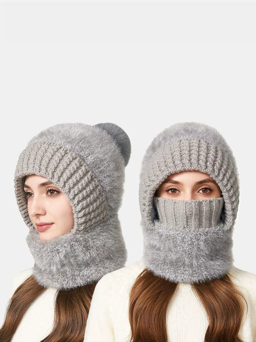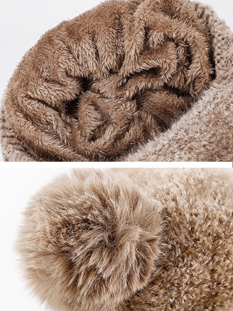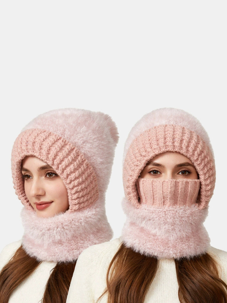 Bufanda y gorro de punto afelpado de color liso para mujer, estilo informal.