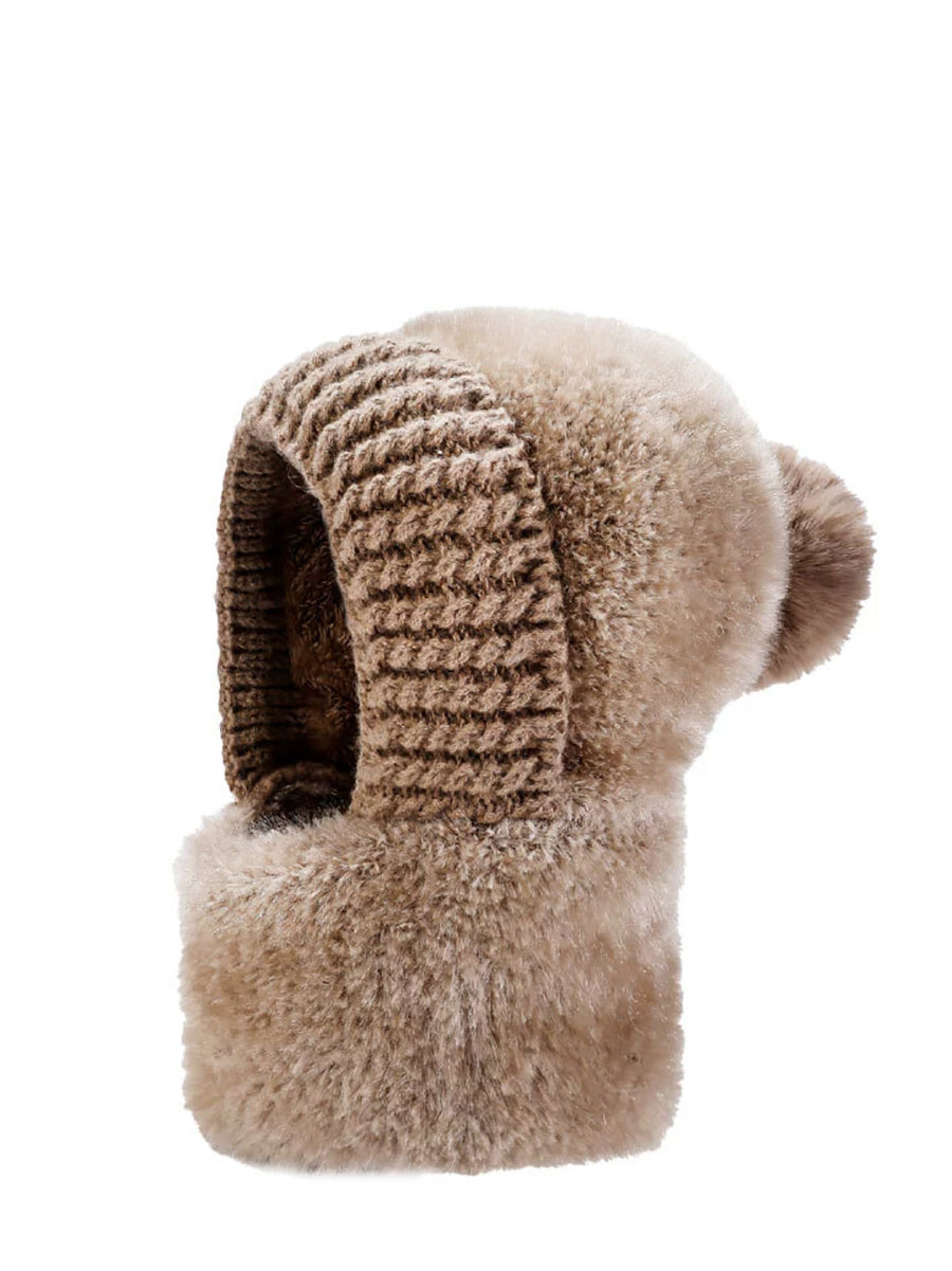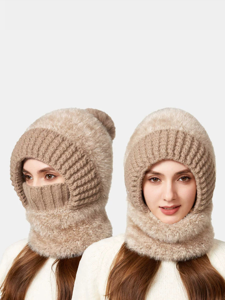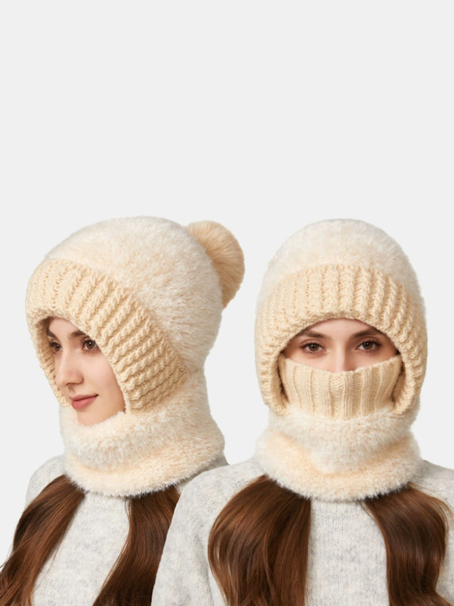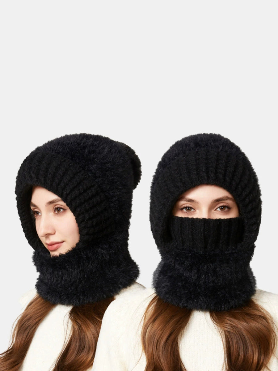 Bufanda y gorro de punto afelpado de color liso para mujer, estilo informal.