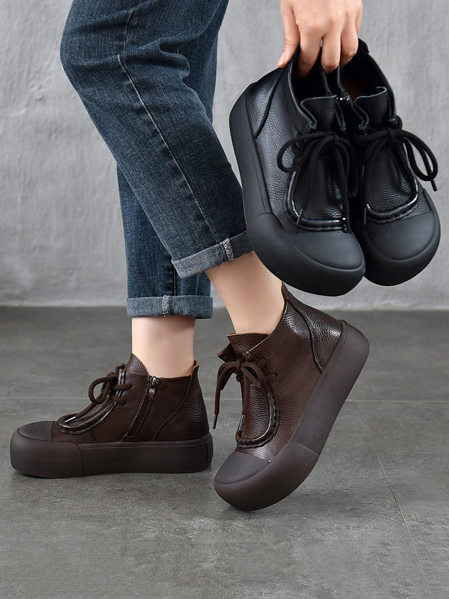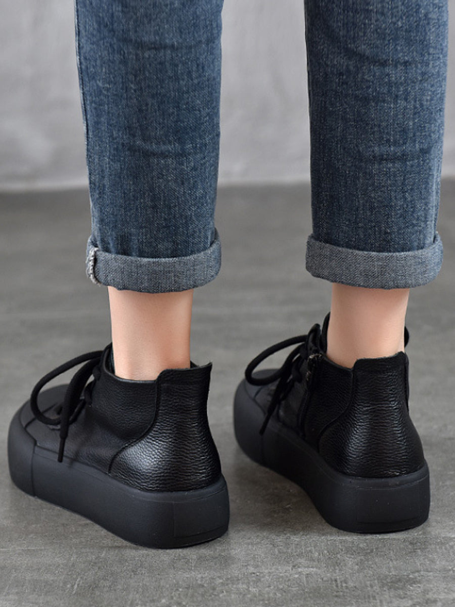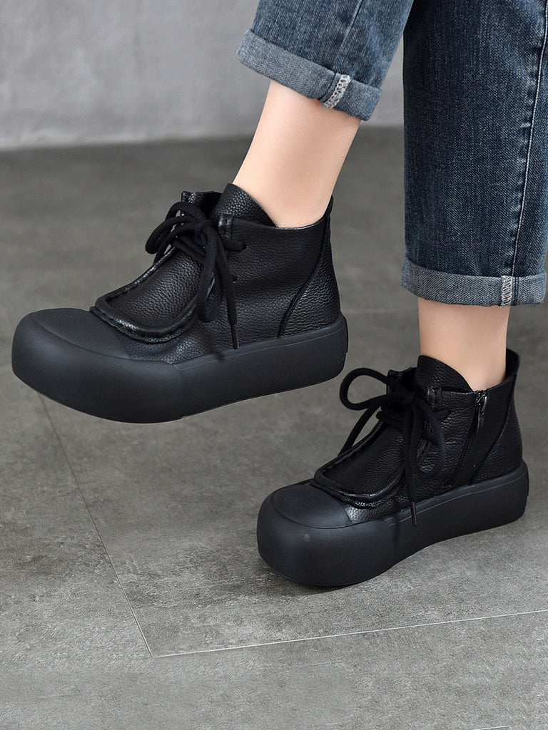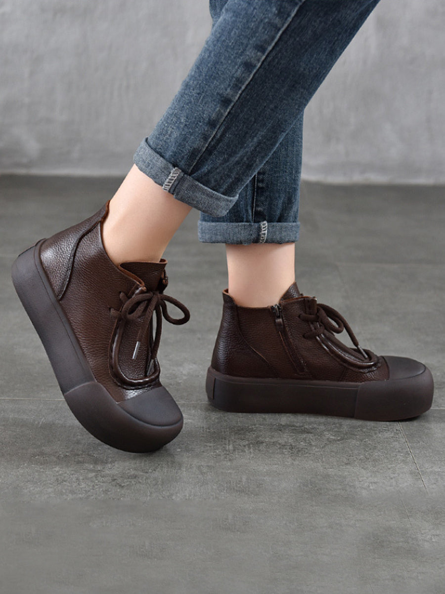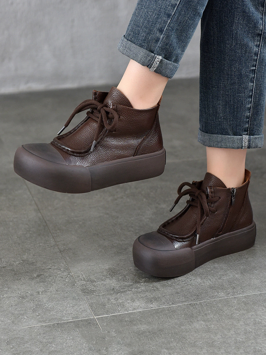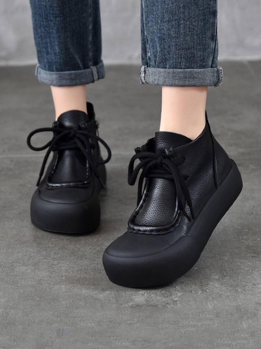 Botines de invierno para mujer de piel auténtica con tiras y diseño en el tobillo