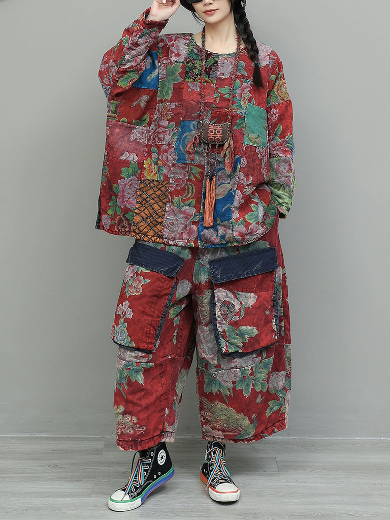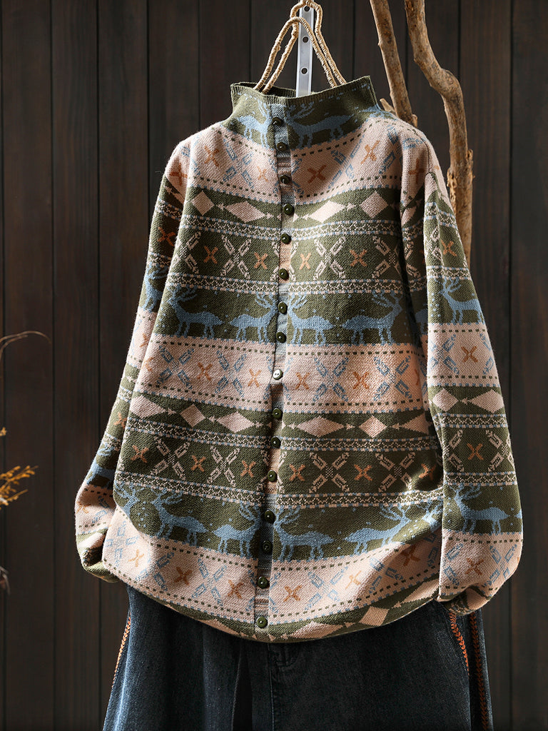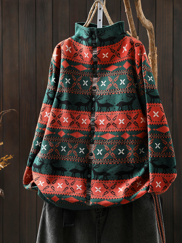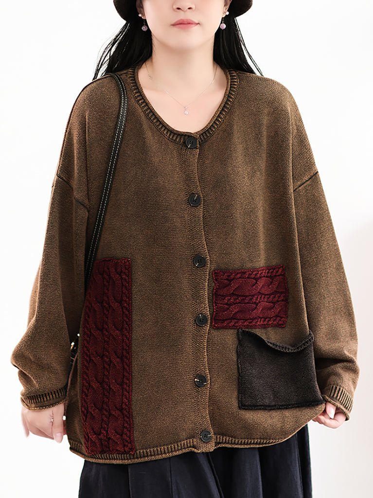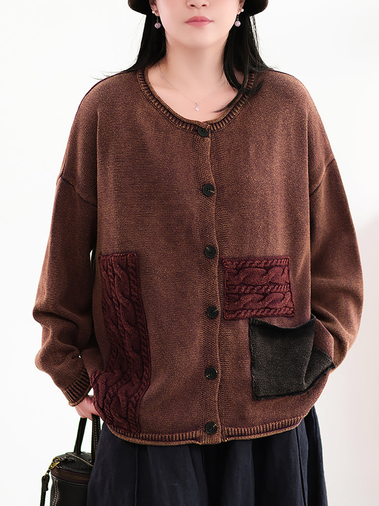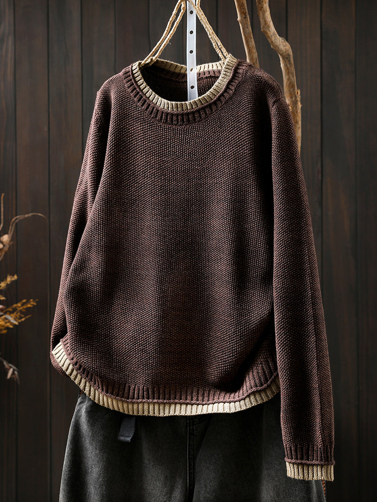 Suéter de punto de cuello redondo con bloques de color estilo artístico para mujer, ideal para otoño
