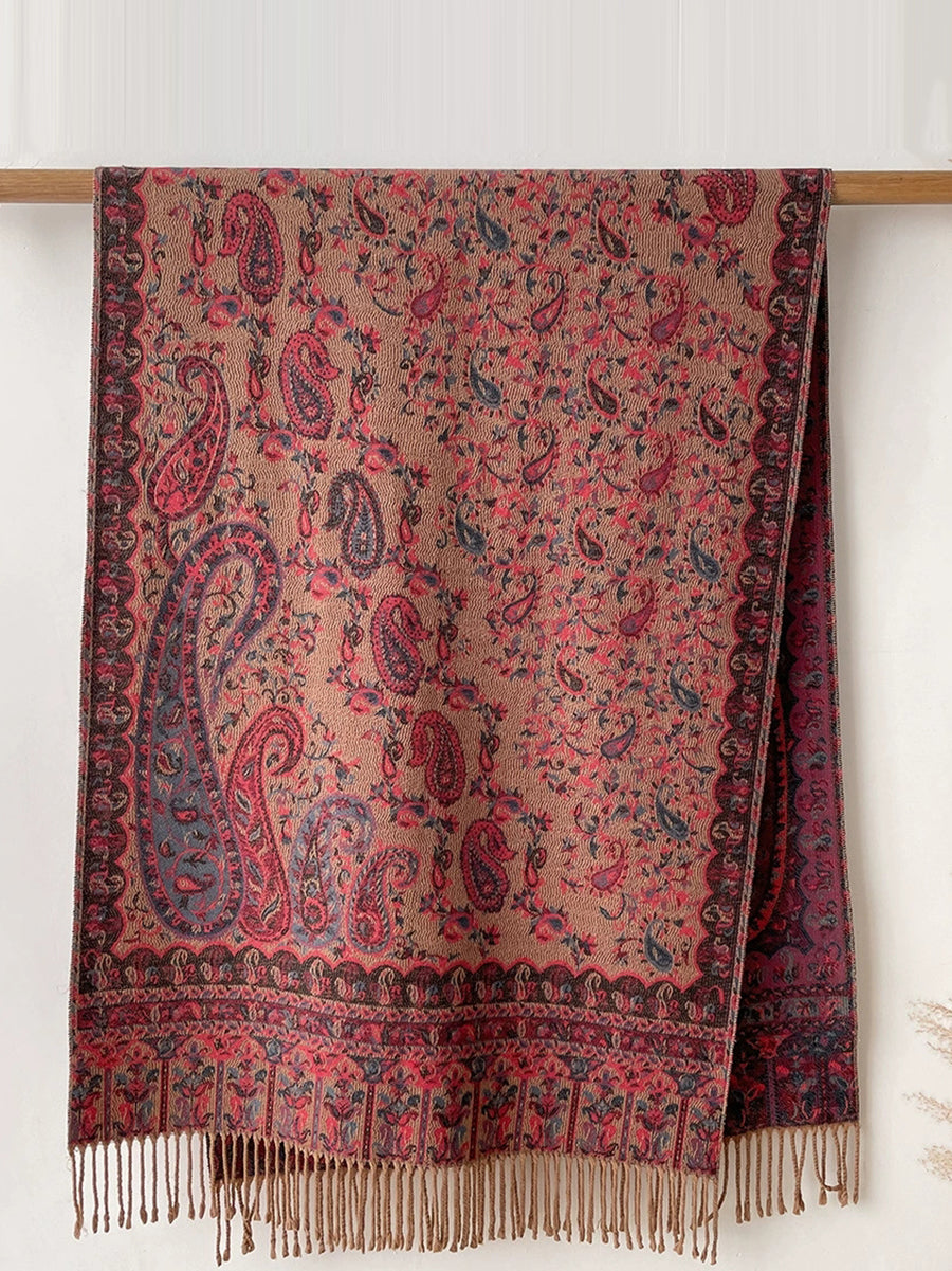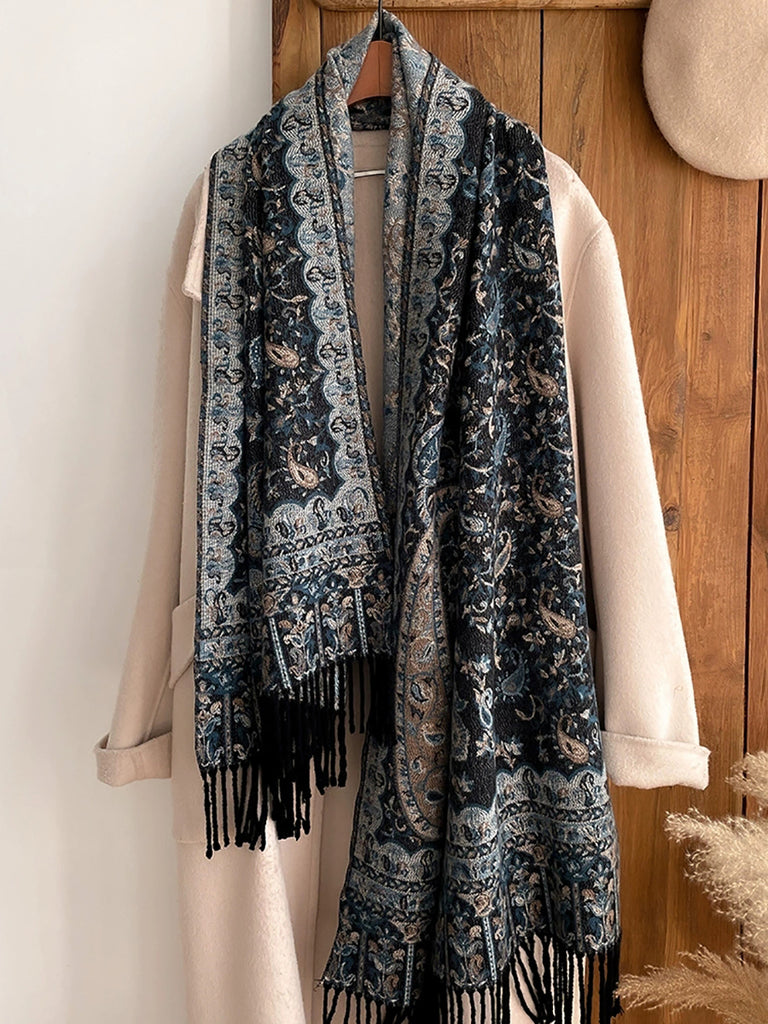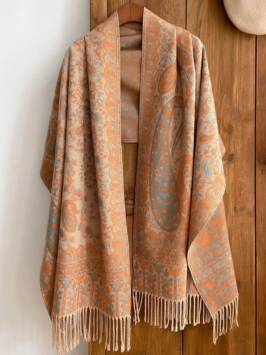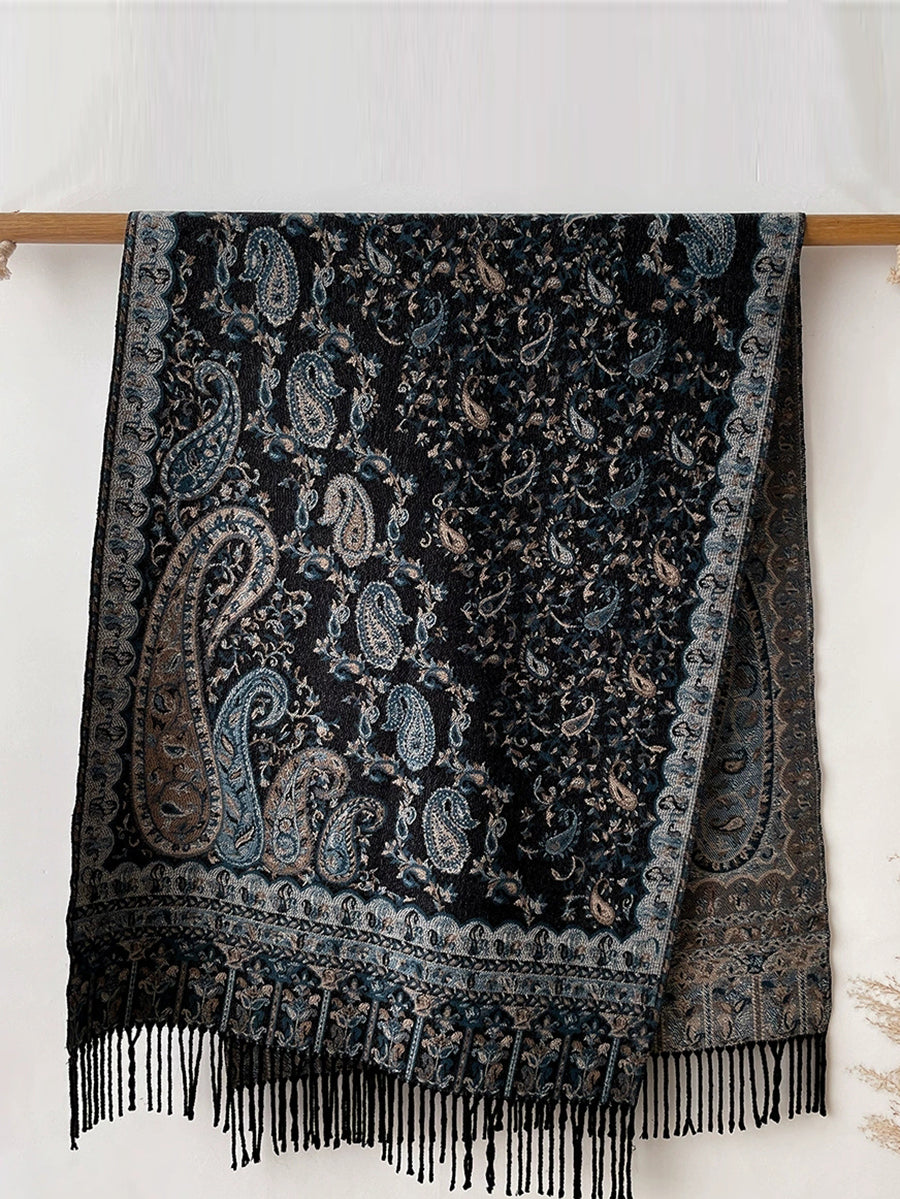 Chal de mujer estilo bohemio con borlas y jacquard jacquard