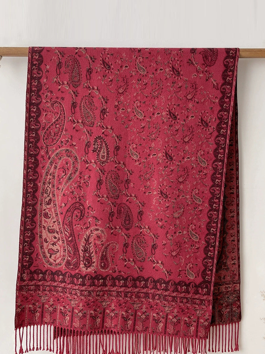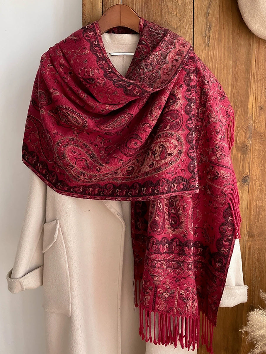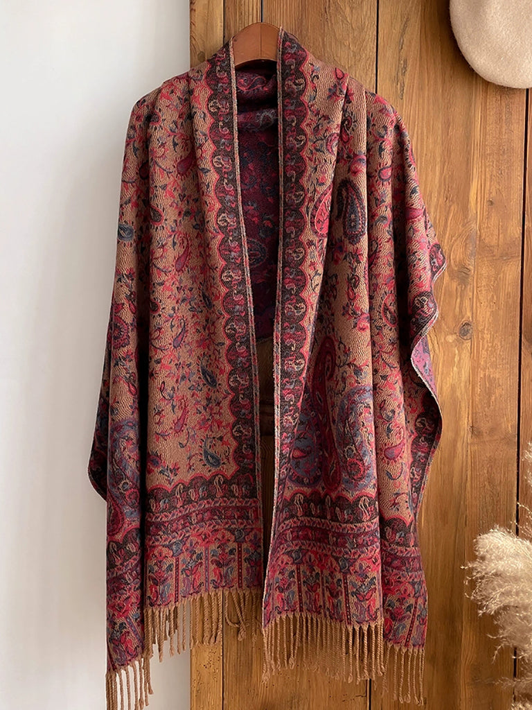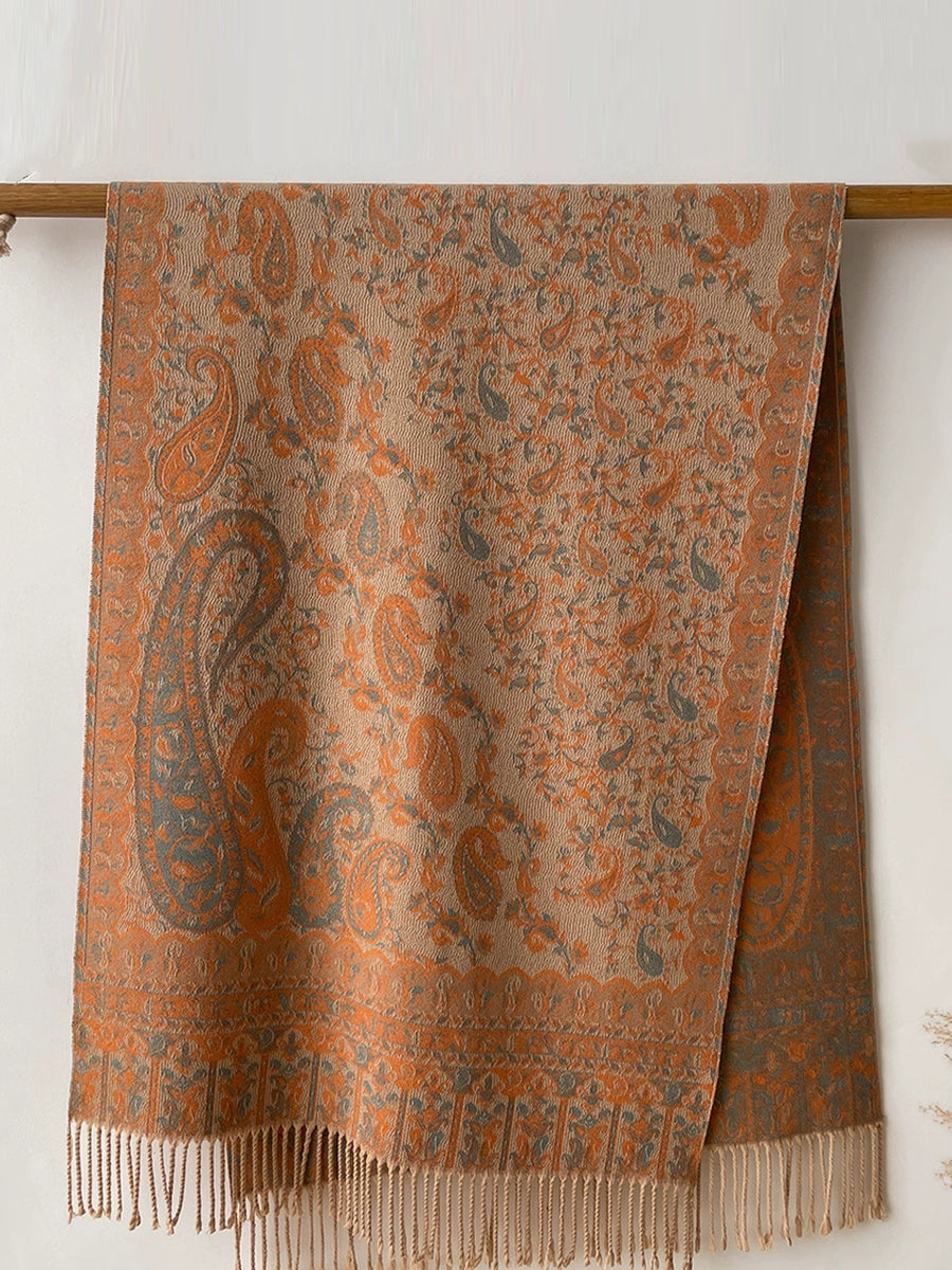 Chal de mujer estilo bohemio con borlas y jacquard jacquard