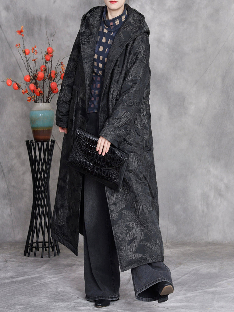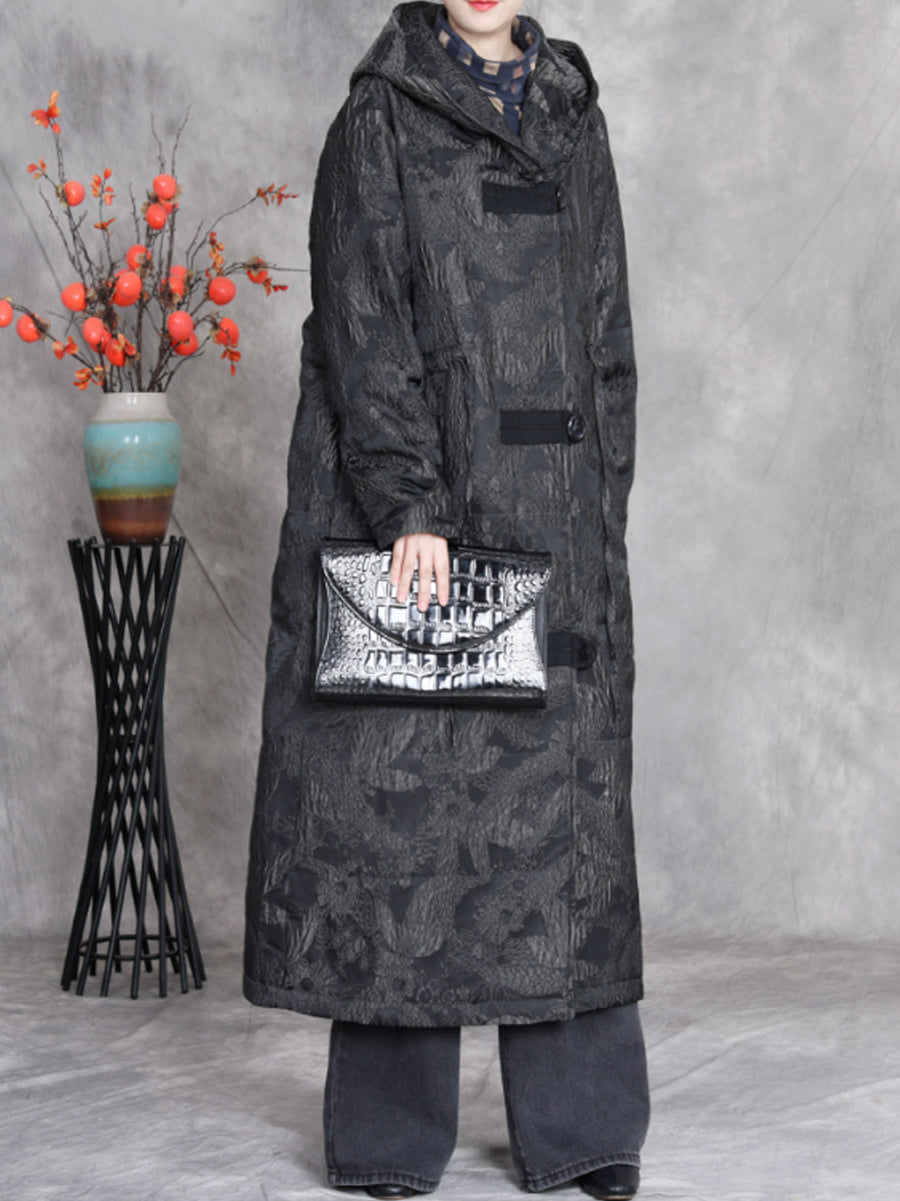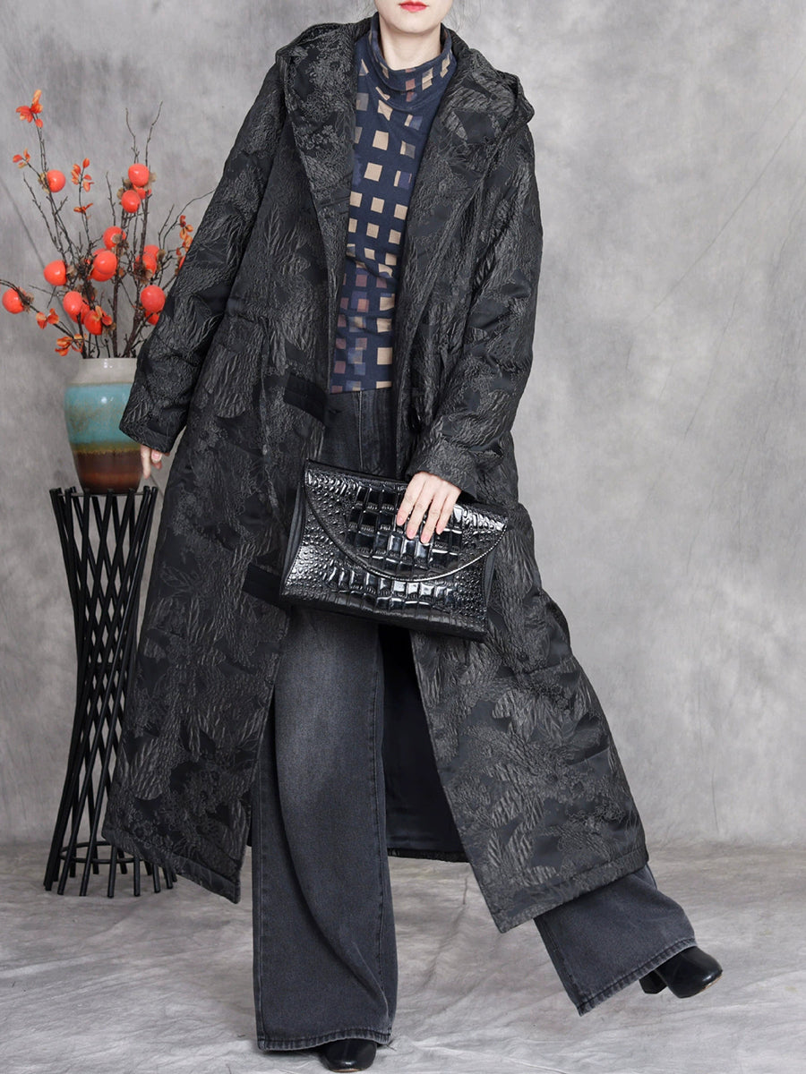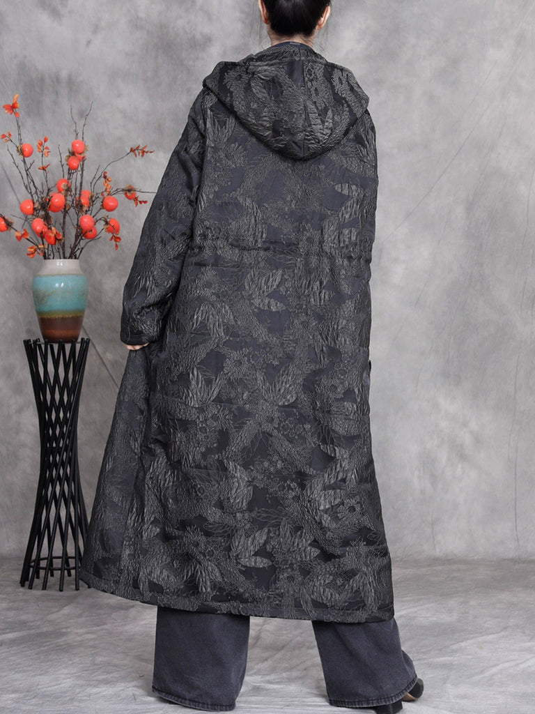 Abrigo acolchado con capucha y estampado jacquard floral vintage para mujer