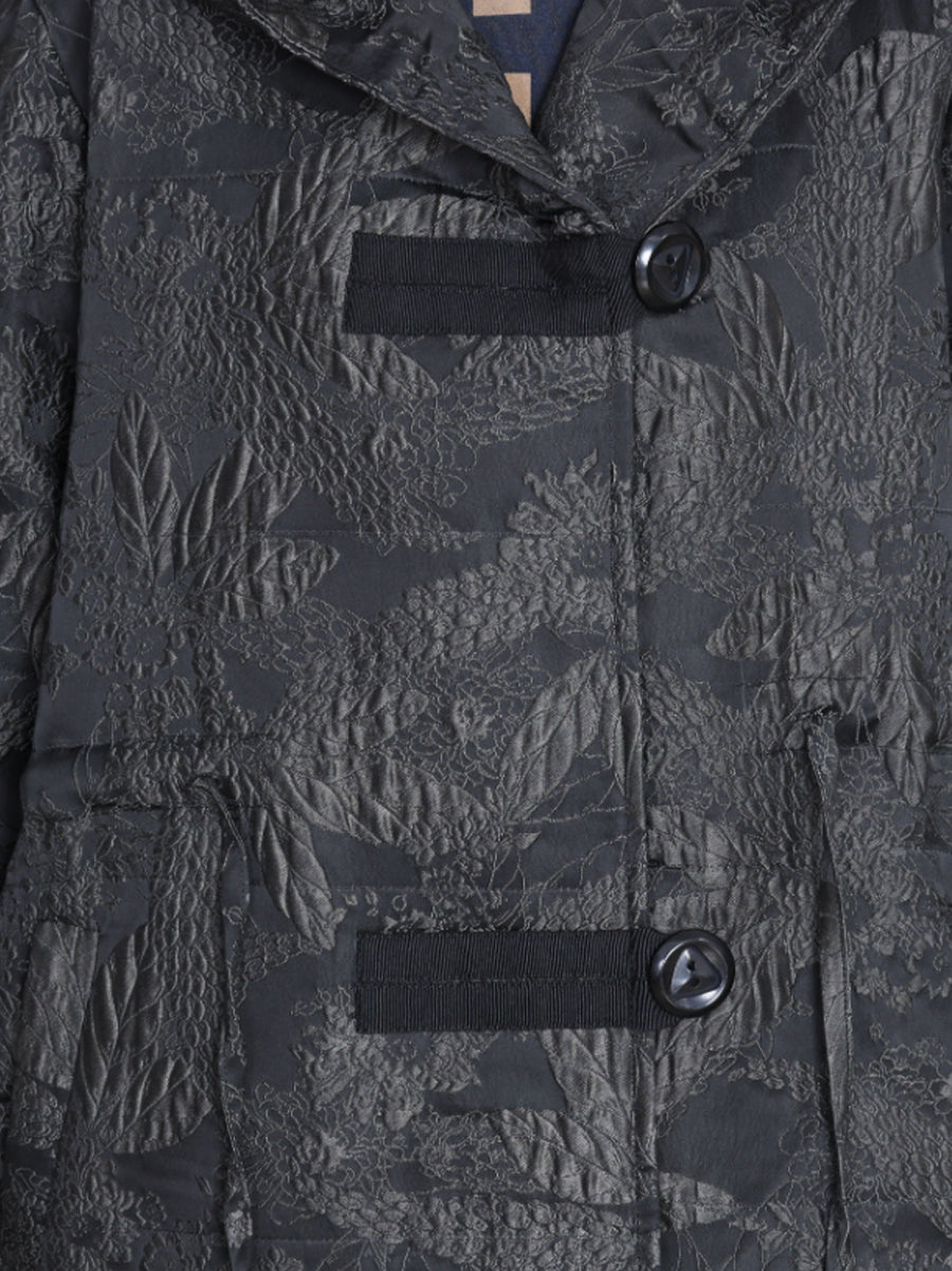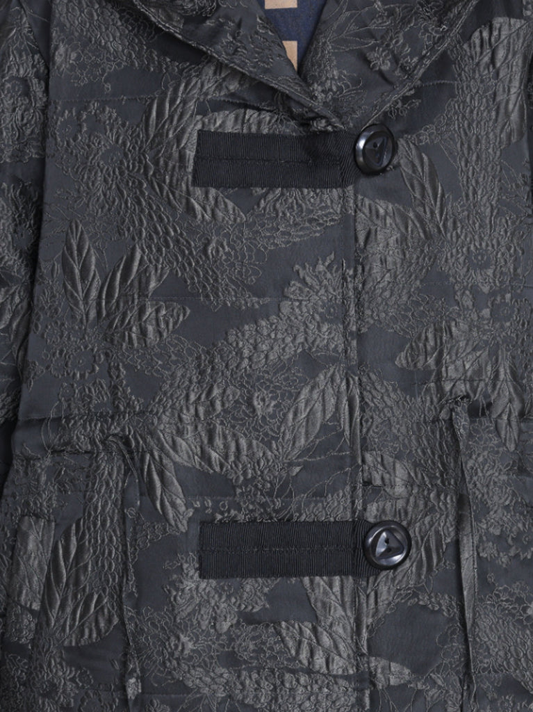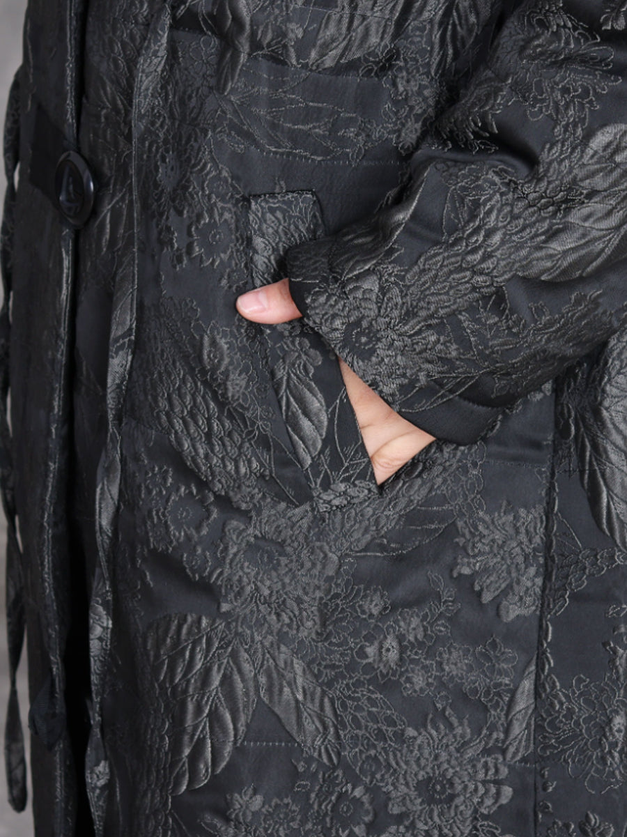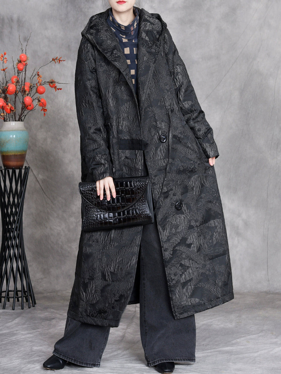 Abrigo acolchado con capucha y estampado jacquard floral vintage para mujer