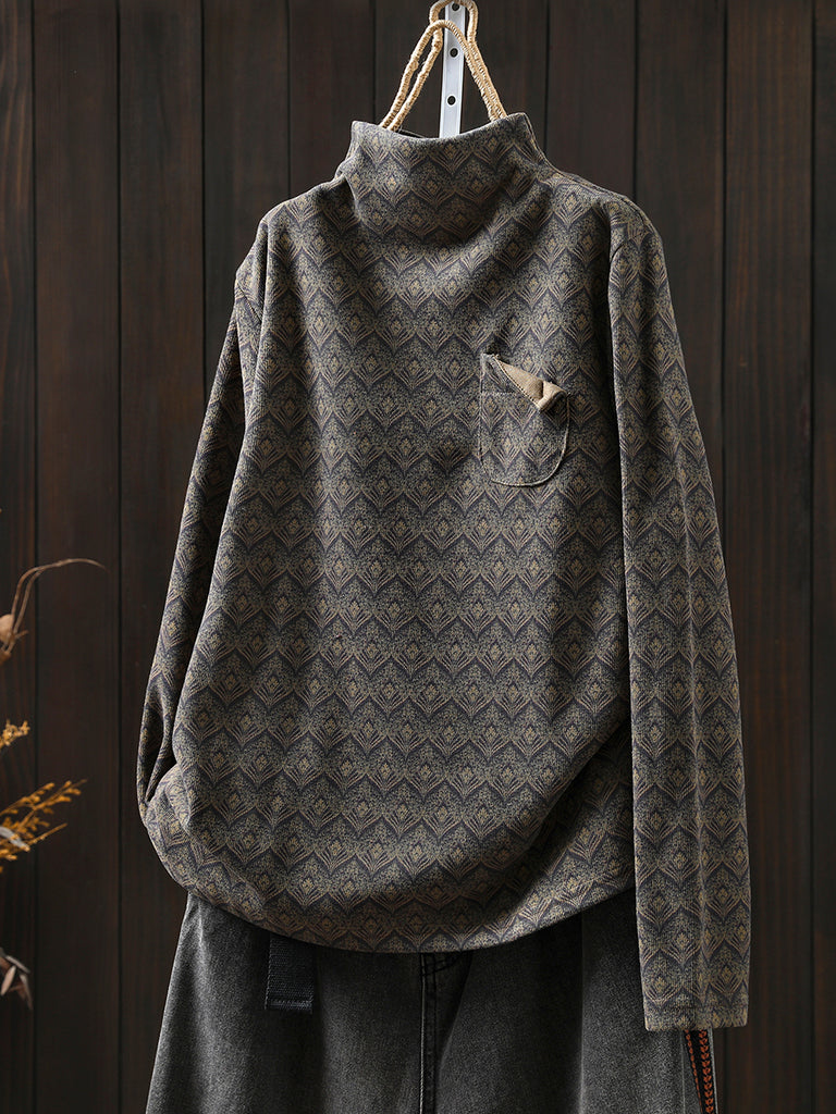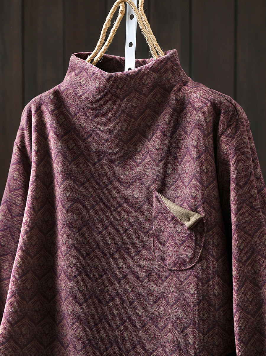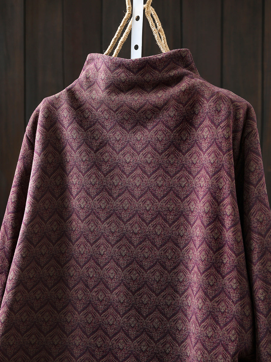 Blusa de algodón de cuello alto a rayas estilo vintage otoñal para mujer