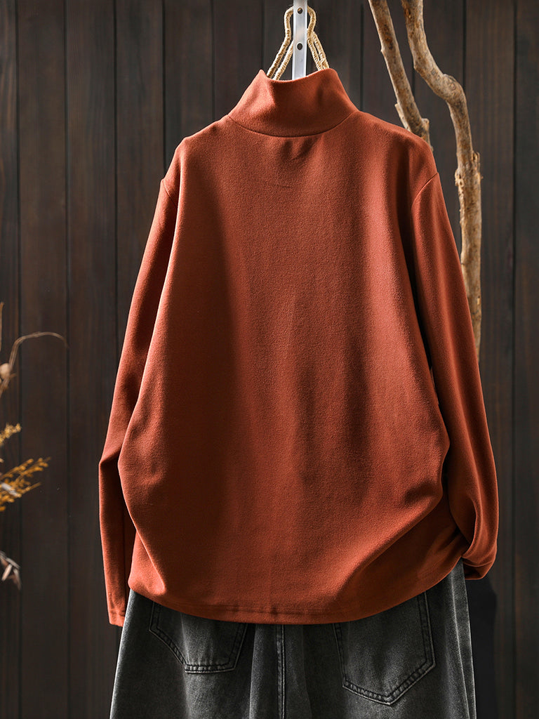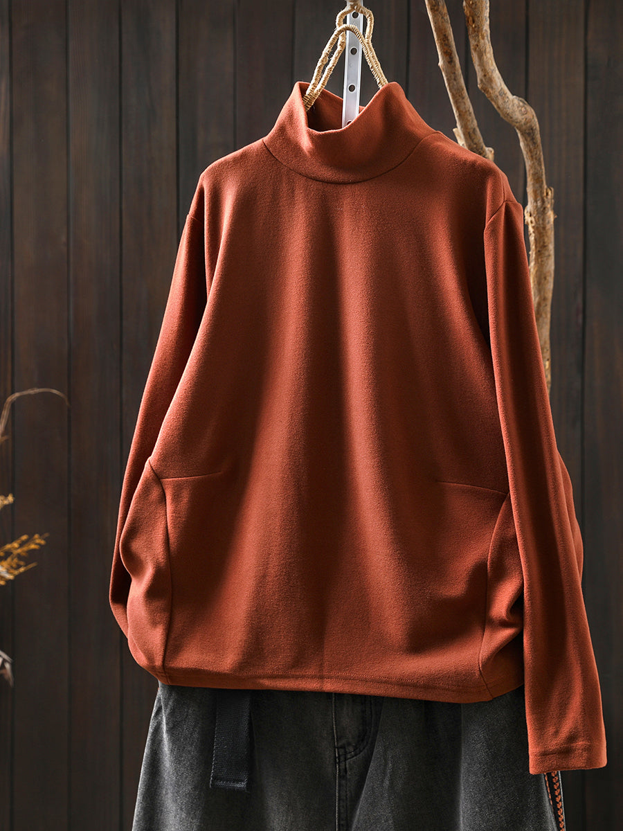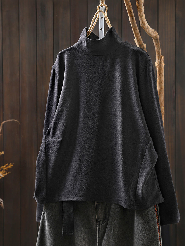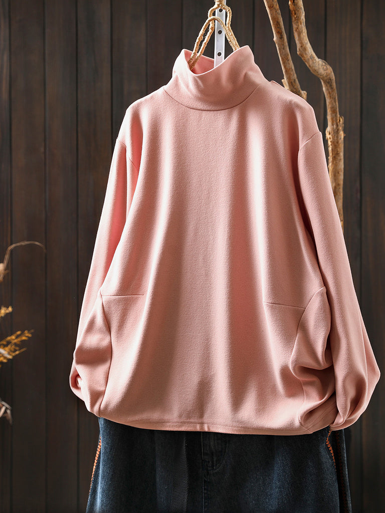 Blusa de algodón de cuello alto de color liso para mujer, estilo casual otoñal