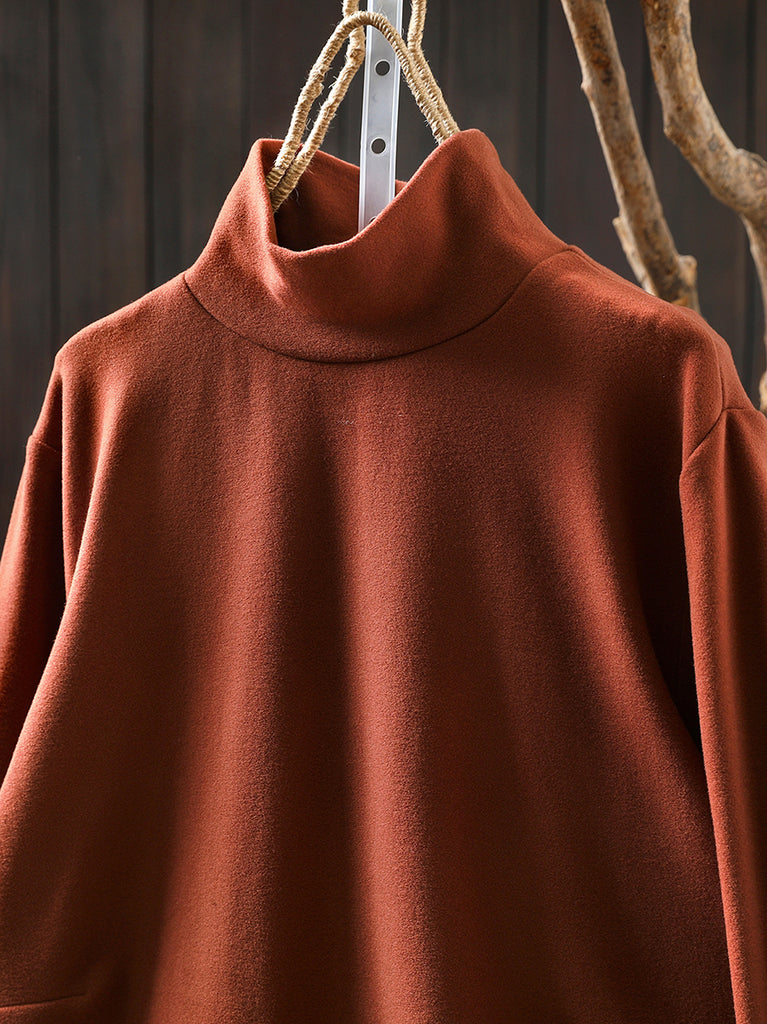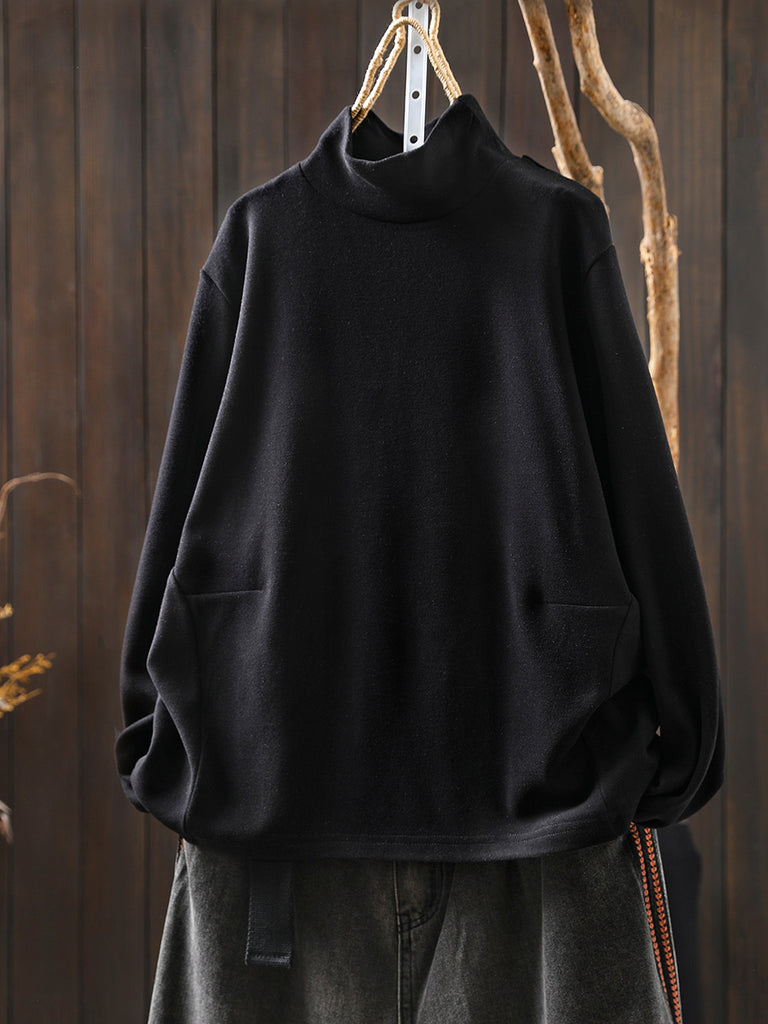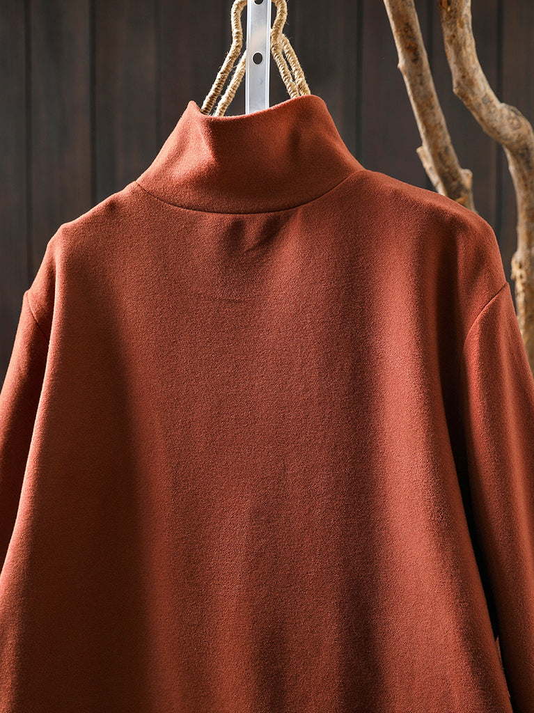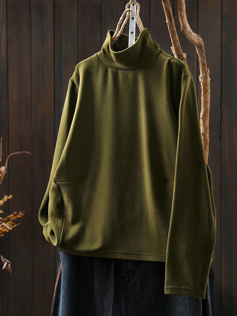 Blusa de algodón de cuello alto de color liso para mujer, estilo casual otoñal