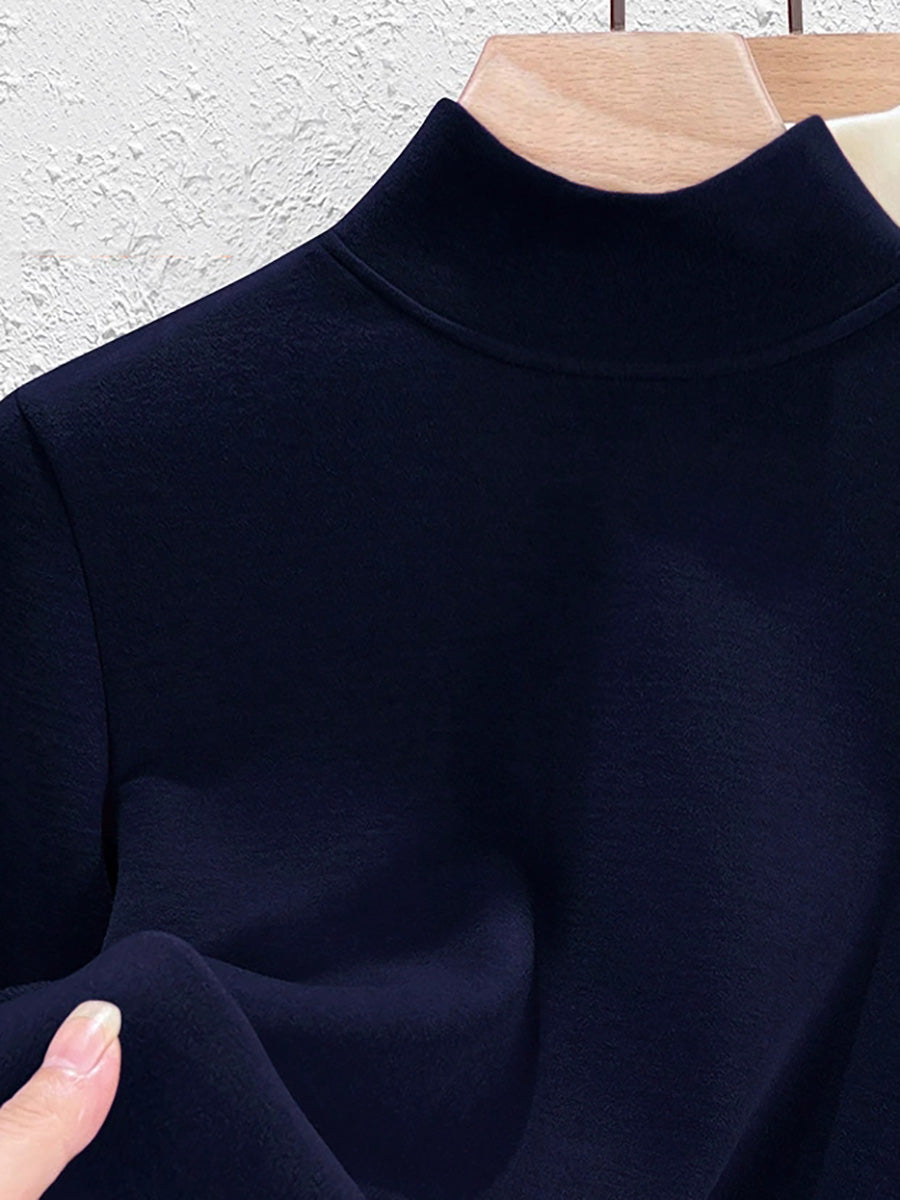 Blusa básica de cuello alto con forro polar para mujer, estilo casual de otoño.