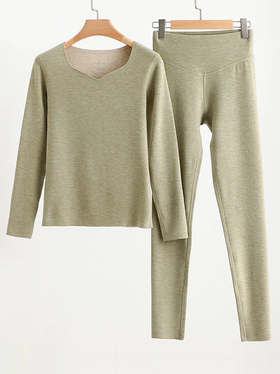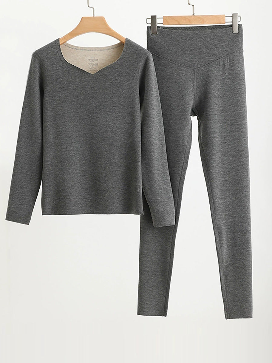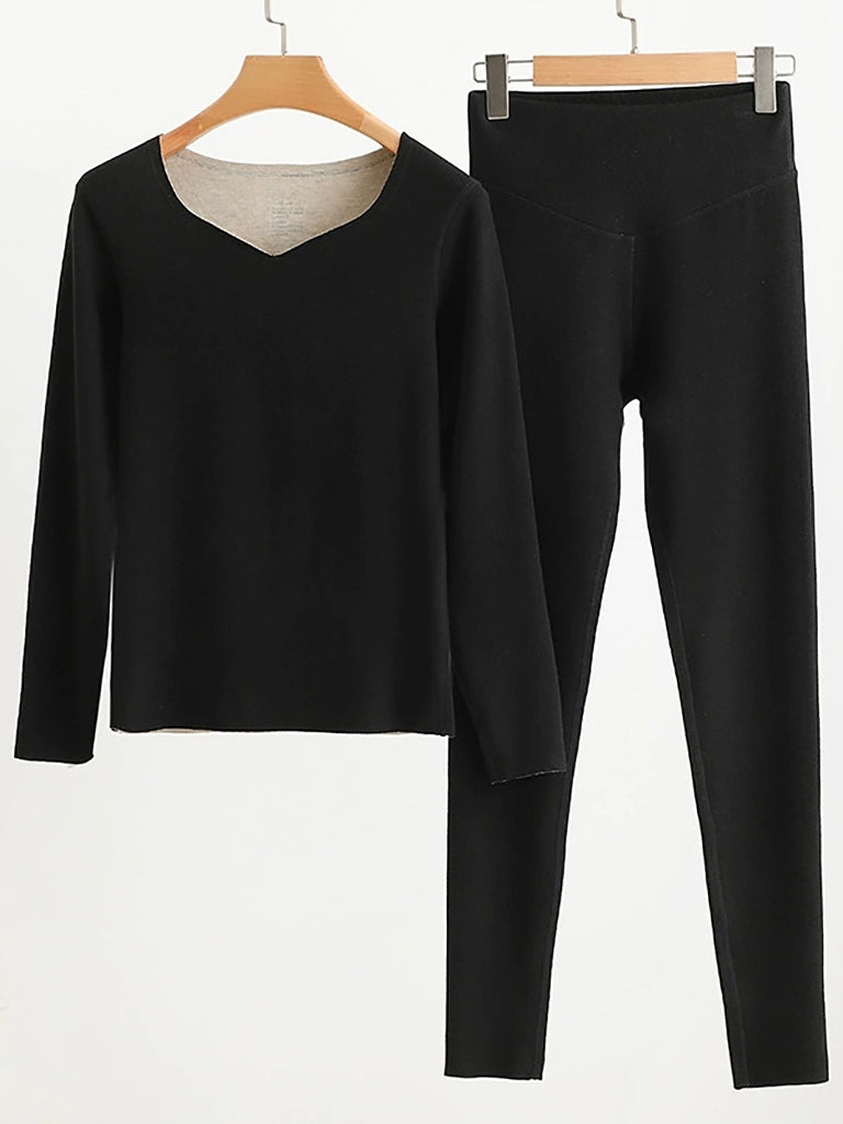 Conjunto básico de mujer para otoño, estilo casual, color liso, cuello en V.