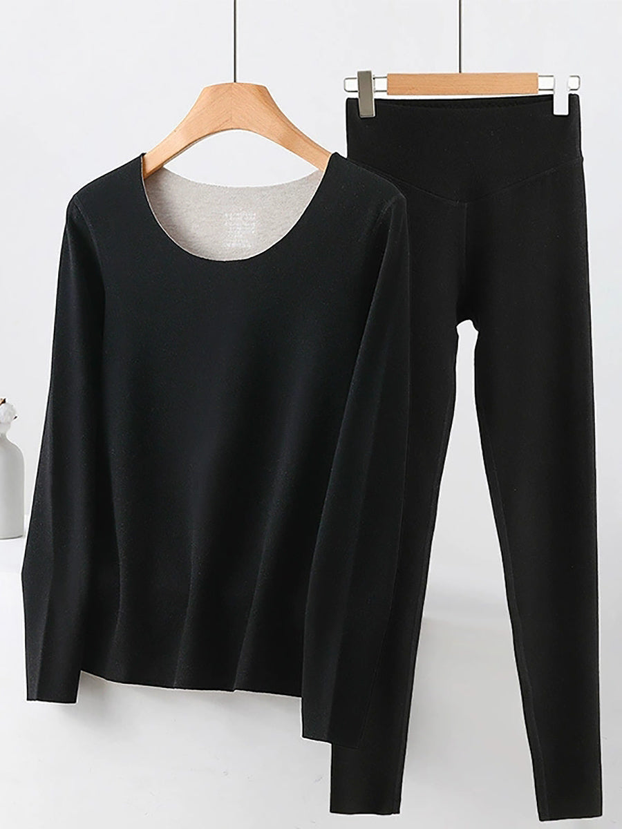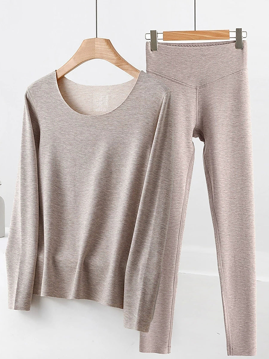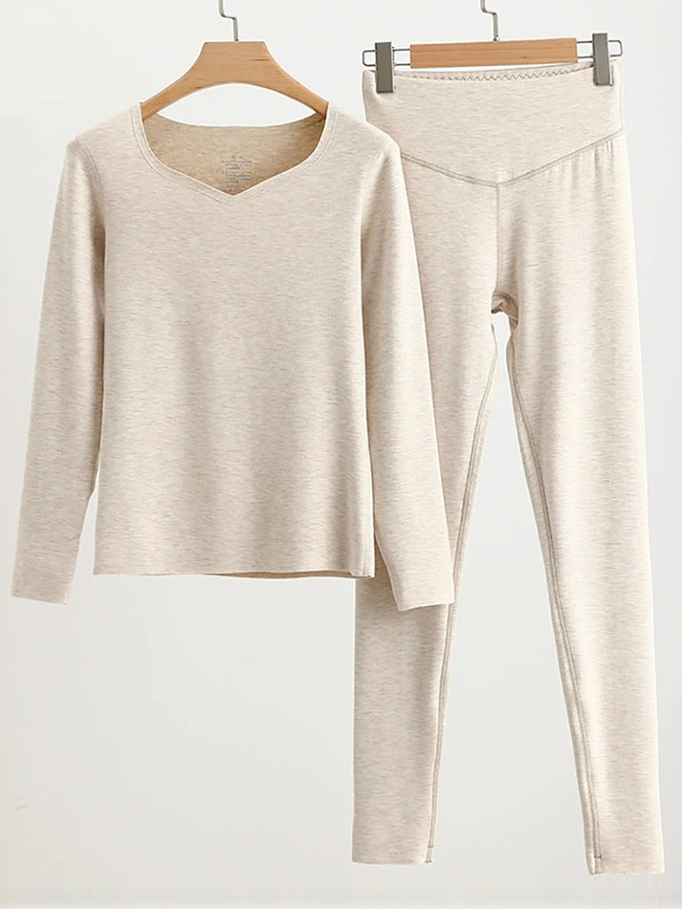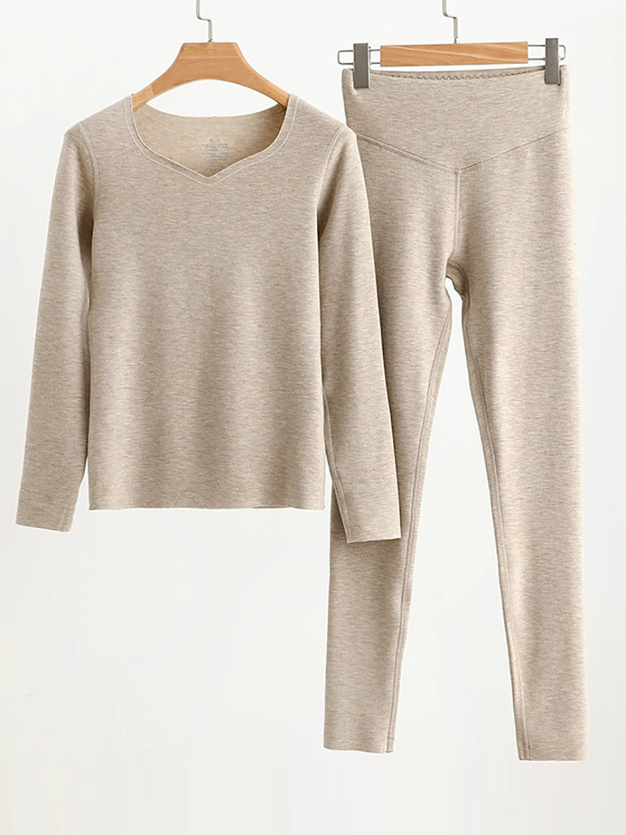 Conjunto básico de mujer para otoño, estilo casual, color liso, cuello en V.