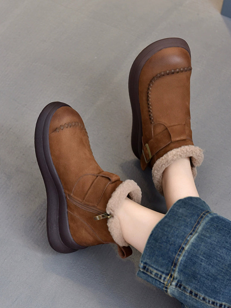 Botas Martin de invierno para mujer, de piel auténtica con forro polar.