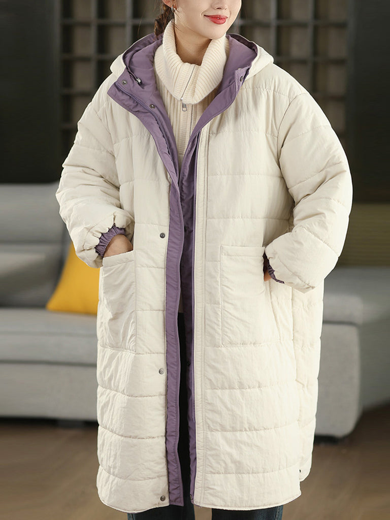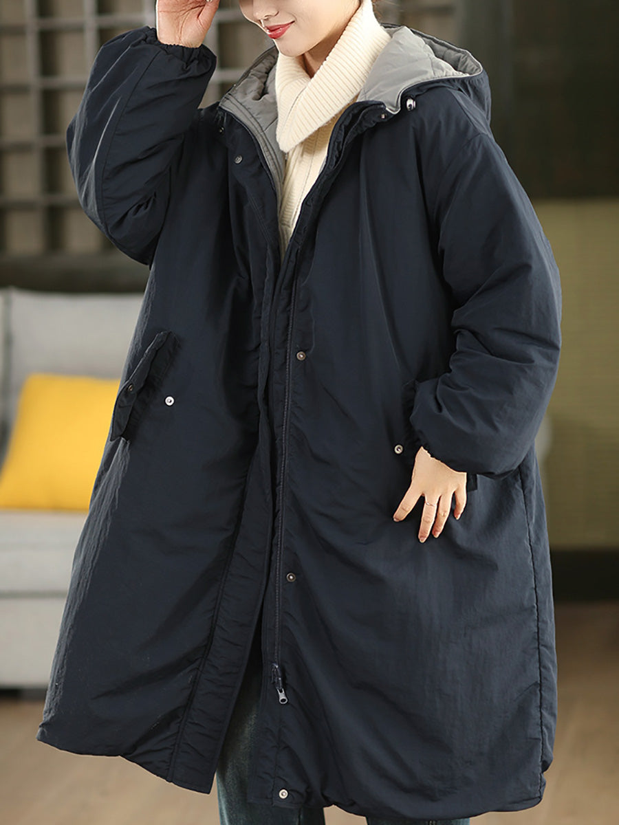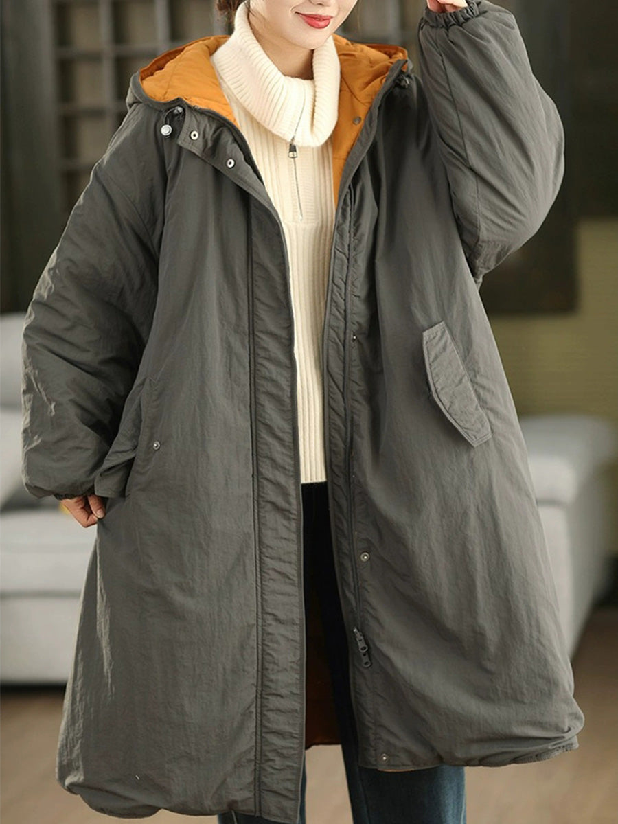 Abrigo con capucha reversible de color liso para mujer, ideal para el invierno.
