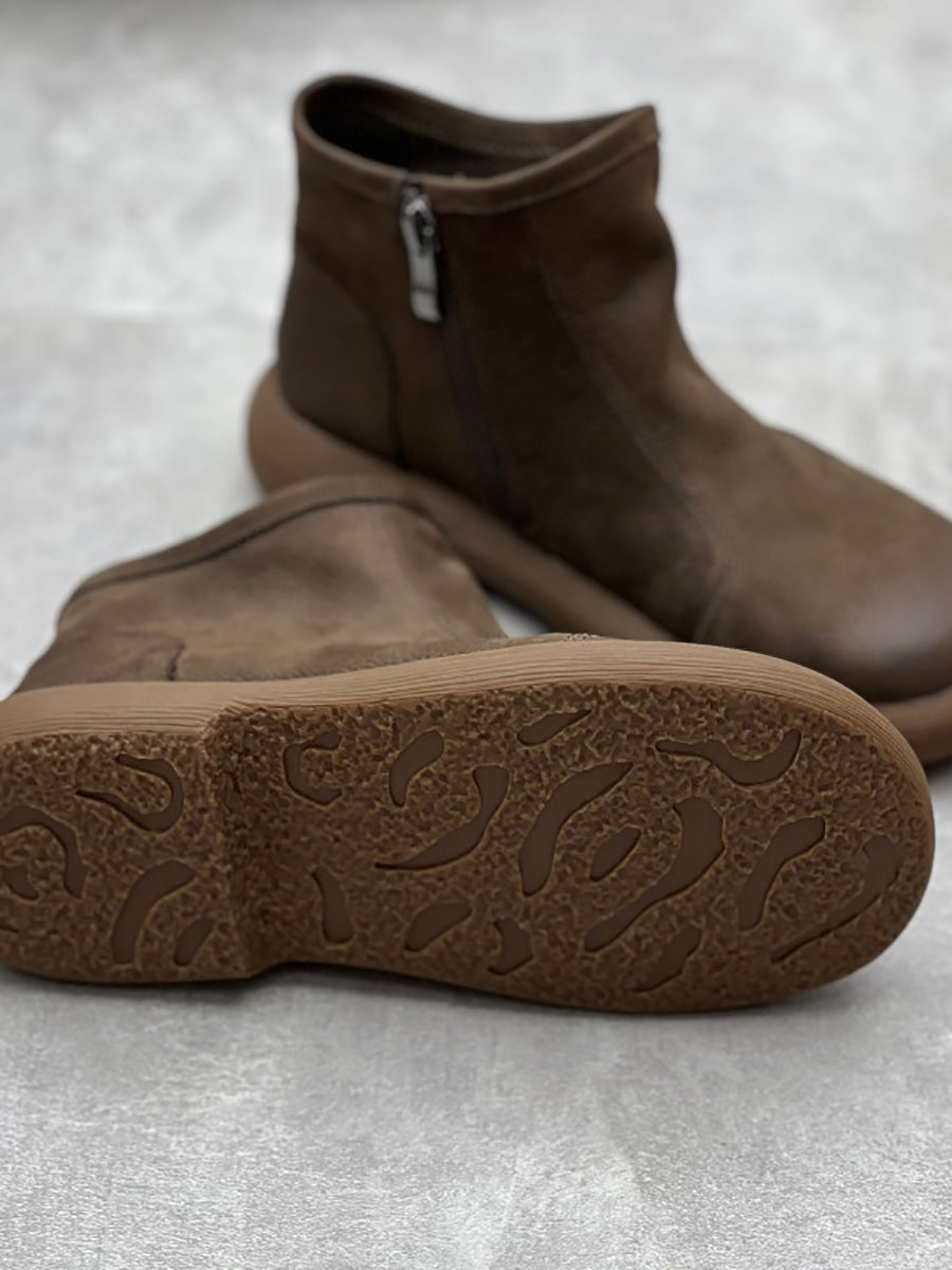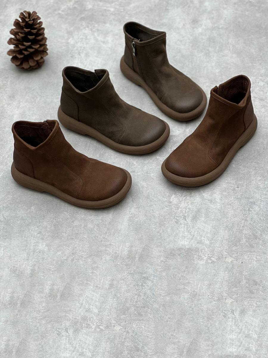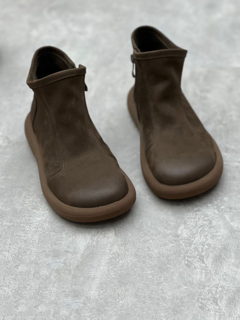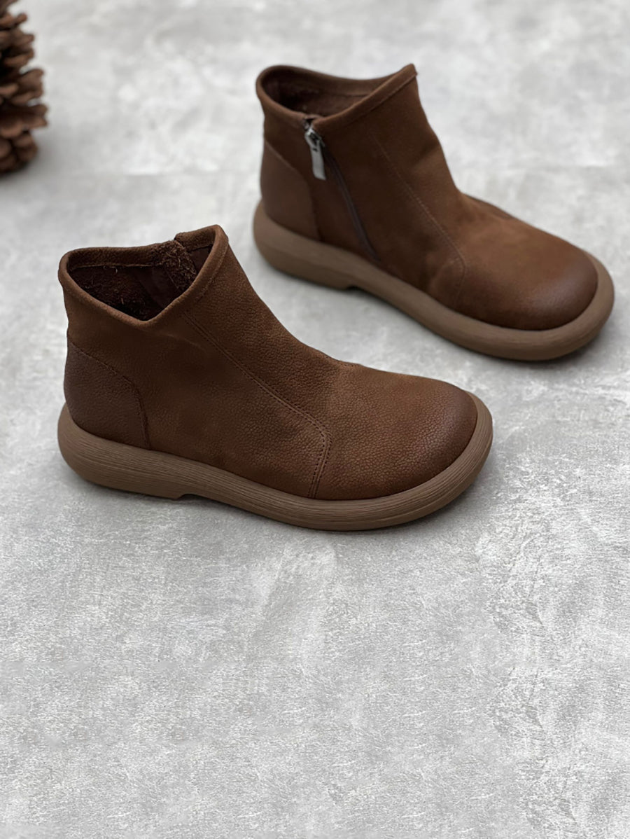 Botas planas con cremallera de cuero suave y liso para mujer para invierno