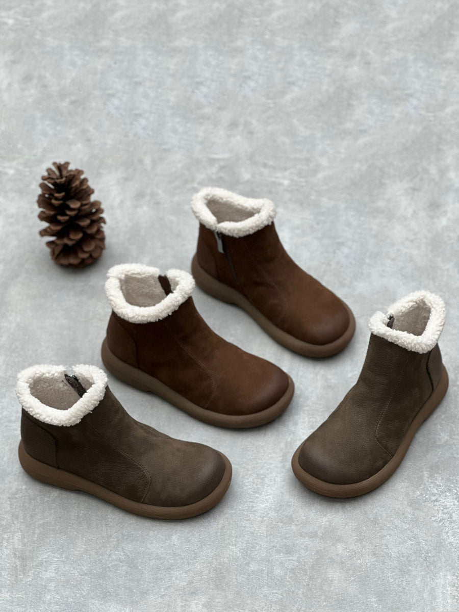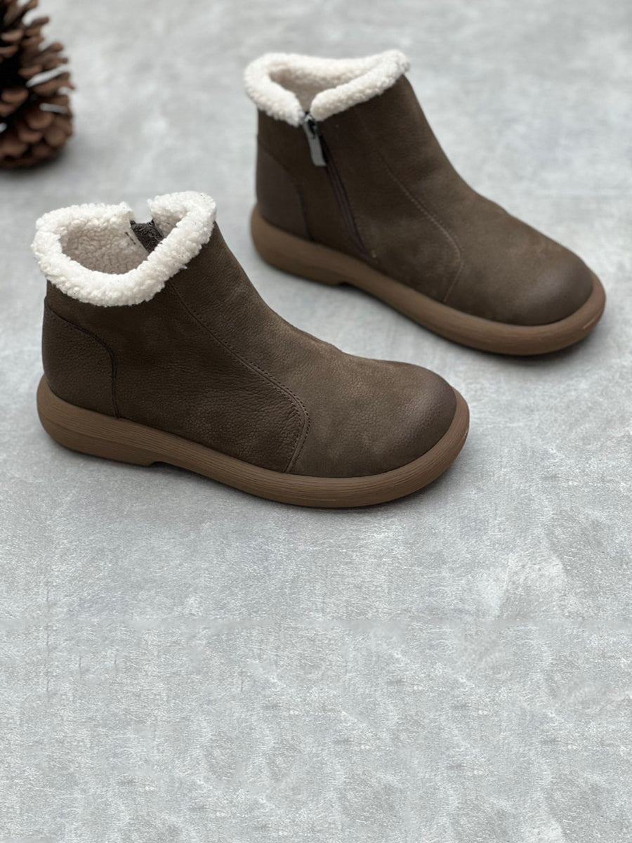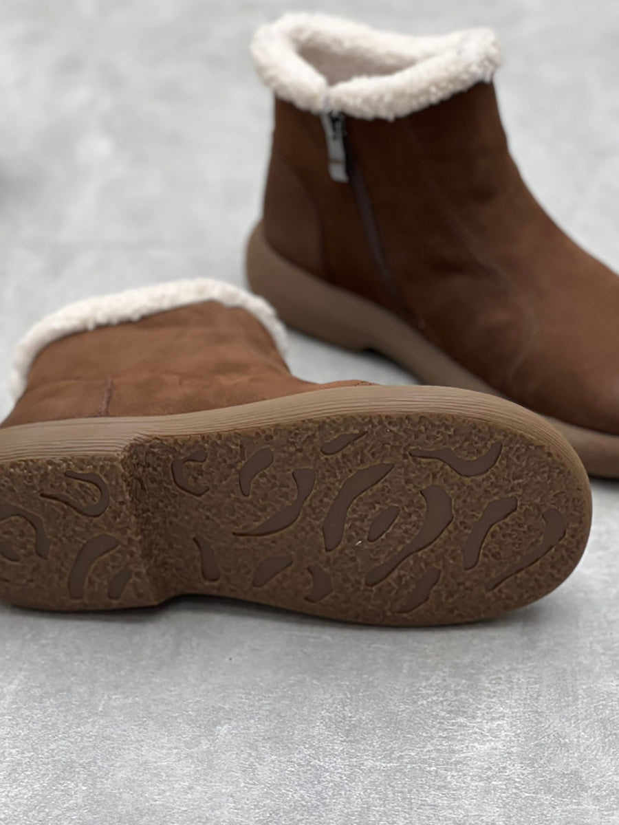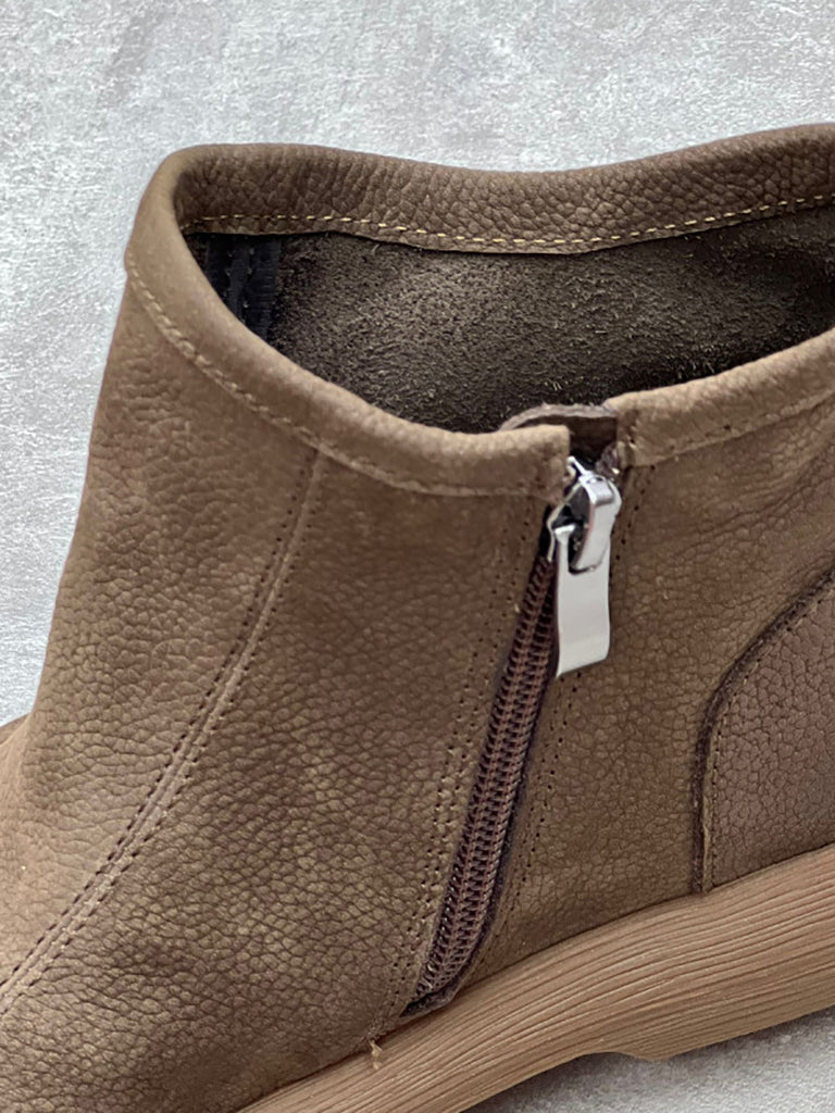 Botas planas con cremallera de cuero suave y liso para mujer para invierno