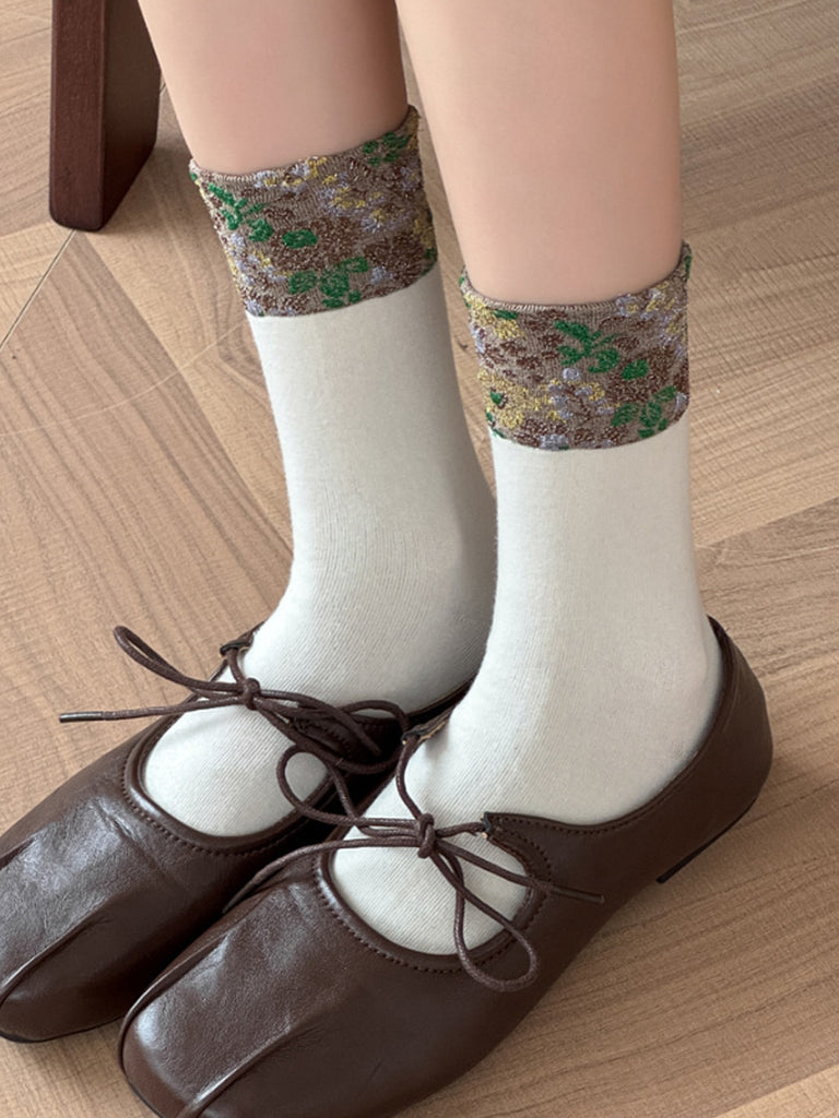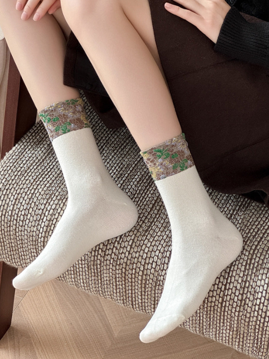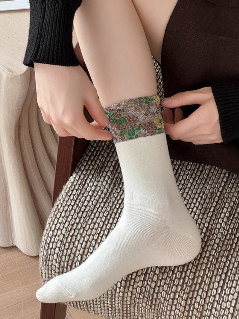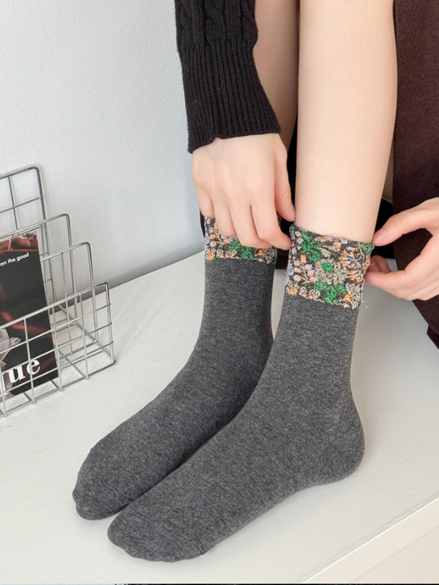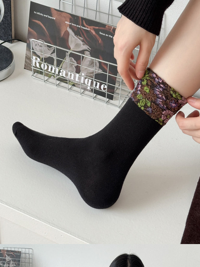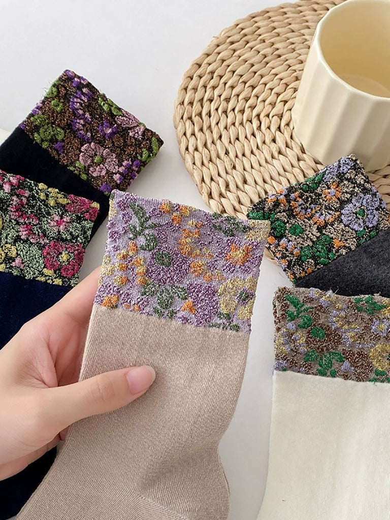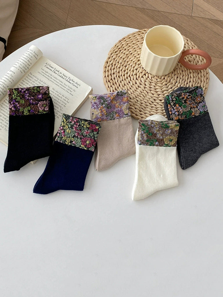 5 pares de calcetines vintage de invierno con estampado floral jacquard para mujer
