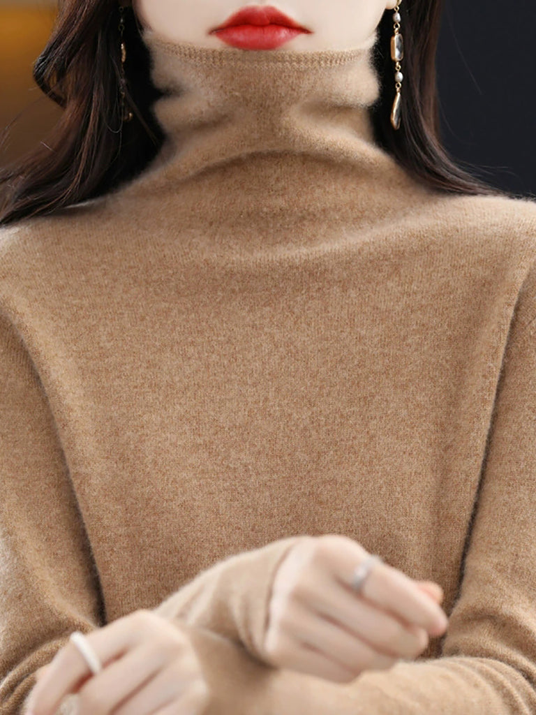 Suéter de cuello alto de color liso para mujer, estilo casual de otoño