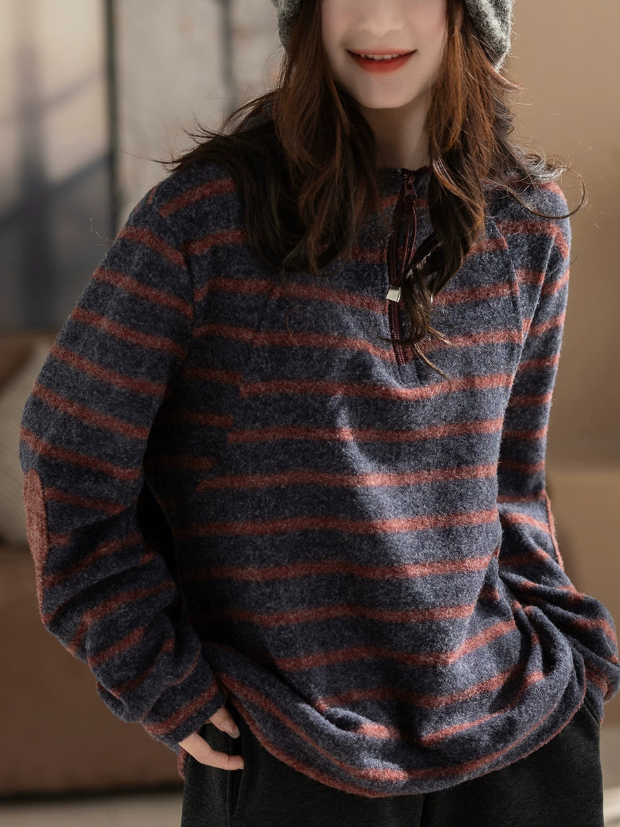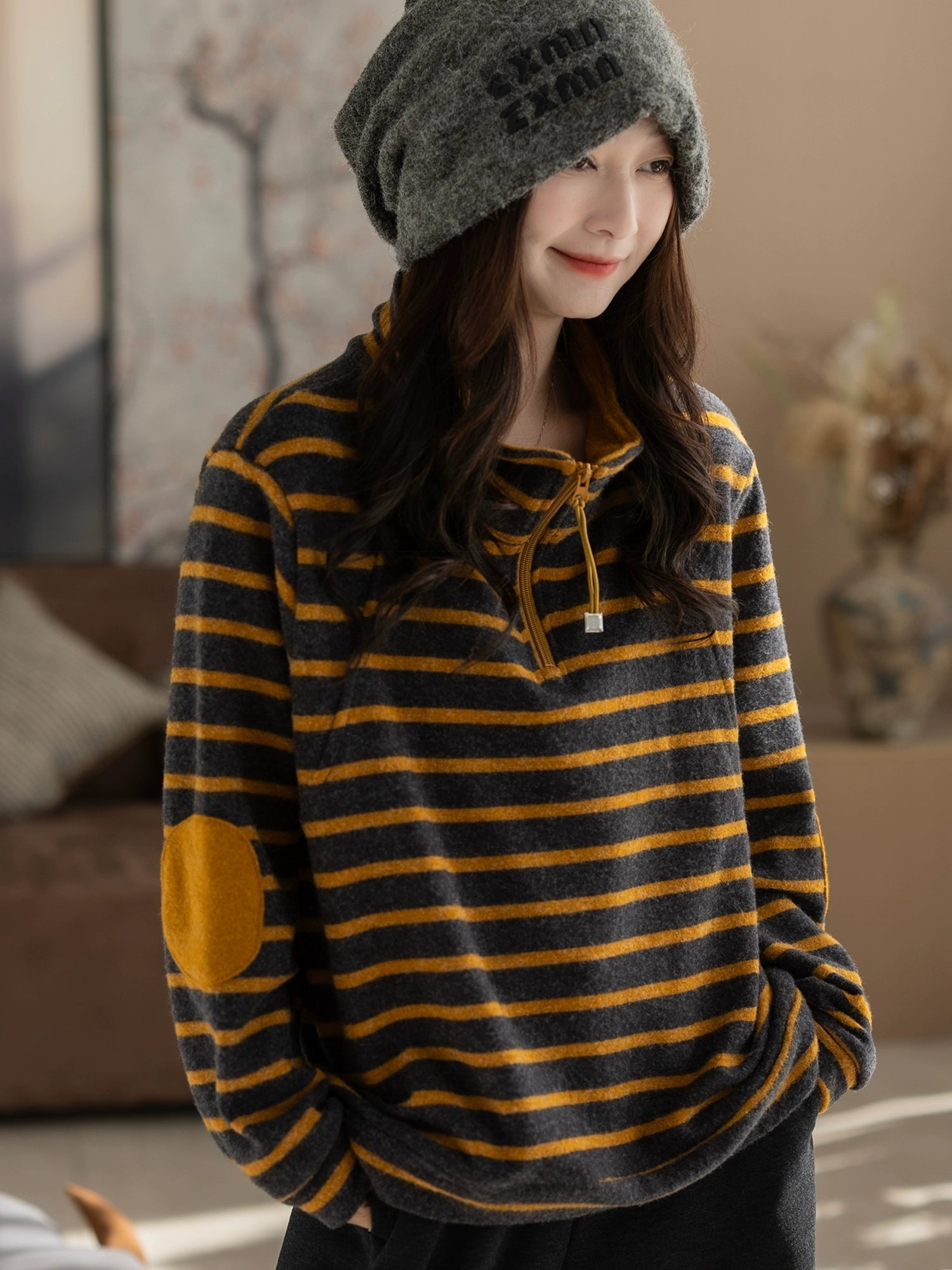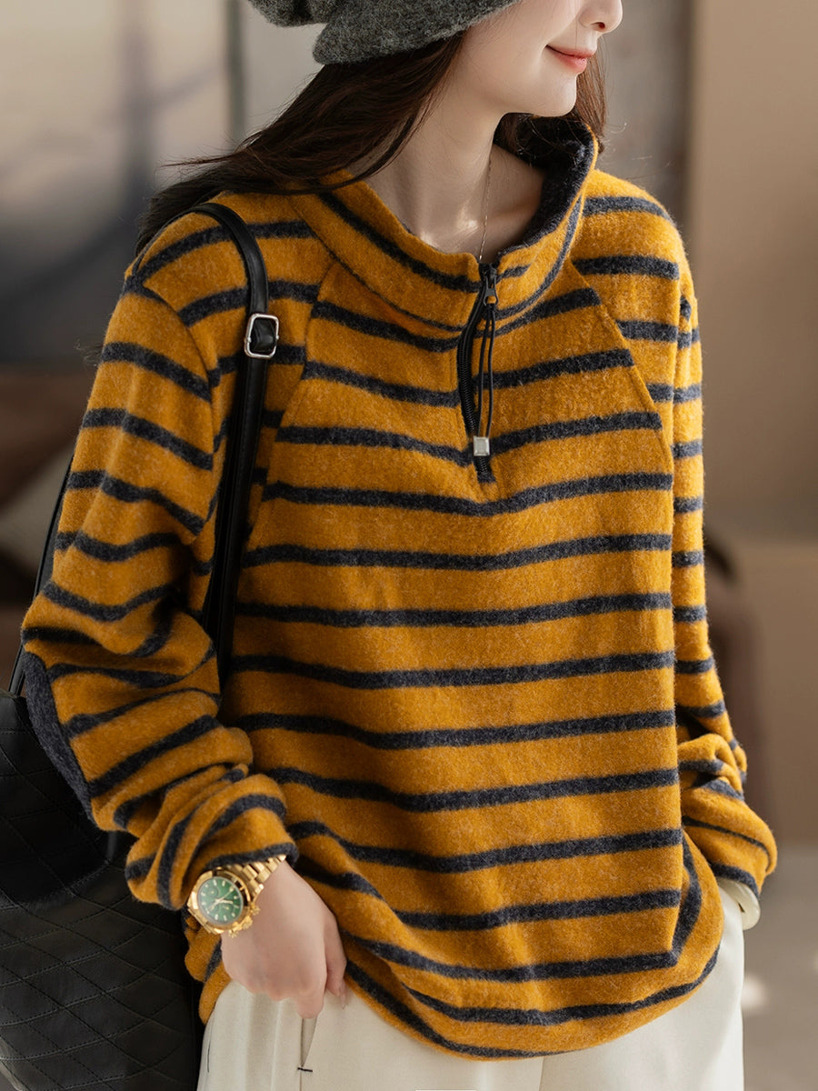 Blusa de mujer estilo vintage de otoño a rayas con cuello alto