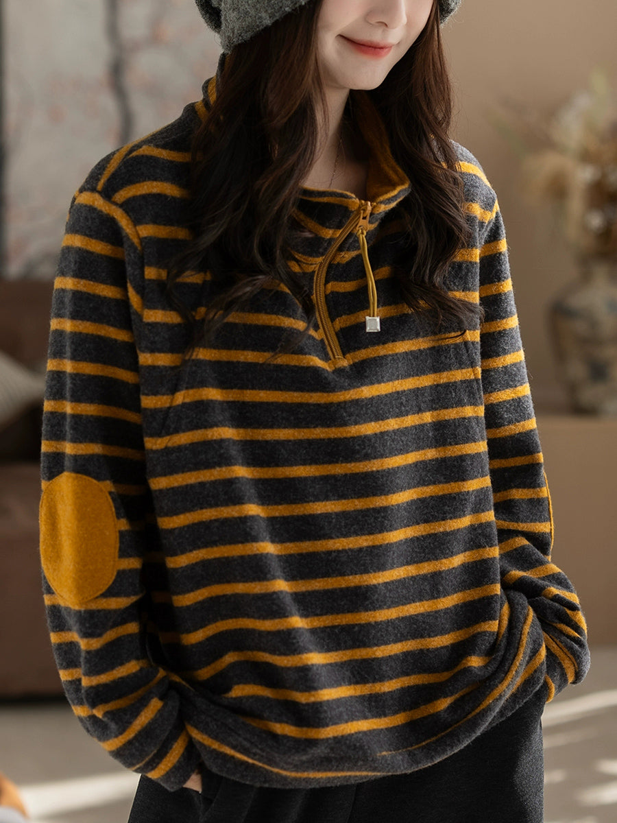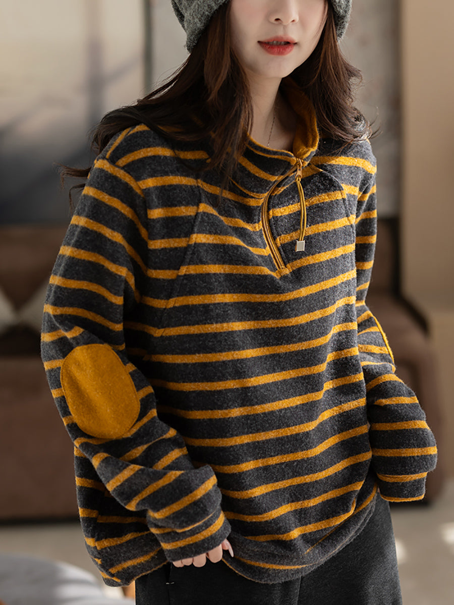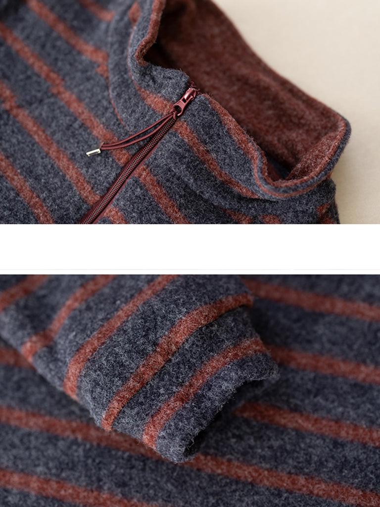 Blusa de mujer estilo vintage de otoño a rayas con cuello alto