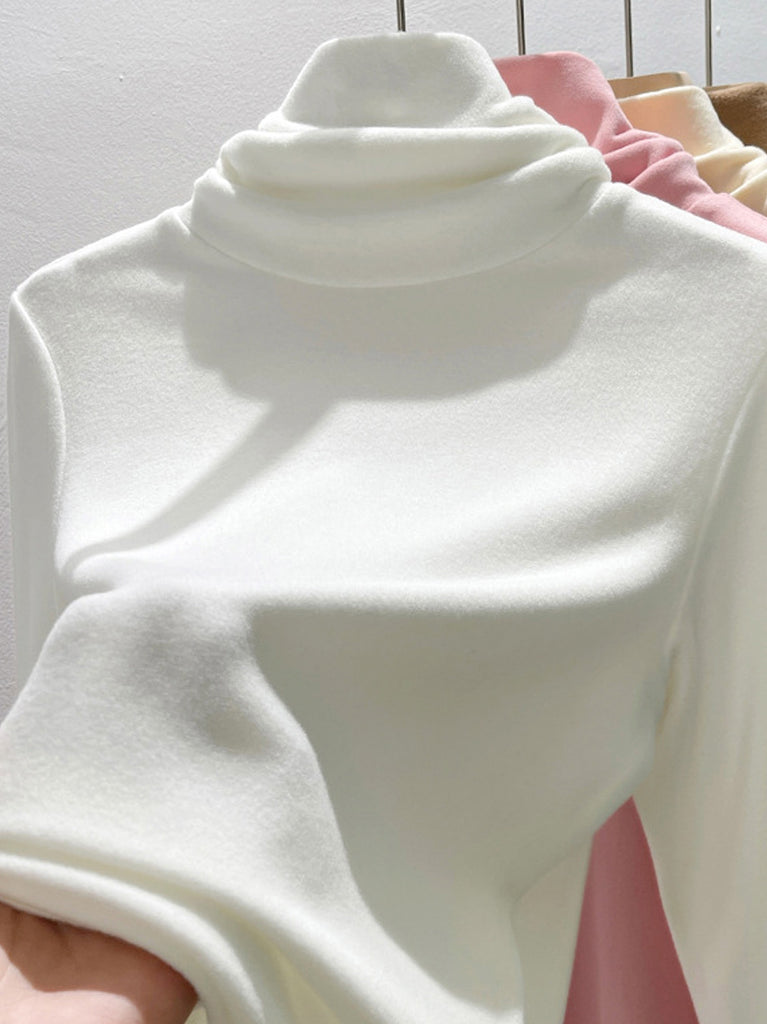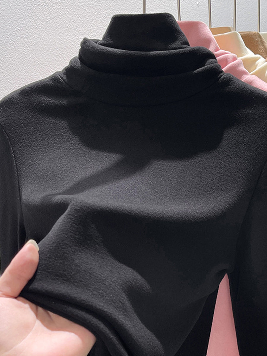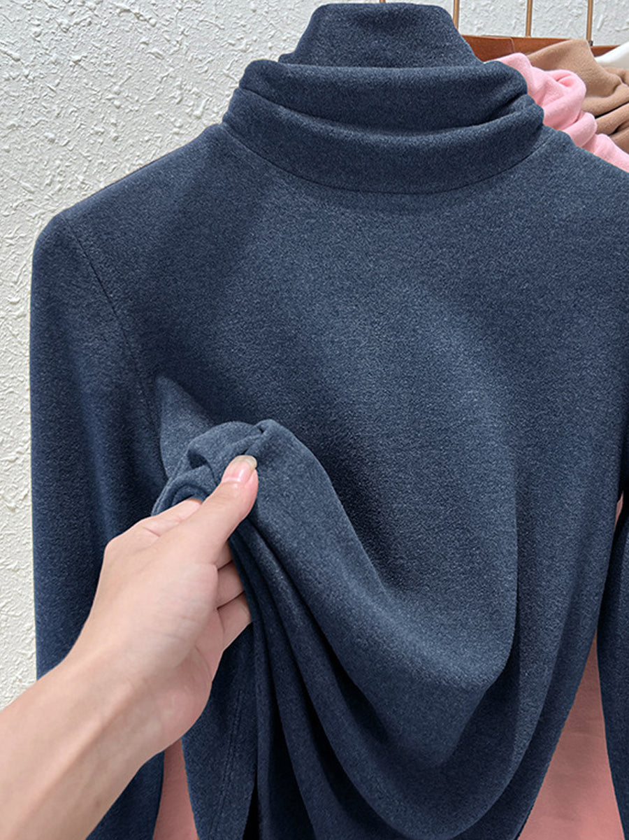 Suéter de cuello alto de color liso para mujer, estilo casual de otoño
