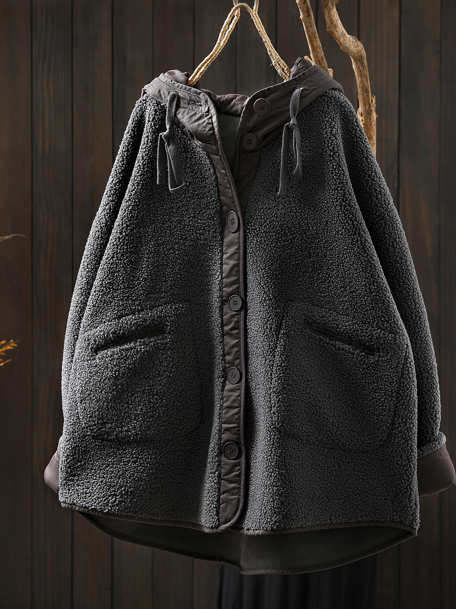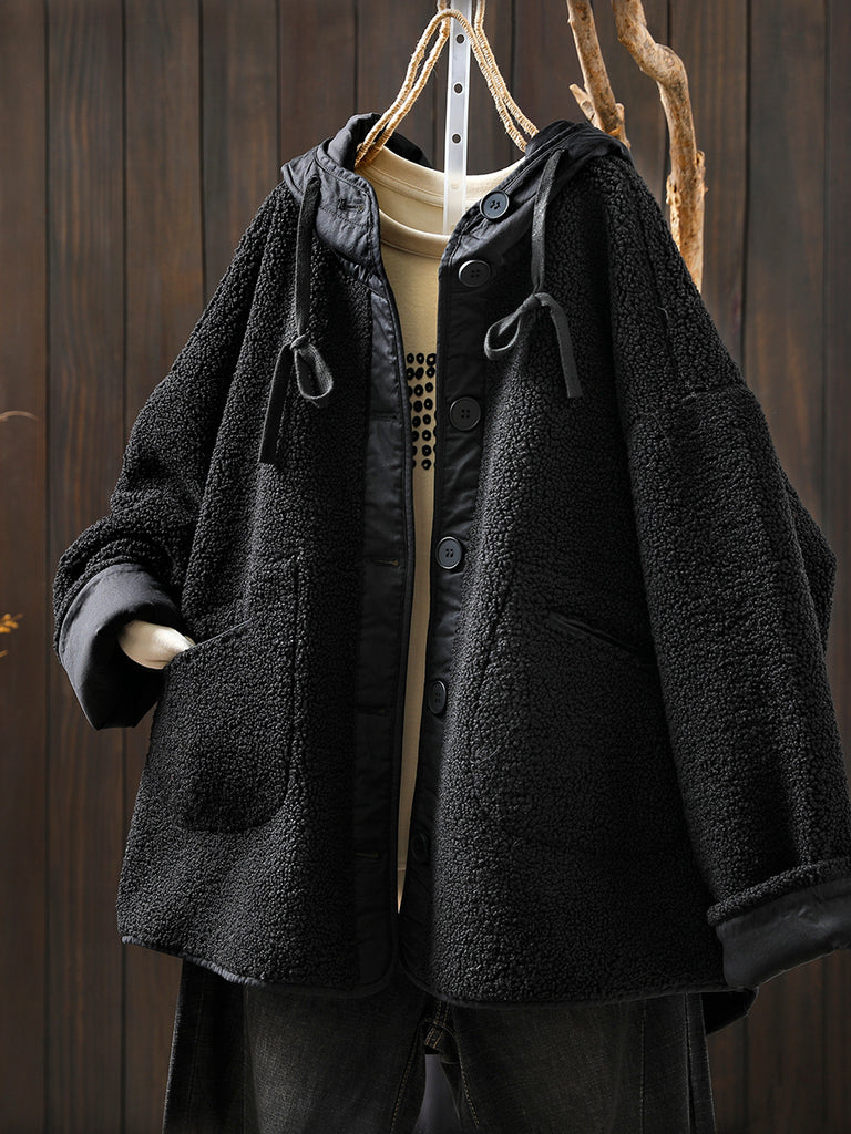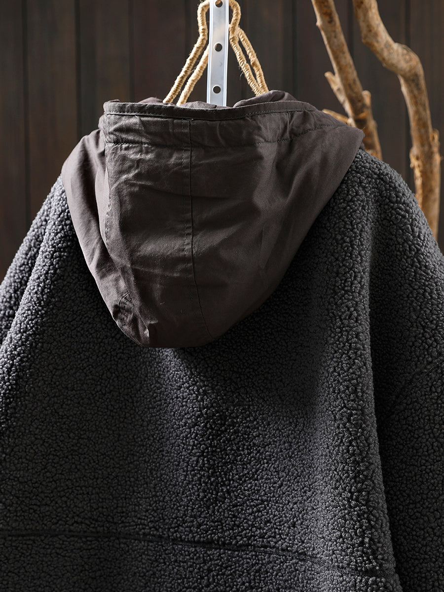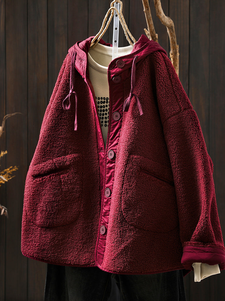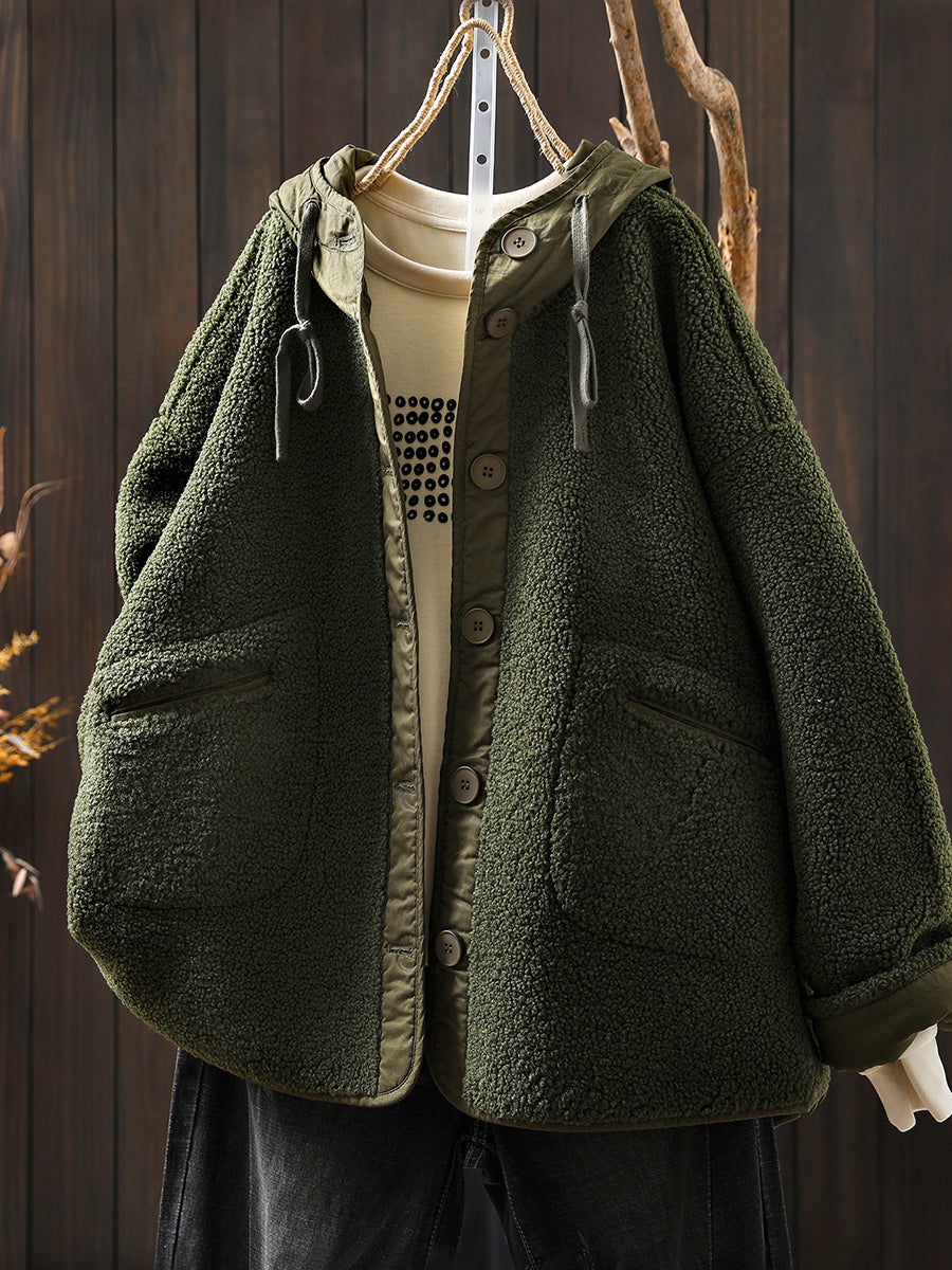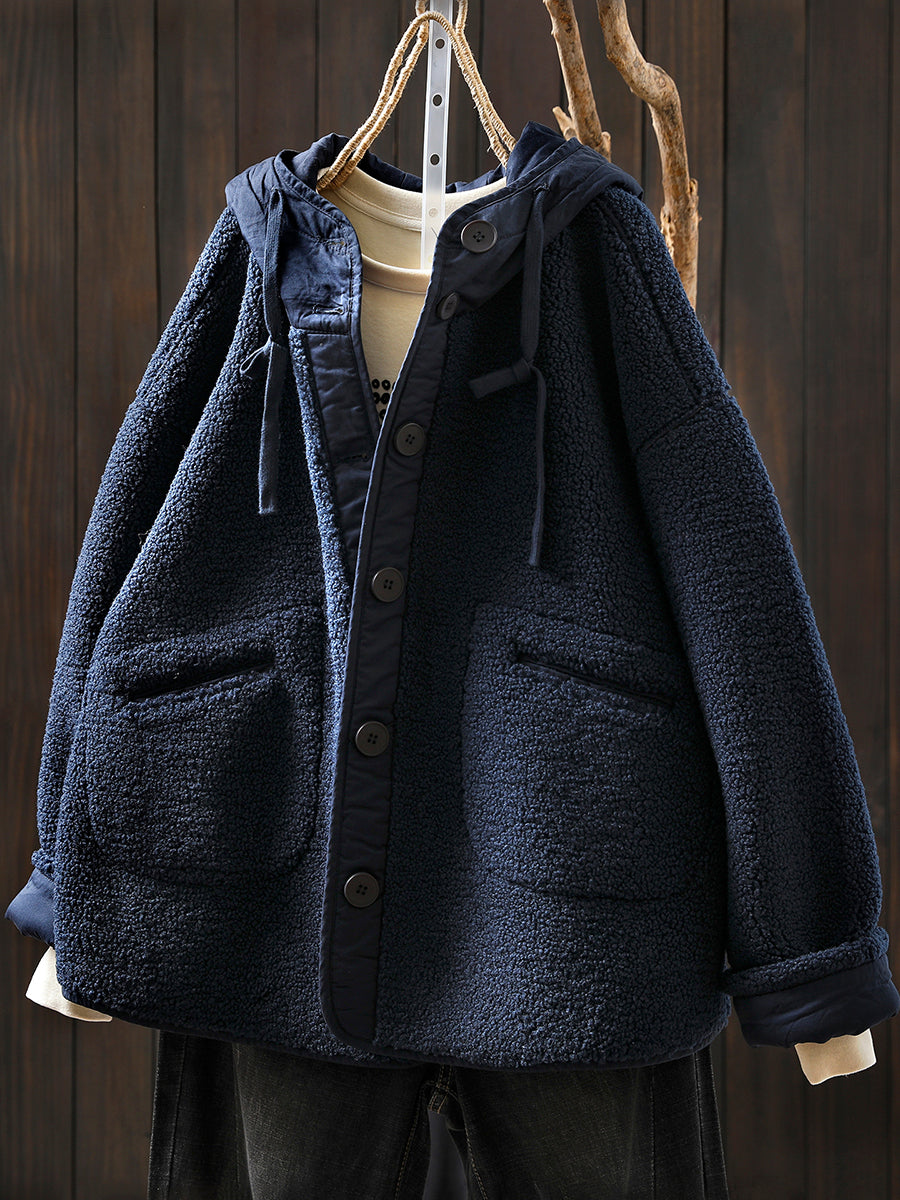Abrigo de invierno informal de color liso con capucha de forro polar para mujer