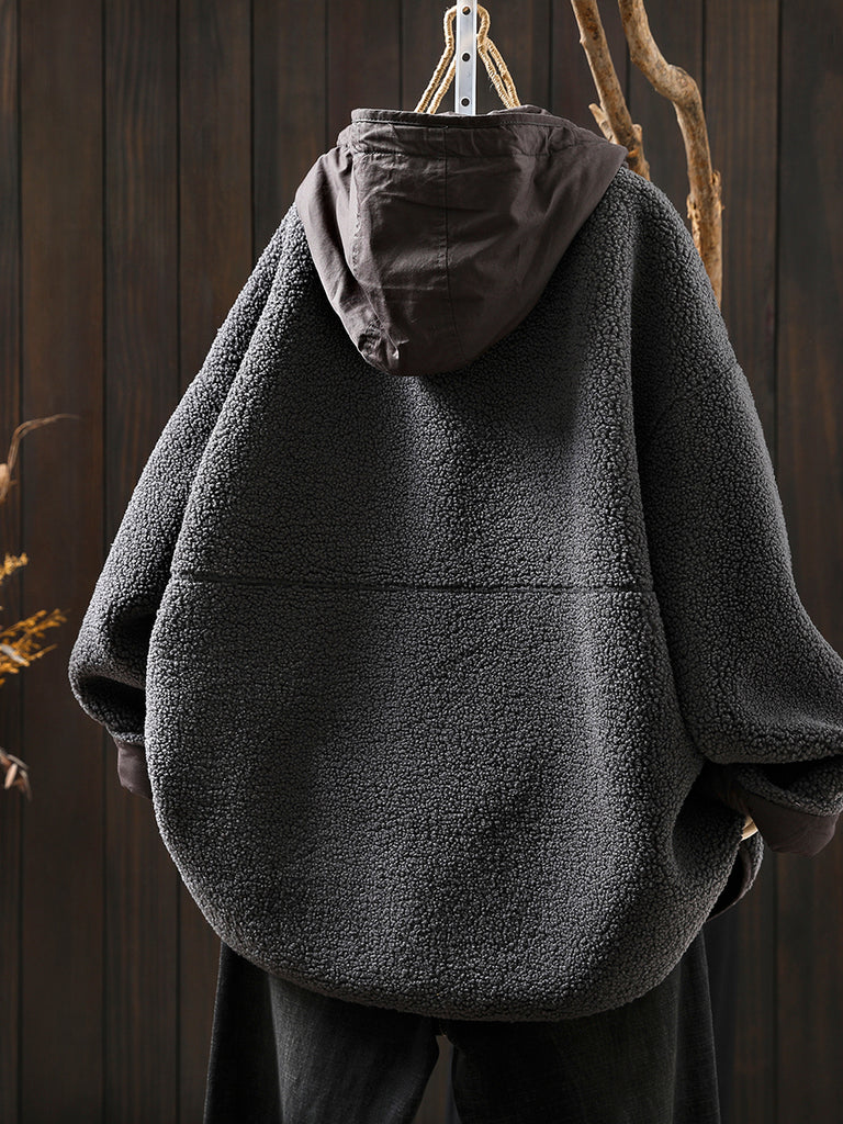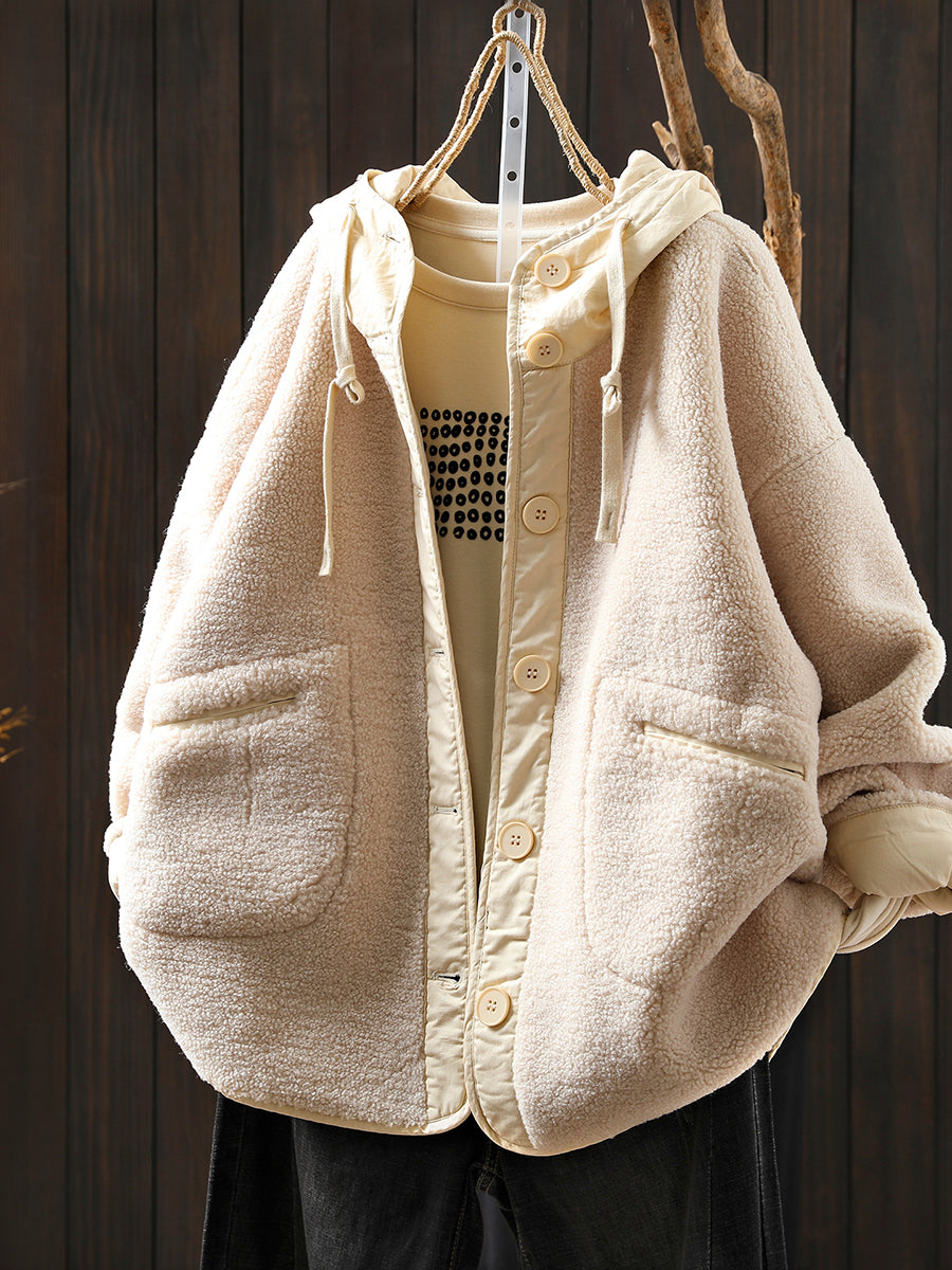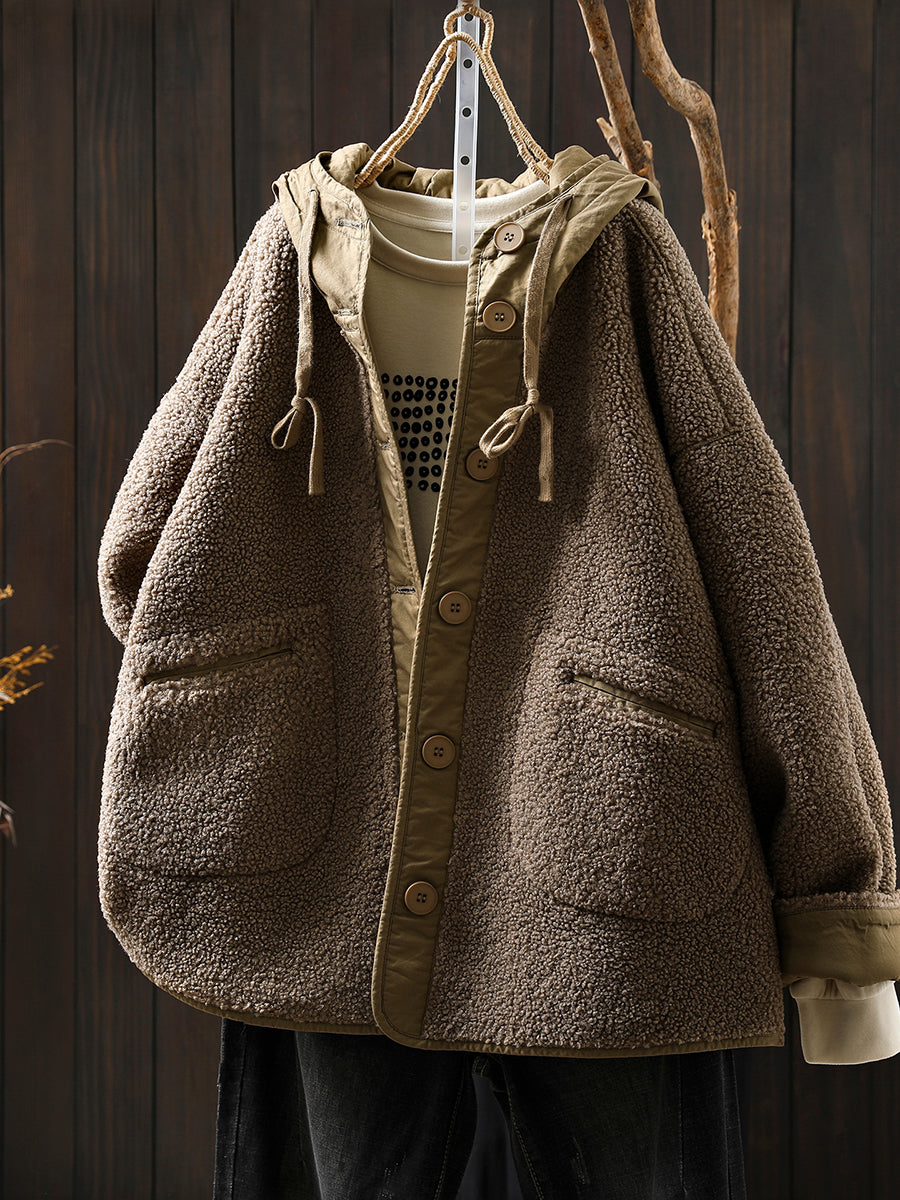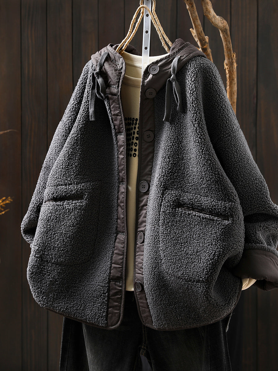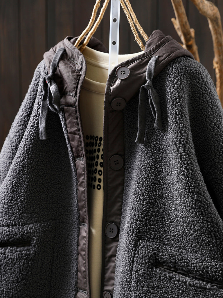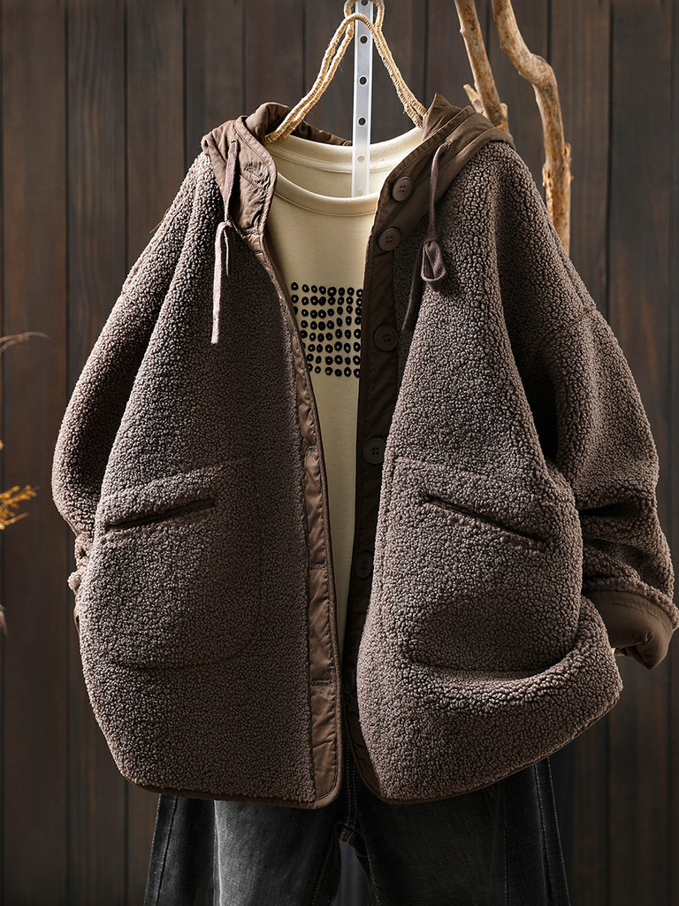 Abrigo de invierno informal de color liso con capucha de forro polar para mujer