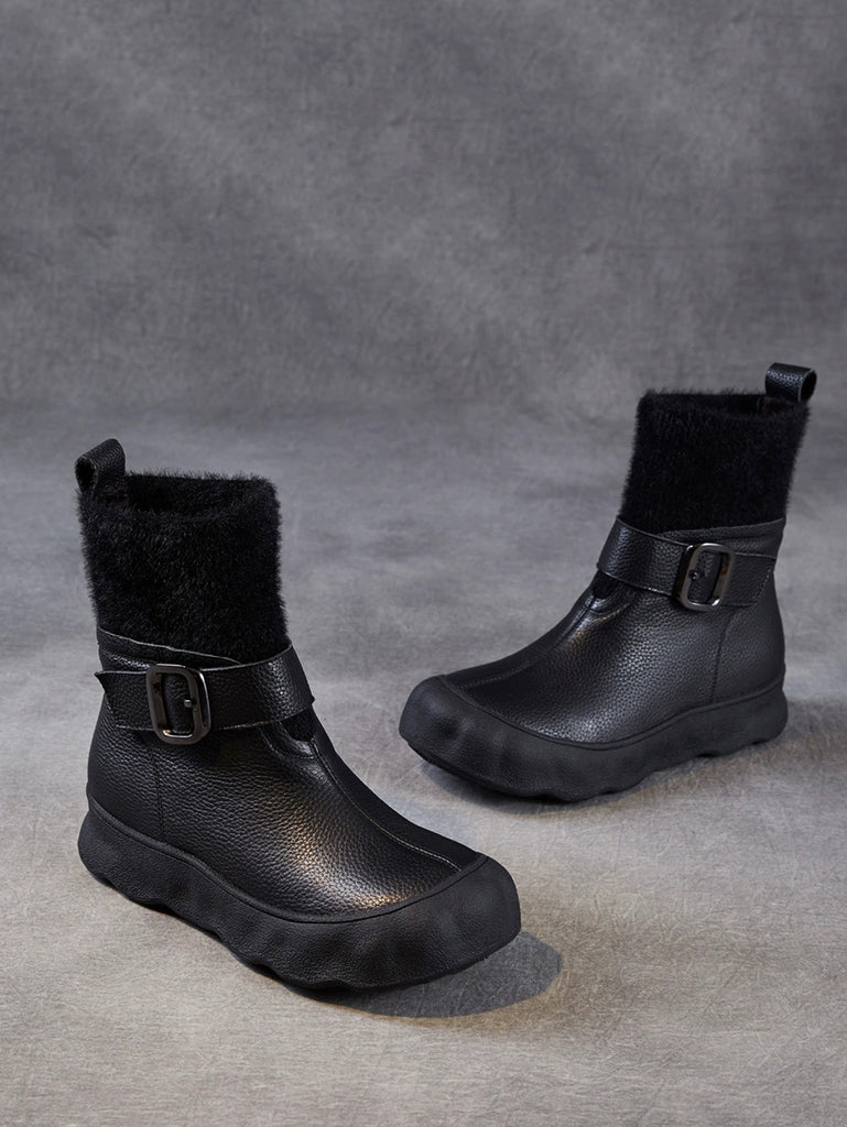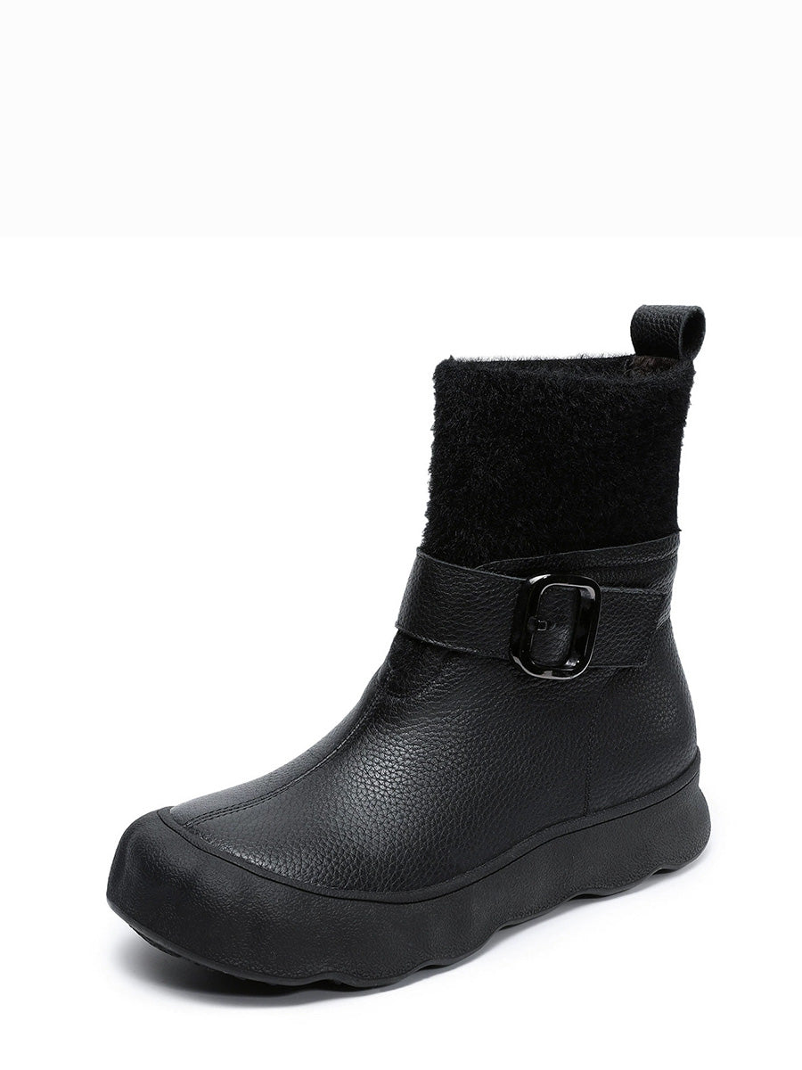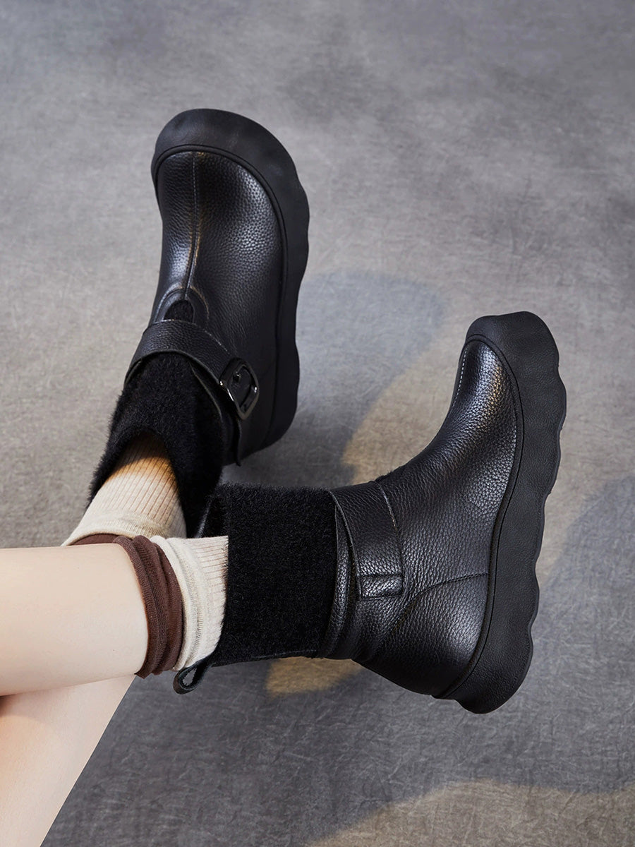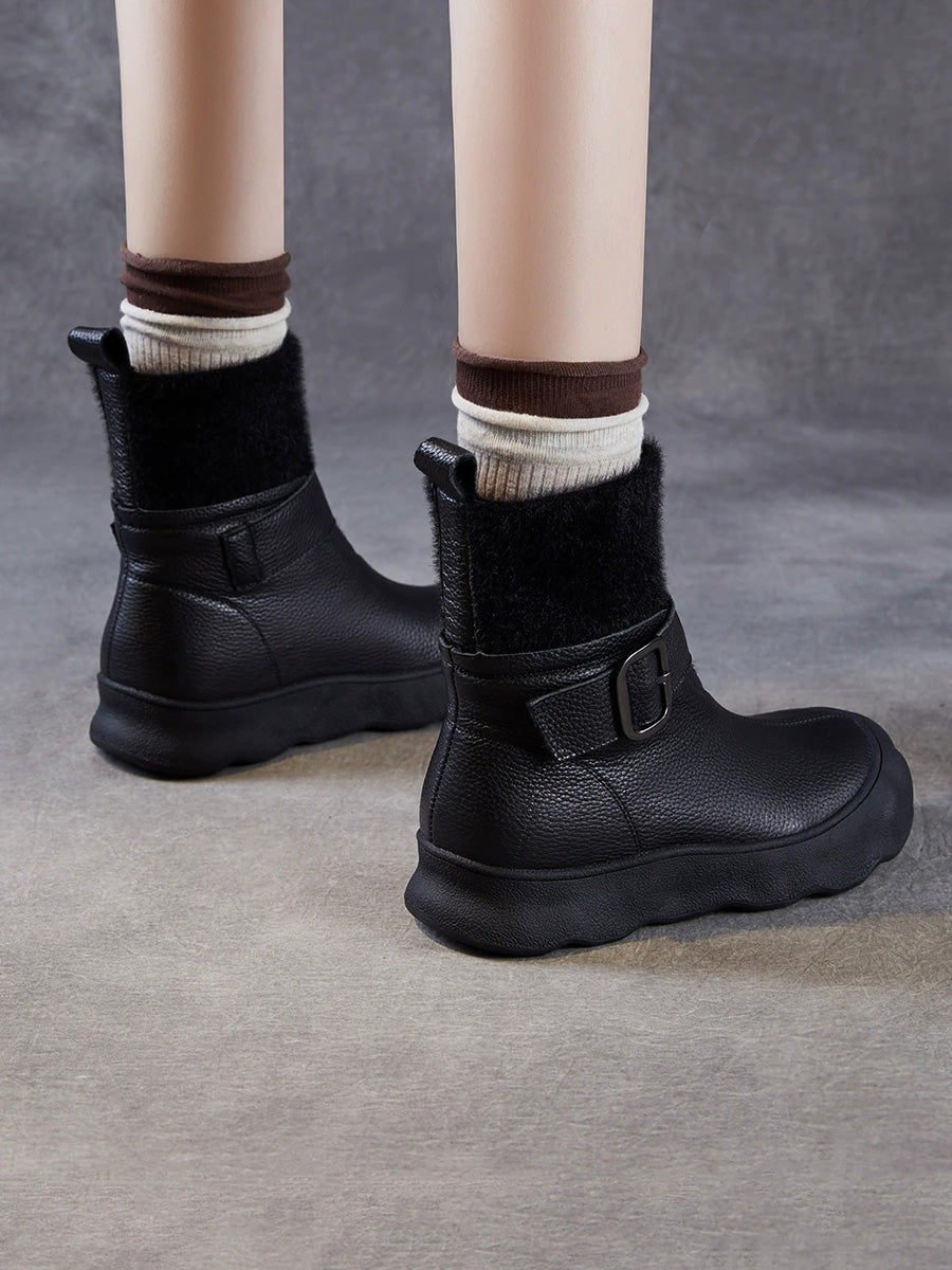 Botas de invierno para mujer de piel auténtica con forro polar y detalles de borreguillo.