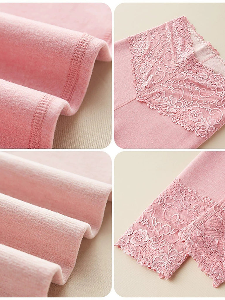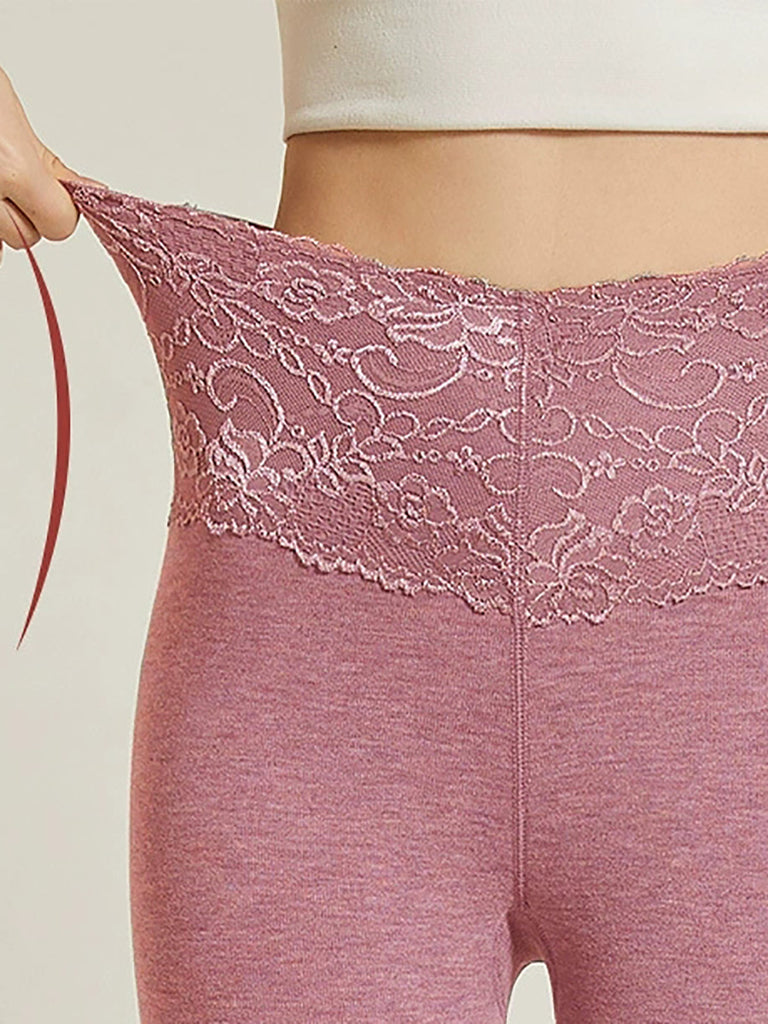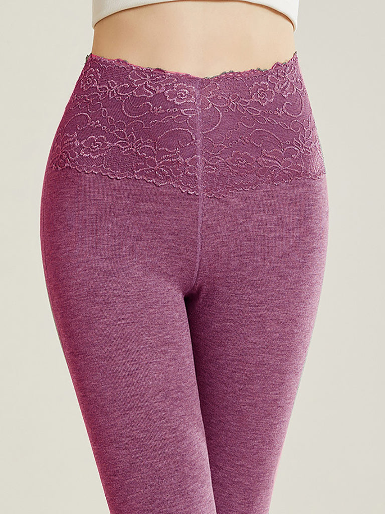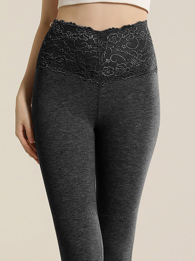 Leggings de encaje de cintura alta de color liso para mujer, ideales para el invierno.