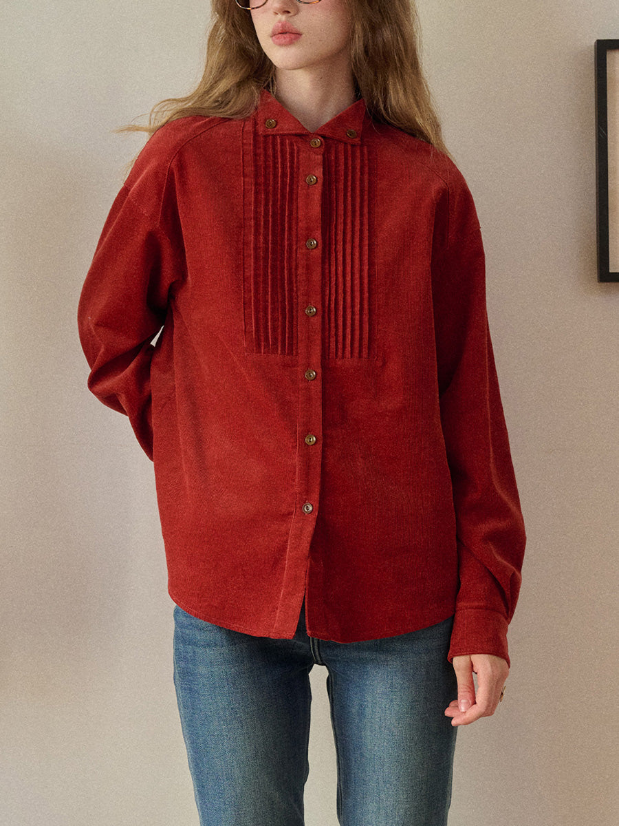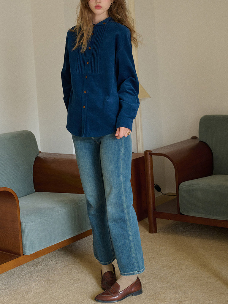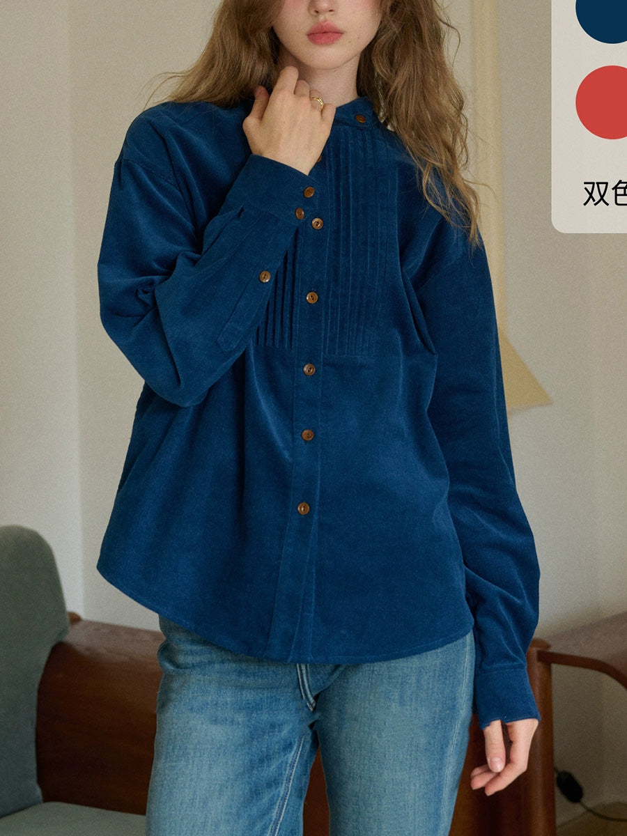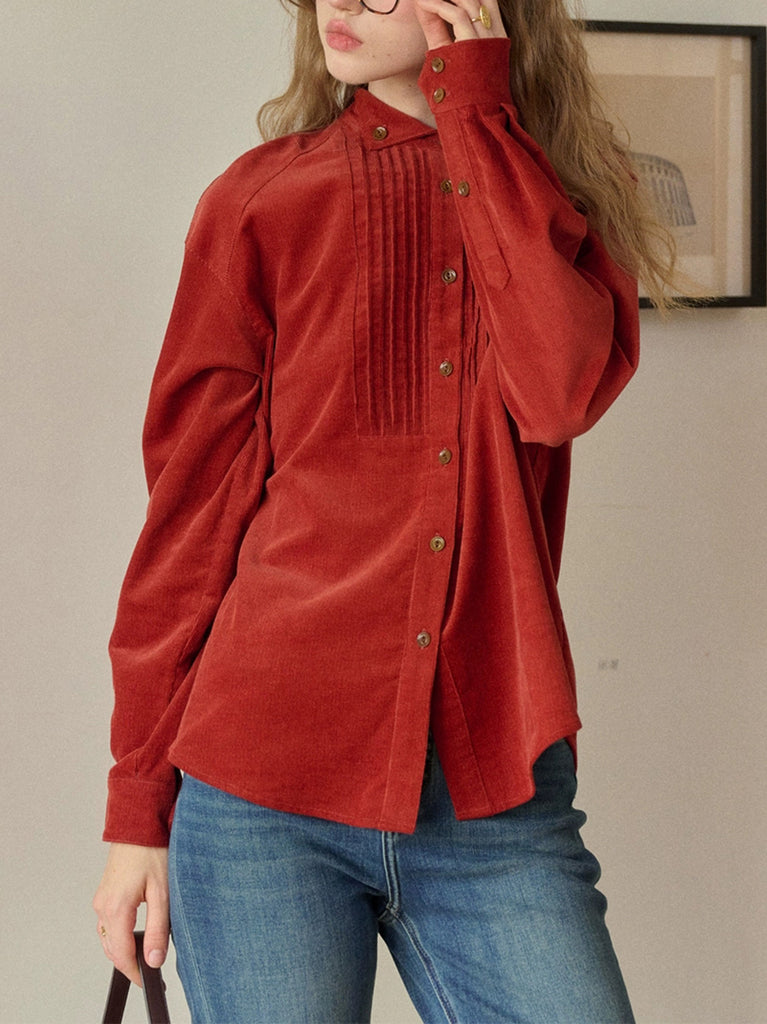 Camisa fruncida de algodón 100% de color liso para mujer, estilo artístico de invierno