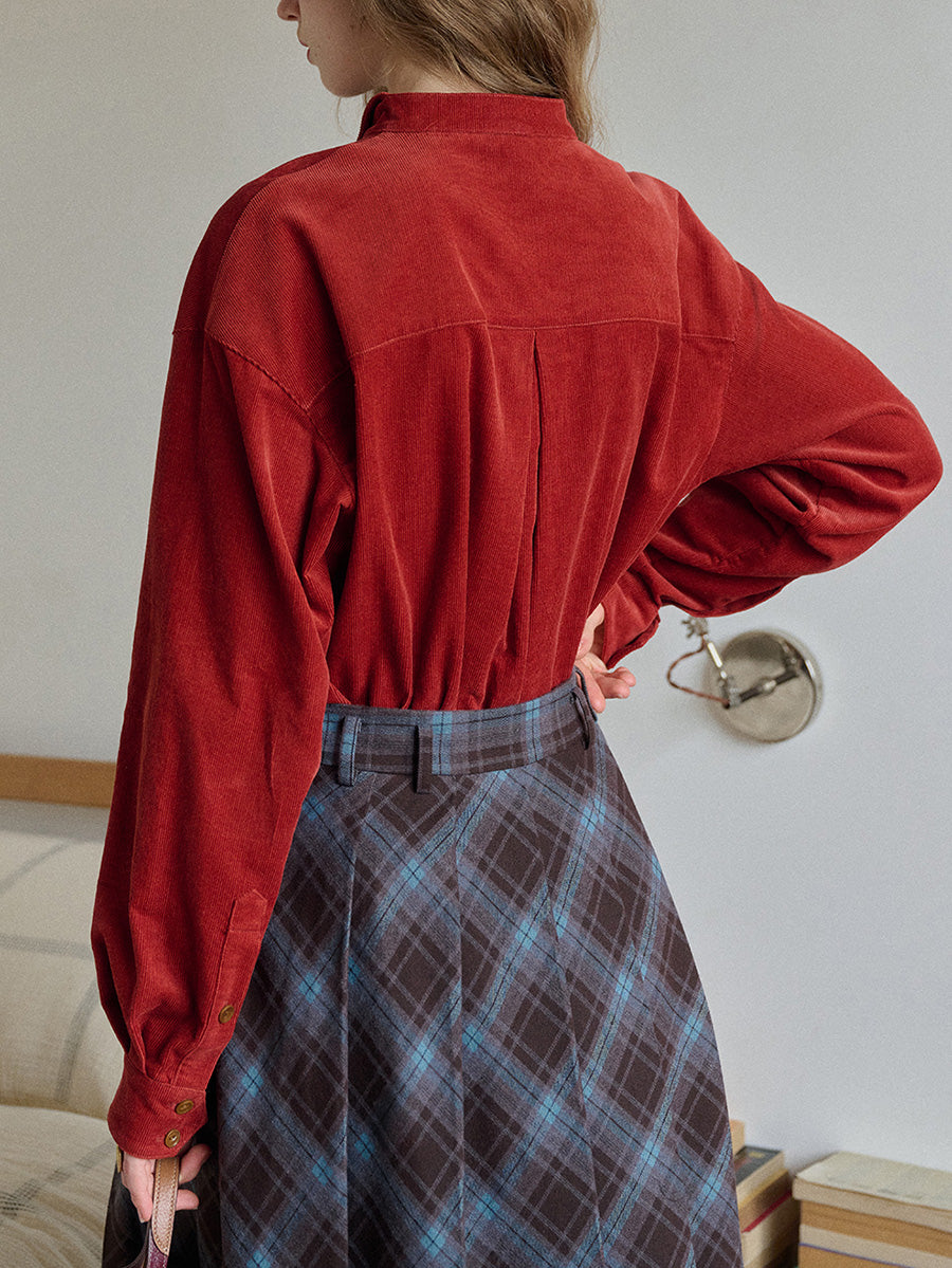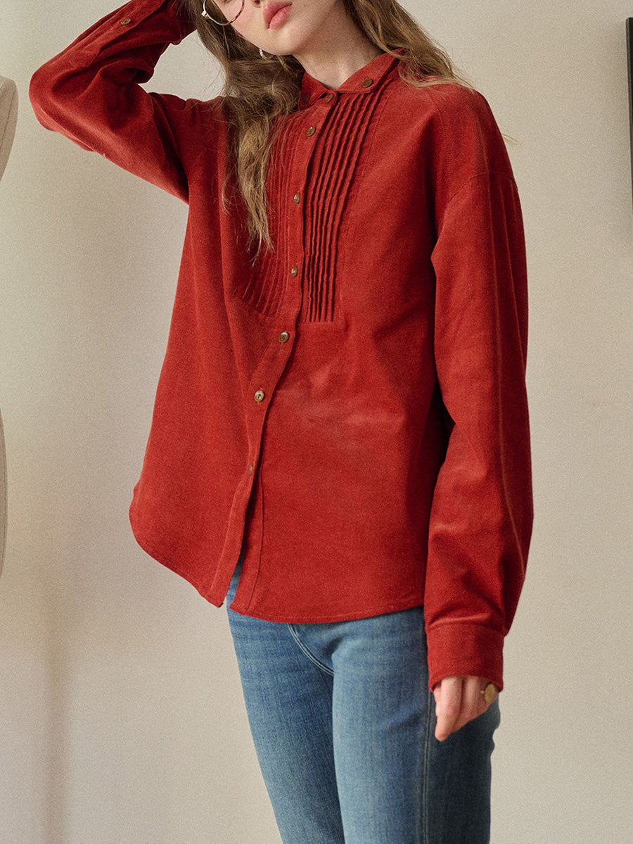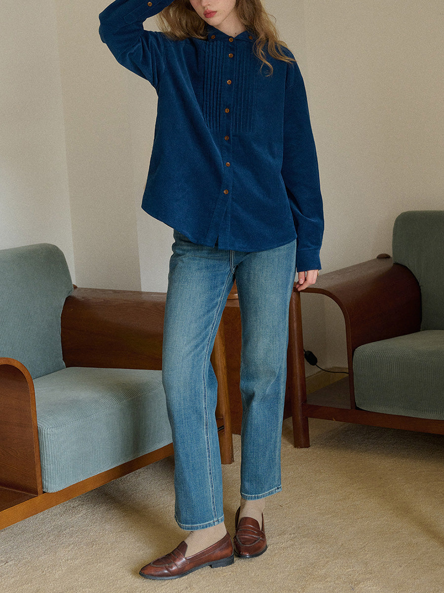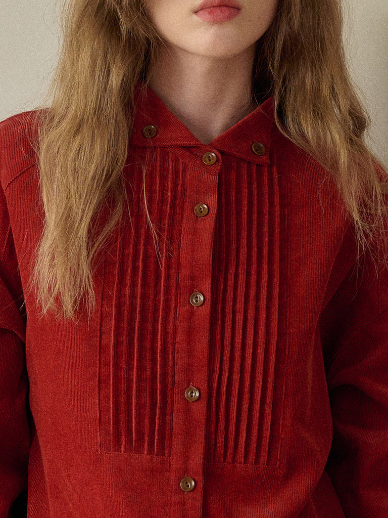 Camisa fruncida de algodón 100% de color liso para mujer, estilo artístico de invierno