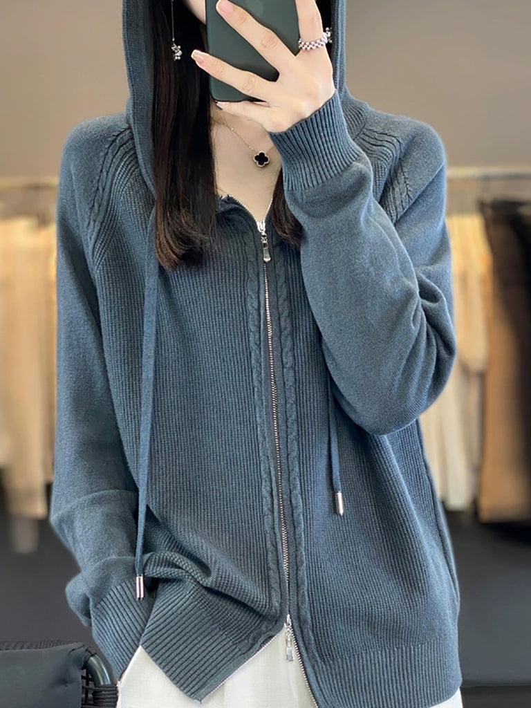 Suéter con capucha de color liso para mujer, estilo casual de otoño