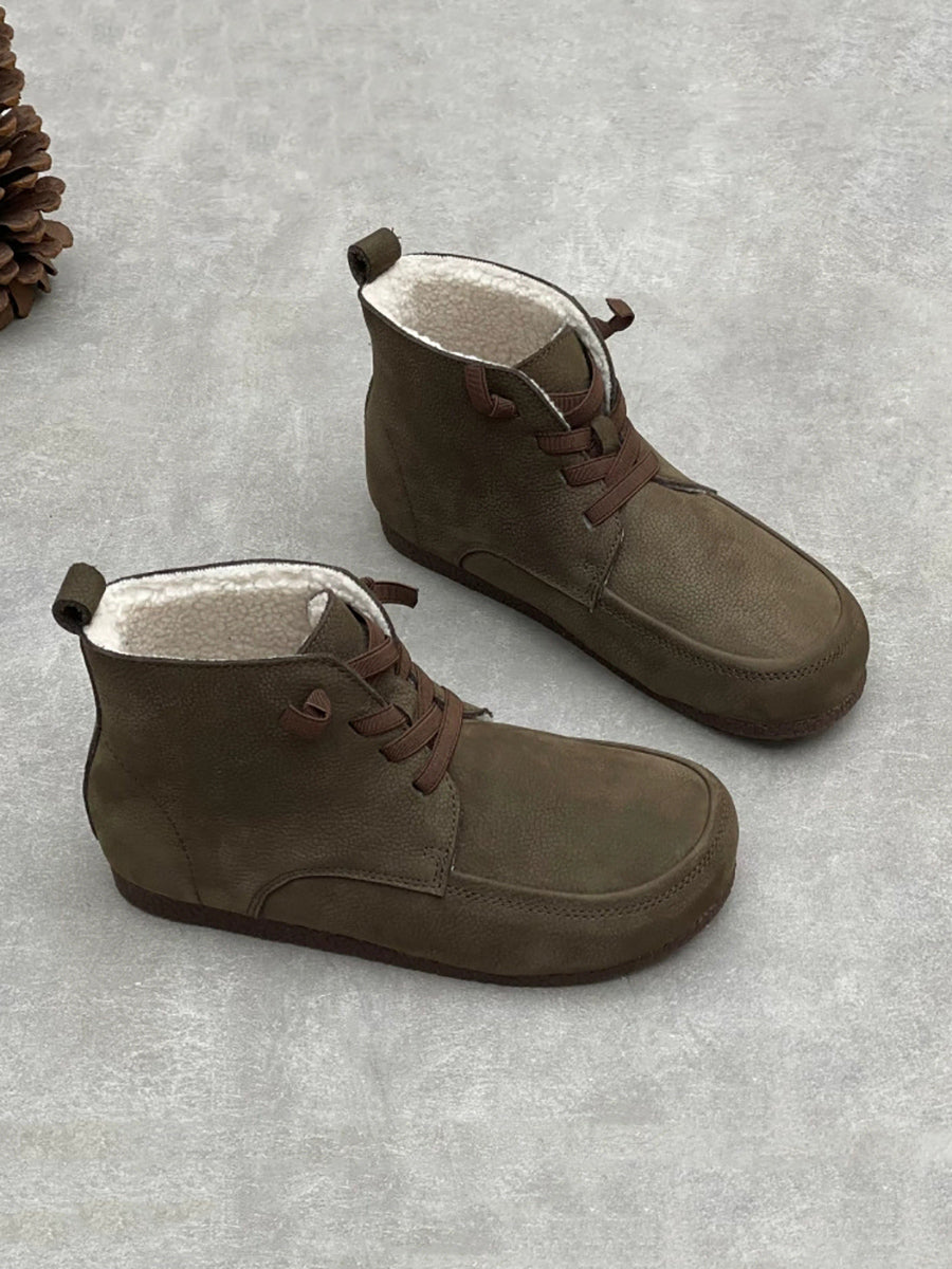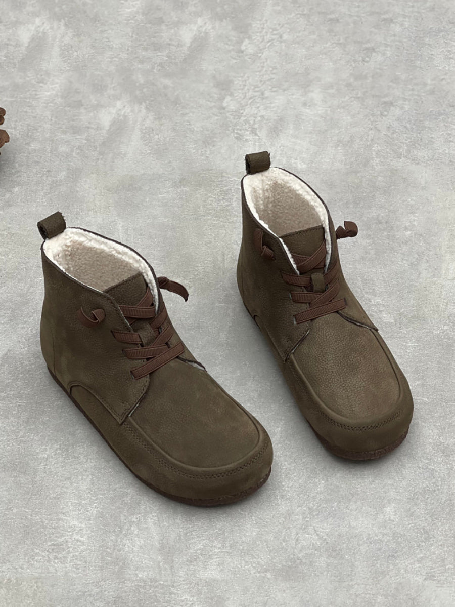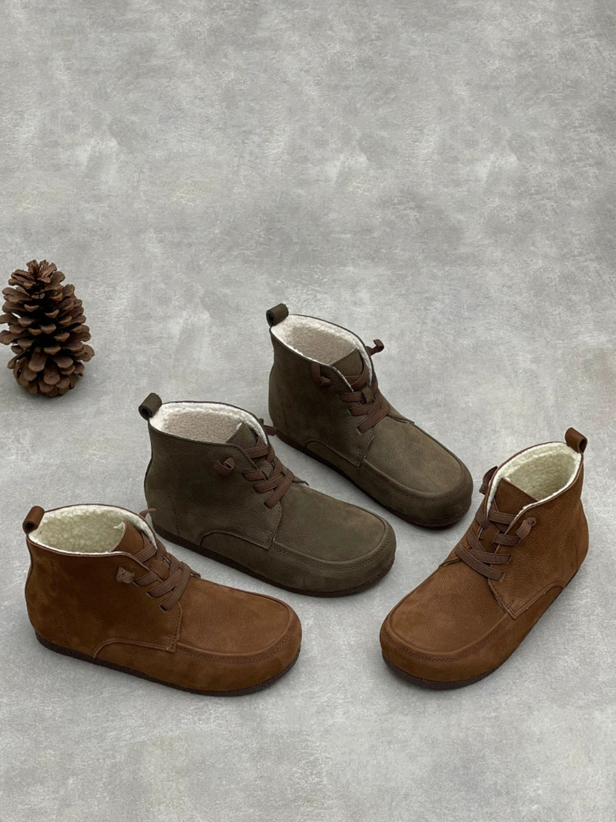 Botines de invierno de piel auténtica con forro polar para mujer