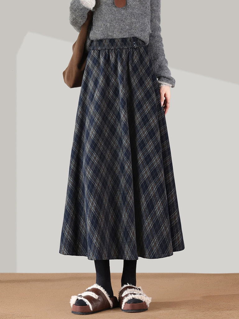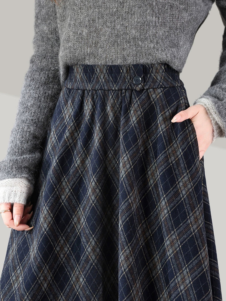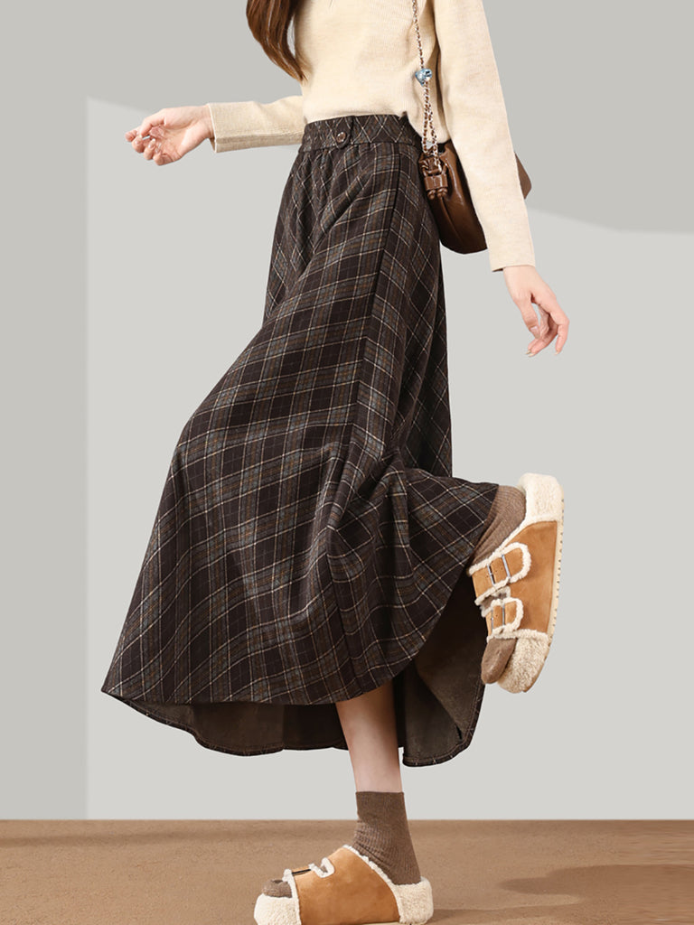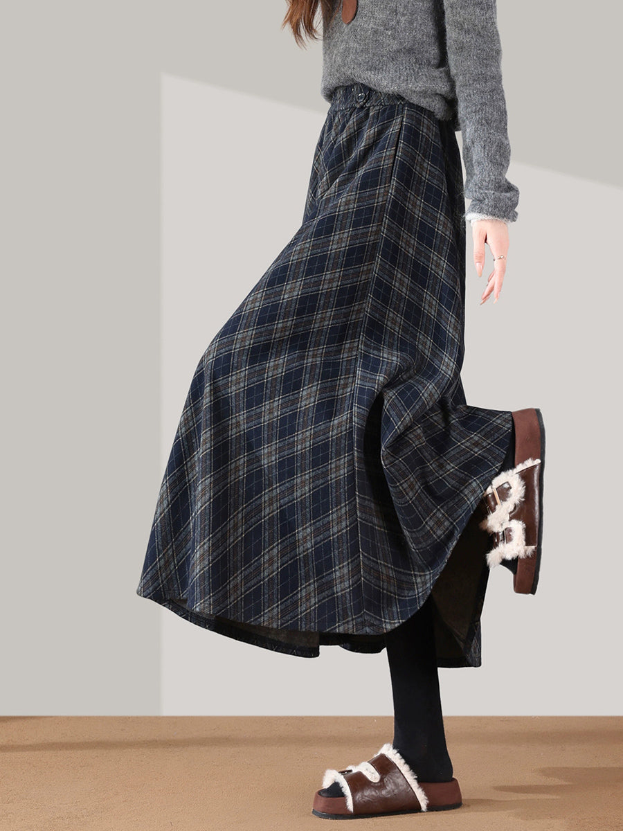 Falda gruesa a cuadros de invierno para mujer en forma de A
