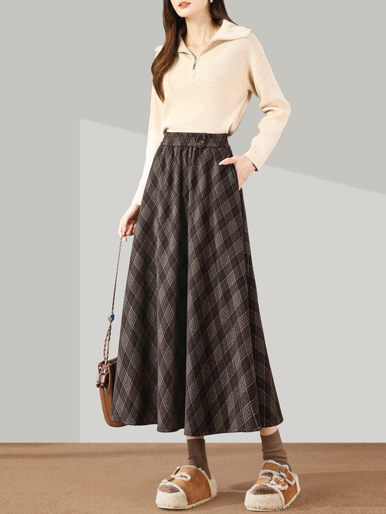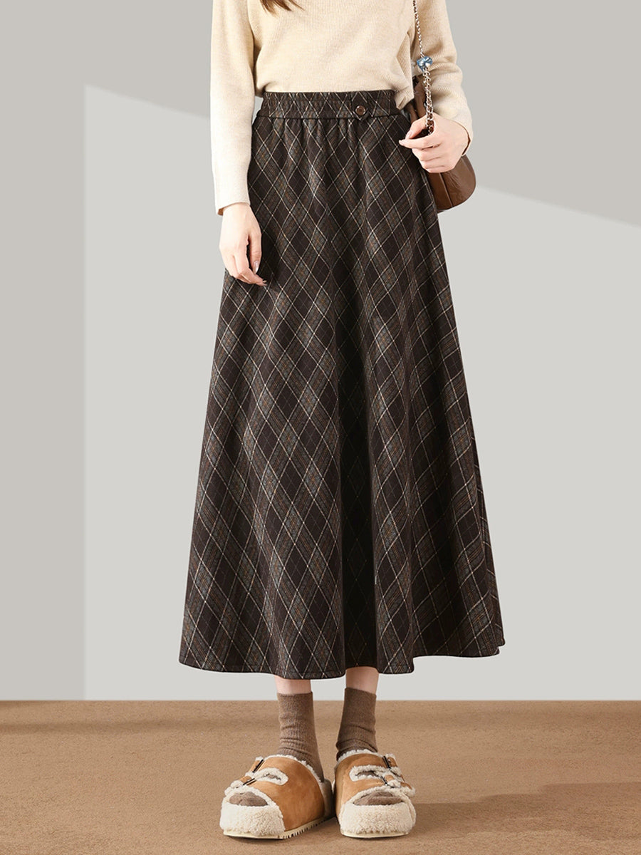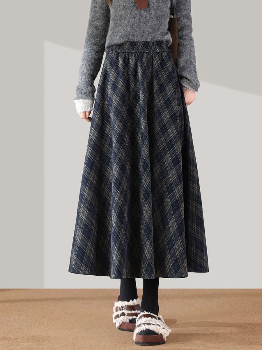 Falda gruesa a cuadros de invierno para mujer en forma de A